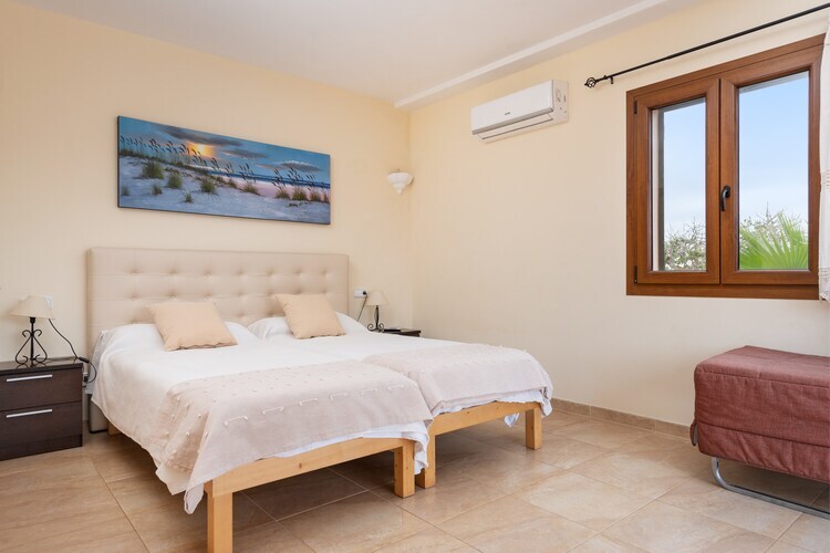 El interior de la casa de una única planta ofrece un estilo cómodo y actual. El salón comedor cocina está equipado con TV-sat y AC. La cocina ofrece vitrocerámica. En la lavanderÃa encontrarán la lavadora, plancha y tabla para planchar. En la casa hay 4 dormitorios, todos con AC. Tres de ellos presentan 2 camas individuales y uno tiene una cama doble. Hay también 3 baños, 2 en suite con ducha y uno con bañera para el resto de la casa. Finalmente, les podemos preparar una cuna y una trona si viajan con su bebé.