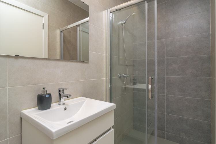 À l'intérieur, la maison est répartie sur deux étages. Le rez-de-chaussée, entièrement rénové, comprend un confortable salon climatisé avec télévision, une cuisine équipée de plaques vitrocéramiques et d'un lave-vaisselle, ainsi que deux chambres avec lits doubles et climatisation. L'une des chambres dispose d'une salle de bain attenante avec douche, tandis qu'une autre salle de bain avec baignoire est également disponible à ce niveau. Le rez-de-chaussée est un appartement indépendant et confortable, de style traditionnel, comprenant un espace salon-salle à manger-cuisine, une chambre climatisée et une salle de bain avec douche. Un lave-linge, un fer et une planche à repasser, ainsi qu'un lit bébé et une chaise haute sont également à disposition des familles.