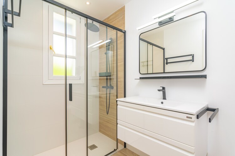 La casa de una sola planta ofrece un estilo acogedor con todas las comodidades para una estancia perfecta. Salón, comedor y cocina comparten un gran espacio equipado con AC, TV-satélite, chimenea y vitrocerámica. Hay también lavadora, plancha y tabla para planchar. A continuación tienen los 3 dormitorios. Uno de ellos tiene una cama doble y baño en suite con ducha. Los otros dos dormitorios tienen dos camas individuales cada uno. Todos tienen AC. Hay otro baño con ducha en la casa. Por último, podemos ofrecerles una cuna y una trona si viajan con su bebé.
