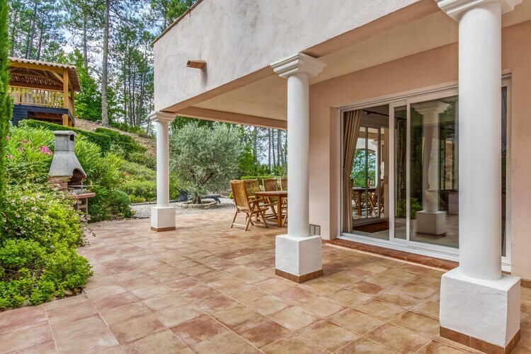 Cette villa d'architecte, est située sur un terrain clôturé sans vis-à-vis d'environ un hectare. A l'abri, au rythme de chant des cigales, vous profitez de la piscine, le terrain de pétanque ou d'un livre sur une des terrasses. Si vous arriver à lire ! Car il est difficile de ne pas se distraire en rêvant avec les belles vues lointaine de la nature environnante et le «Massif des Maures"!