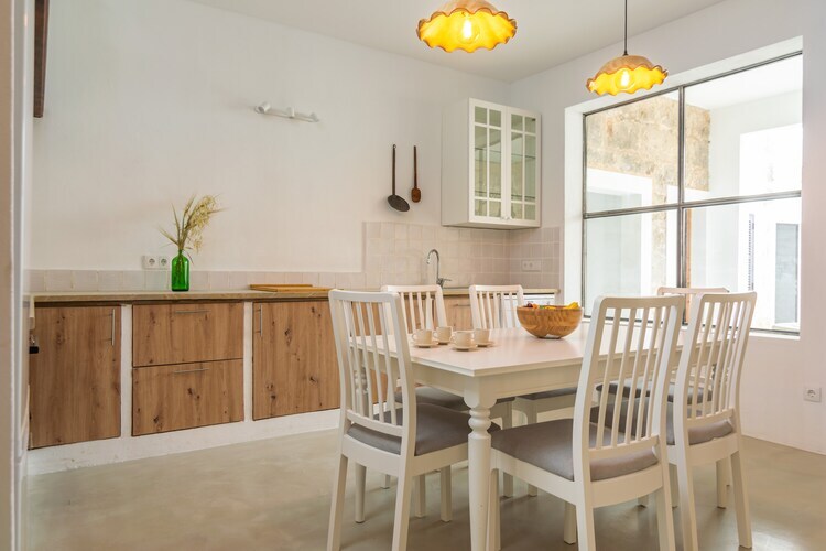 À l'intérieur, la maison s'étend sur deux étages. Le rez-de-chaussée comprend un chaleureux salon-salle à manger climatisé et équipé d'une Smart TV, une cuisine ouverte avec plaques à induction et une chambre double avec salle de bain attenante. À l'étage, un second salon invite au calme, tandis que quatre autres chambres – deux doubles et deux simples – partagent une salle de bain complète avec douche. Un lave-linge, un fer à repasser et du matériel pour bébé sont fournis pour un séjour confortable.