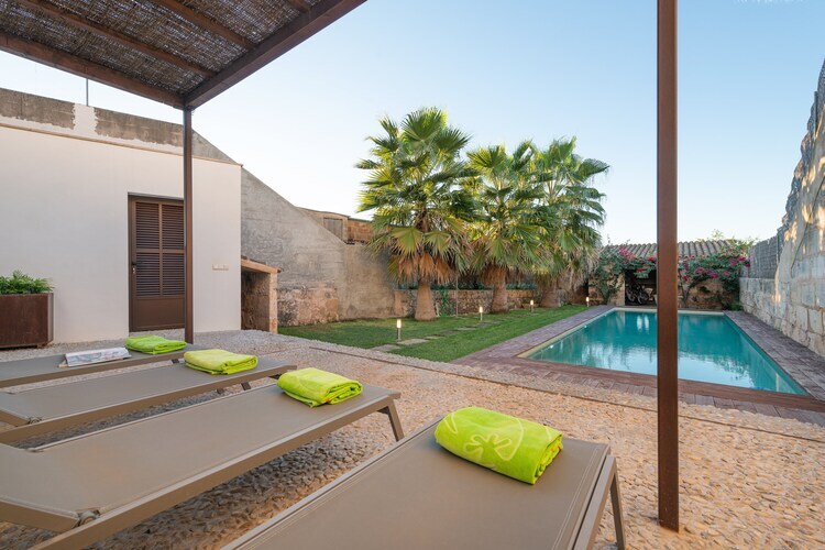 Cette charmante villa à Algaida est l'endroit idéal pour profiter de la tranquillité de l'arrière-pays majorquin tout en restant à proximité de la côte. À l'extérieur, la piscine privée au chlore (10 x 3 m, profondeur 1,60 m) offre un havre de paix, entourée de six chaises longues et d'une véranda paisible, idéale pour les barbecues ou la détente. Le jardin clôturé assure une intimité partielle, et des toilettes extérieures apportent un confort supplémentaire.