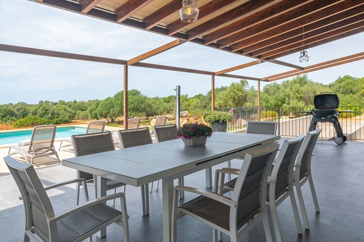 Cette superbe villa près de Santanyí est un havre de paix et de confort. Son vaste jardin dispose d'une piscine privée d'eau salée (11 x 5 m, profondeur 1,6 à 2,2 m), de chaises longues, d'un barbecue et d'une véranda meublée, idéale pour savourer des repas ou des boissons au bord de la brise méditerranéenne. La propriété clôturée garantit une intimité totale, sans aucun voisin à proximité.