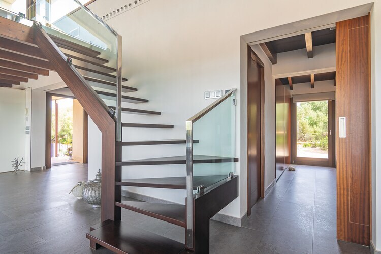 L'intérieur de cette maison de deux étages est lumineux et moderne. Le rez-de-chaussée comprend un spacieux salon-salle à manger avec cheminée, climatisation et Smart TV, ainsi qu'une cuisine à induction entièrement équipée. Trois chambres doubles avec climatisation, chauffage et accès au jardin se trouvent à cet étage, ainsi que deux salles de bains (dont une attenante). À l'étage, une quatrième chambre offre une terrasse privée et un espace de travail. Le sous-sol comprend une autre salle de bains avec douche. Lave-linge, sèche-linge, fer à repasser et articles de toilette pour bébé sont à votre disposition.