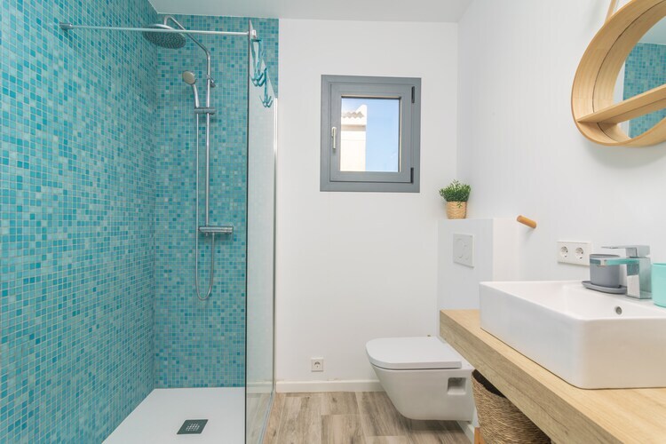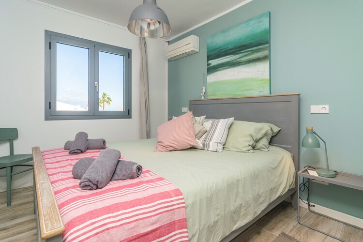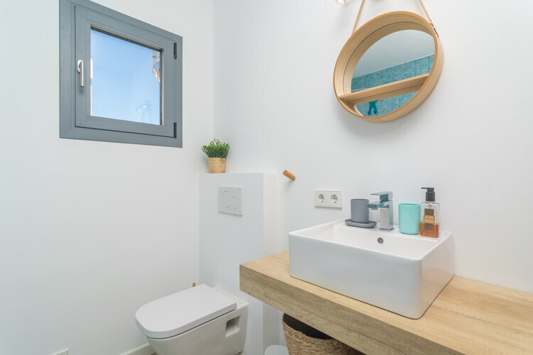 La moderna vivienda decorada con gran estilo y motivos marineros, distribuye sus estancias en dos plantas. En la planta baja tienen una amplia zona abierta que cuenta con un salón con dos sofás, Smart TV, AC y chimenea decorativa. La cocina americana está equipada con encimera de inducción y con todas las comodidades para cocinar comidas deliciosas. La zona de comedor ofrece inmejorables vistas a la piscina. Completando la planta baja encontrarán un aseo. Una vez arriba, ya en la primera planta encontrarán sus 5 habitaciones, la primera de ellas con una cama doble, TV, AC, salida al balcón, armario y baño en suite, el cual cuenta con ducha. La segunda habitación con cama de matrimonio, incluye entre sus comodidades AC, armario, escritorio y también cuenta con salida al balcón. La tercera habitación consta de una cama doble con litera. La cuarta habitación dispone de una cama doble, AC, armario y baño en suite con ducha. La última habitación también cuenta con cama doble y armario. Por último, en esta planta cuentan además de otro baño con ducha. Cabe destacar que la vivienda dispone de lavadora, secadora, plancha y tabla para planchar. Y si viajan con niños, también podemos proporcionarles una cuna y una trona.