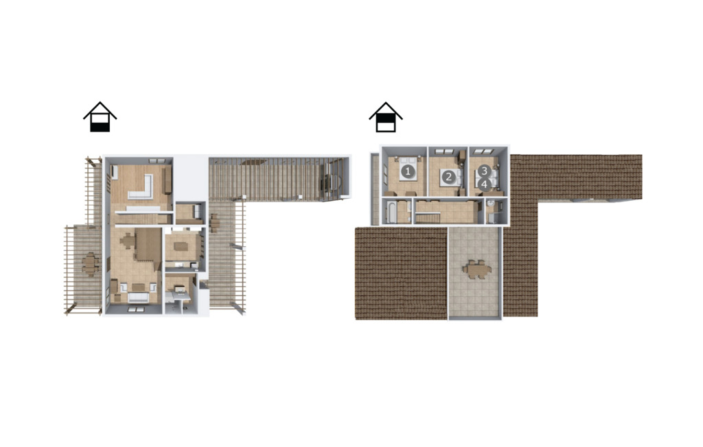 Noorea propose principalement des propriétés indépendantes : maisons, villas et chalets.