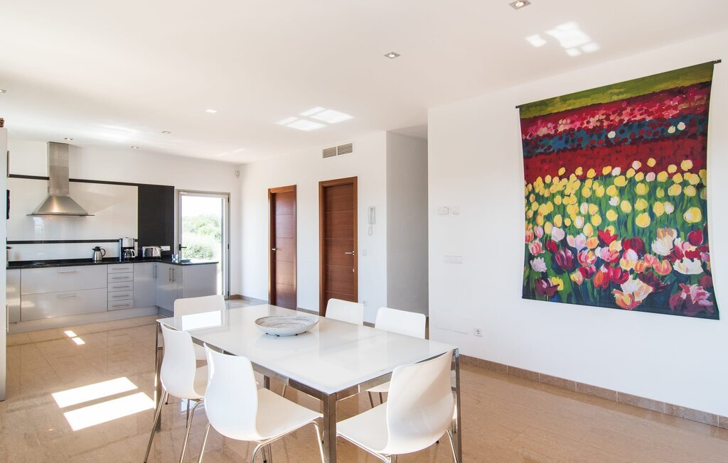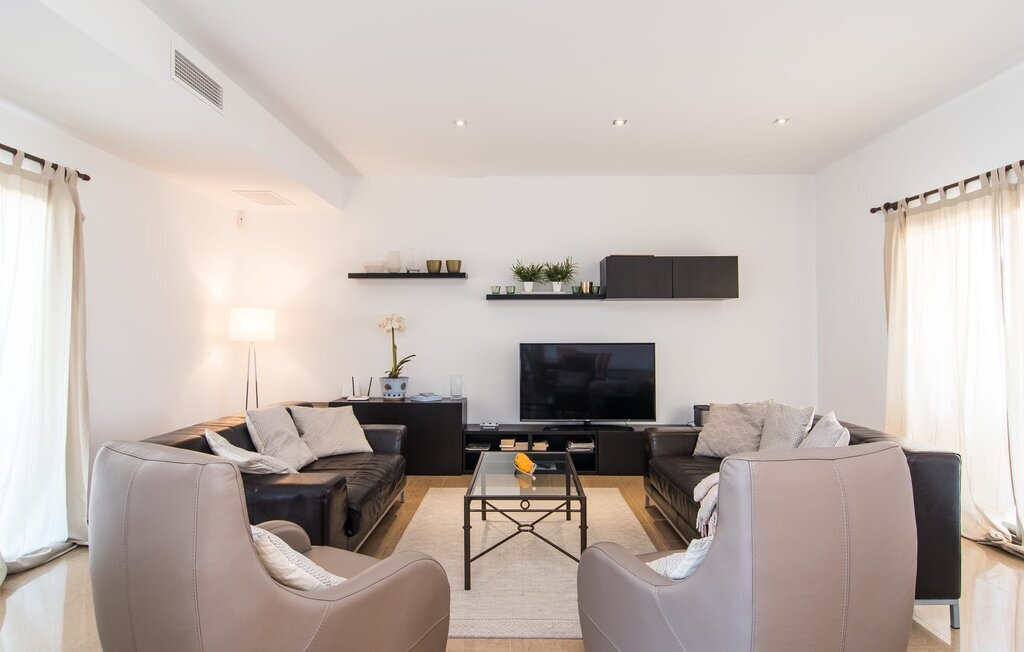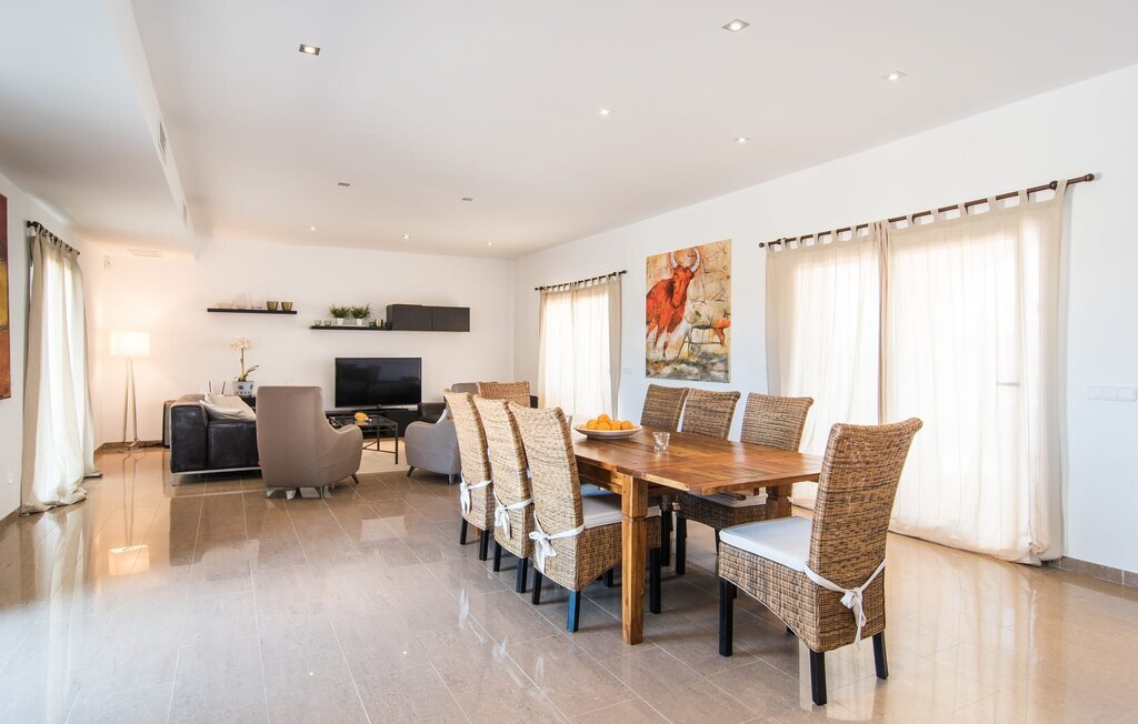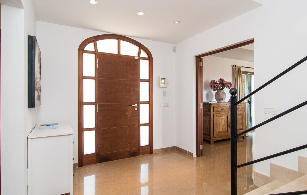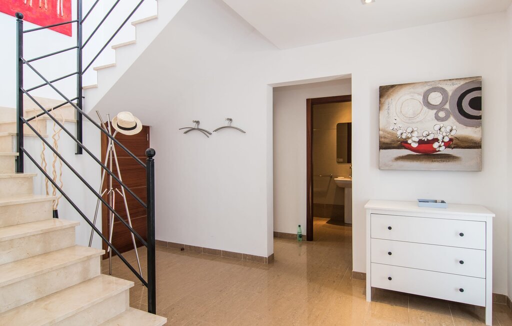 Les nouveaux propriétaires ont repeint l'intérieur de la villa et l'ont aménagée avec un goût et un confort exceptionnels : Le style est clair et minimaliste, mais présente des accents de couleurs claires sur les murs, les meubles sont élégants et confortables, la grande télévision à écran plat attire tous les regards, la cuisine est un royaume brillant pour les cuisiniers avec un réfrigérateur side-by-side et des appareils électroménagers de qualité. Des plafonniers veillent à ce que les beaux espaces soient partout discrètement mis en lumière. L'étage supérieur est exclusivement réservé aux rêves de vacances, et ceux-ci ne peuvent être que roses : Les quatre chambres doubles (avec des lits de 1,80 ou 1,60 x 2 m) disposent toutes d'une salle de bain privée avec douche de plain-pied et accès direct au balcon ensoleillé. Le chauffage au sol et l'air conditionné amènent la pièce à votre température personnelle de bien-être, de sorte que la villa est idéale pour une pause en été comme en hiver.