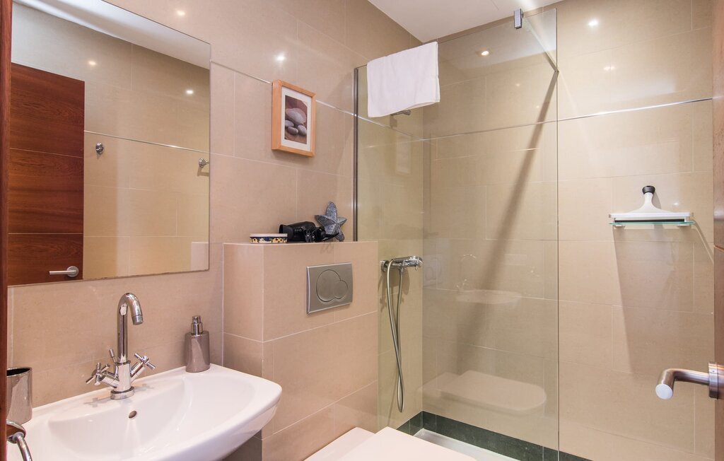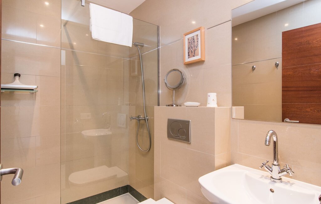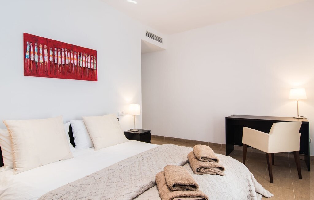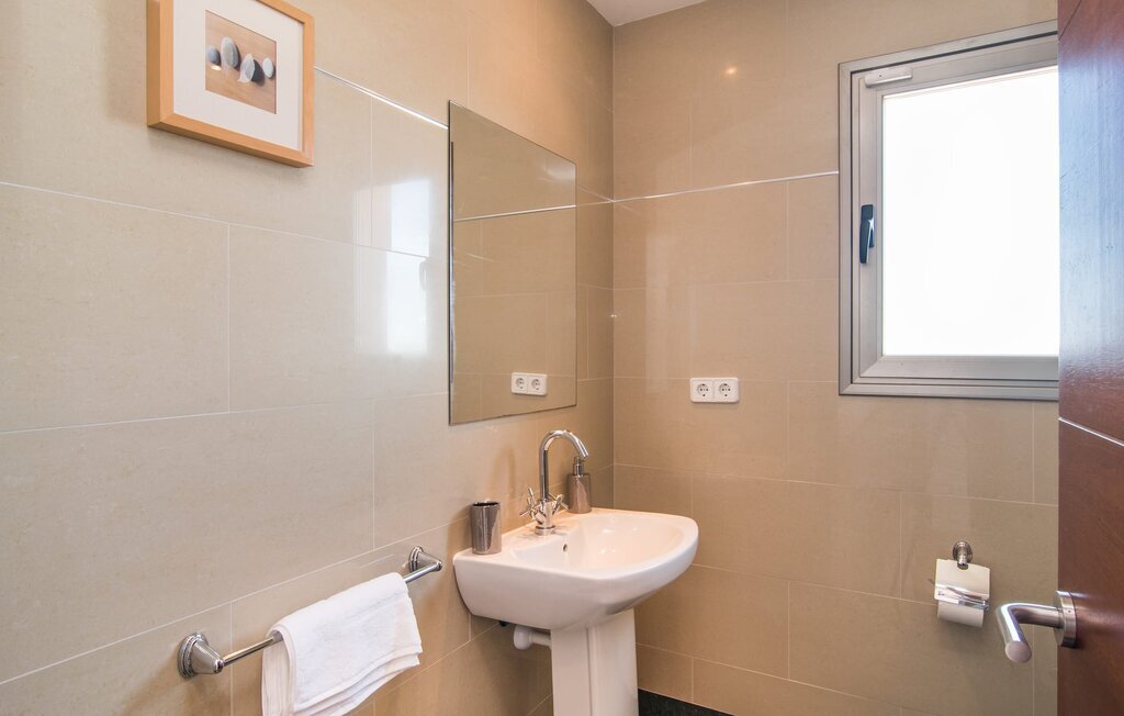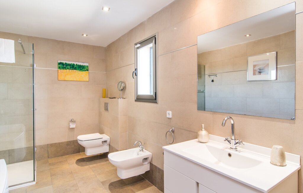 Les nouveaux propriétaires ont repeint l'intérieur de la villa et l'ont aménagée avec un goût et un confort exceptionnels : Le style est clair et minimaliste, mais présente des accents de couleurs claires sur les murs, les meubles sont élégants et confortables, la grande télévision à écran plat attire tous les regards, la cuisine est un royaume brillant pour les cuisiniers avec un réfrigérateur side-by-side et des appareils électroménagers de qualité. Des plafonniers veillent à ce que les beaux espaces soient partout discrètement mis en lumière. L'étage supérieur est exclusivement réservé aux rêves de vacances, et ceux-ci ne peuvent être que roses : Les quatre chambres doubles (avec des lits de 1,80 ou 1,60 x 2 m) disposent toutes d'une salle de bain privée avec douche de plain-pied et accès direct au balcon ensoleillé. Le chauffage au sol et l'air conditionné amènent la pièce à votre température personnelle de bien-être, de sorte que la villa est idéale pour une pause en été comme en hiver.