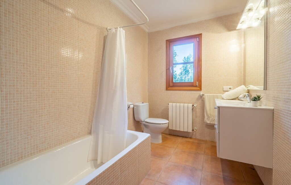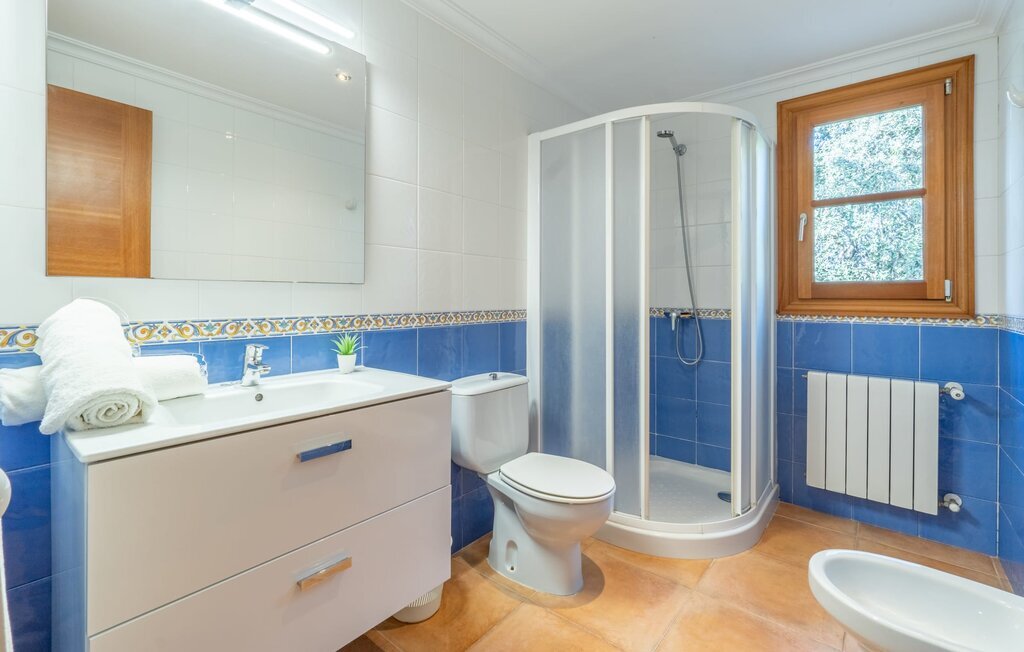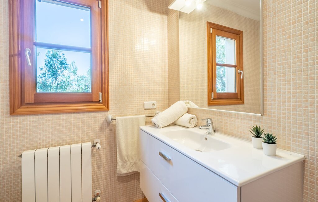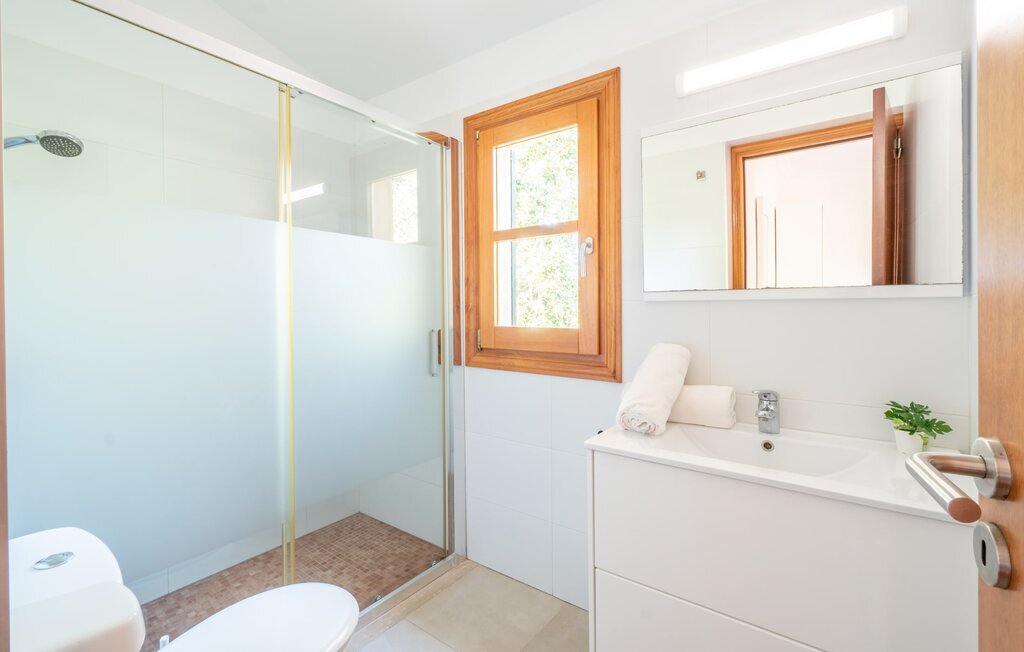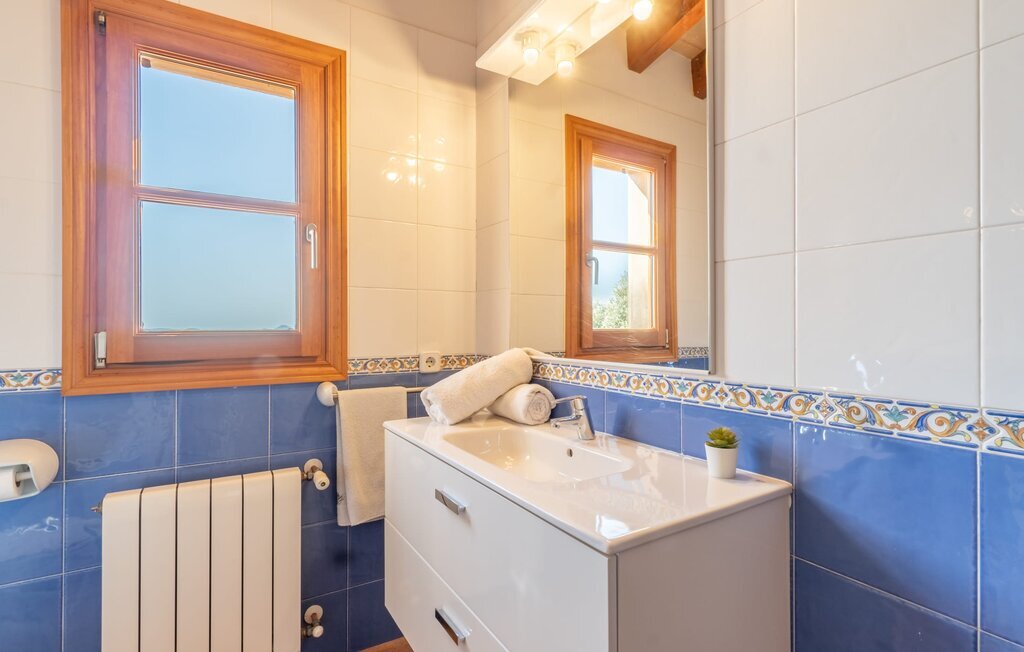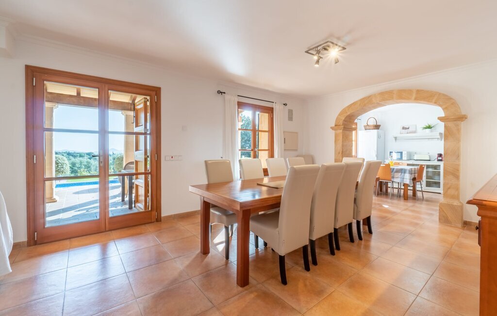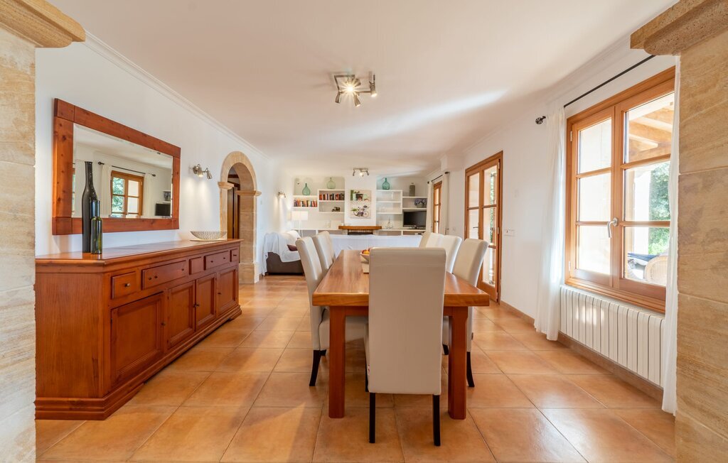 L'intérieur dispose de meubles de qualité et de beaucoup d'espace pour se détendre. Le grand salon avec cheminée offre un coin canapé confortable pour lire ou regarder des films. La salle à manger adjacente peut accueillir jusqu'à 12 invités et la cuisine bien équipée permet de cuisiner soi-même de manière agréable. En plus des six chambres doubles (quatre au rez-de-chaussée, deux au premier étage) et des six salles de bains modernes, cette finca dispose également du chauffage central pour une atmosphère agréable pendant les mois les plus frais.