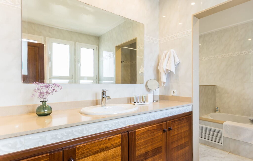 L'intérieur est une brillante combinaison d'architecture ultramoderne et de meubles en bois authentiques. Les murs clairs s'harmonisent parfaitement avec les accents de couleur éclairés et confèrent aux pièces une atmosphère élégante. L'espace salon-salle à manger ouvert vous accueille avec plusieurs canapés confortables et un salon lounge accueillant. L'éclairage élégant du toit complète l'atmosphère exclusive et les majestueuses baies vitrées vous offrent une vue spectaculaire sur l'espace extérieur décoré de plantes tropicales. Dans la grande cuisine entièrement équipée, il y a beaucoup de place pour préparer de délicieux repas et snacks. Un escalier en marbre mène à l'étage suivant avec ses quatre chambres doubles spacieuses. Dans ces chambres aménagées avec beaucoup de goût, vous pouvez vous attendre à un confort maximal. Les armoires modernes offrent beaucoup de place pour votre garde-robe de vacances ou les souvenirs que vous avez achetés. De grandes portes vitrées donnent directement sur le balcon, où vous pourrez profiter d'un panorama à couper le souffle sur la ville tout en dégustant votre tasse de café chaud le matin. L'immense cinquième chambre s'étend comme une chambre de tour sur le deuxième étage. Si l'ouverture de la chambre ne vous dérange pas, vous dormirez vraiment comme un roi ici en haut. Les cinq salles de bains élégantes et lumineuses sont équipées de manière haut de gamme et offrent tout ce dont vous pouvez rêver en vacances. La baignoire ultramoderne avec jacuzzi est un véritable point fort et promet une détente totale.