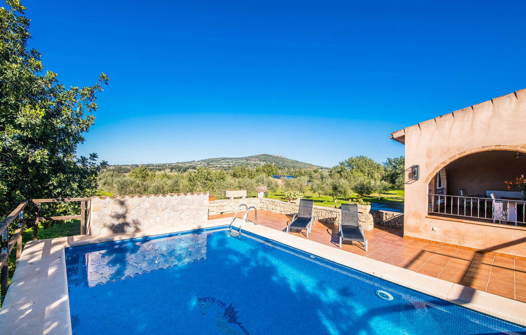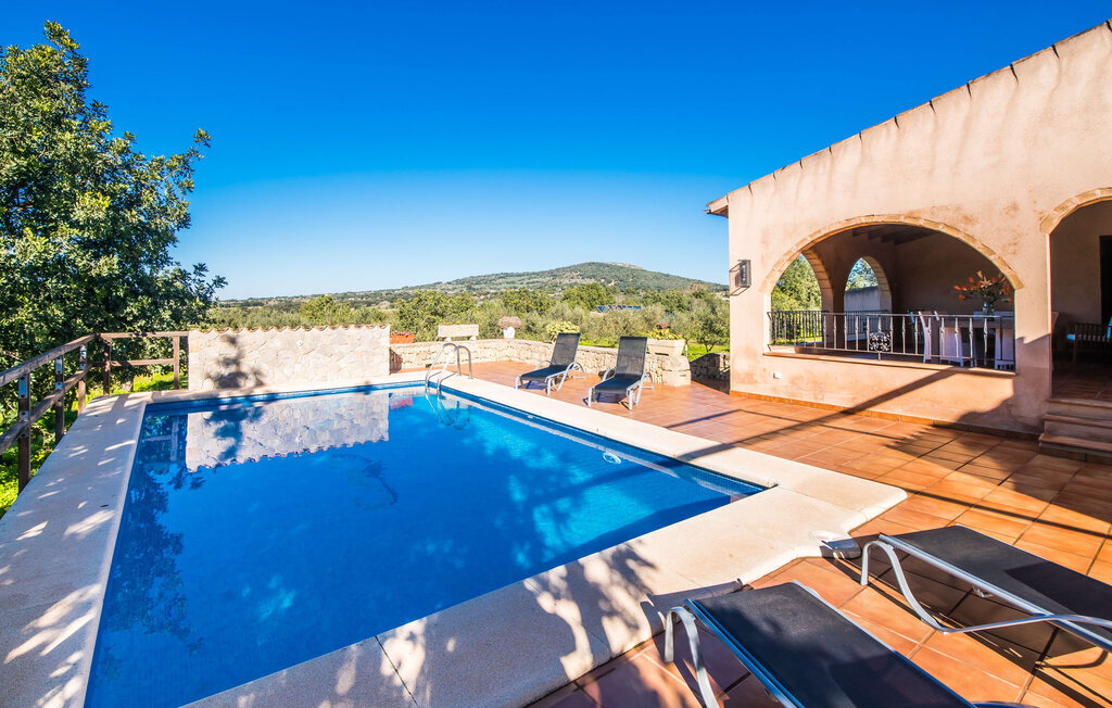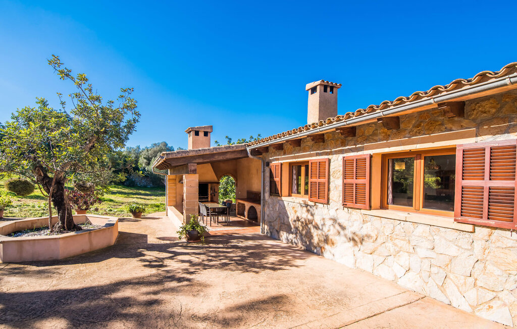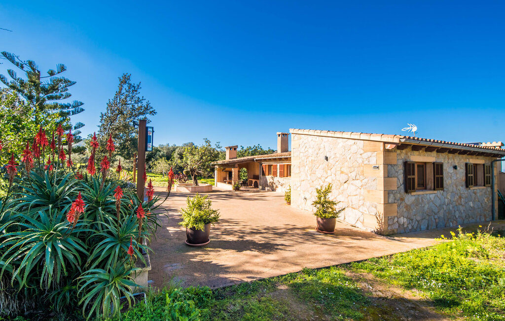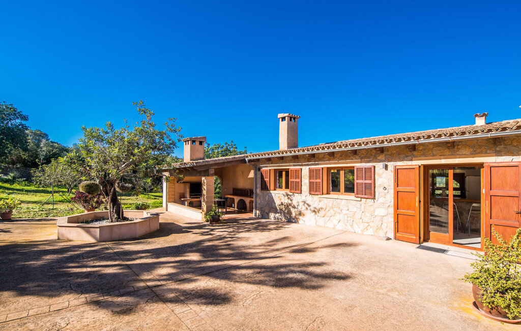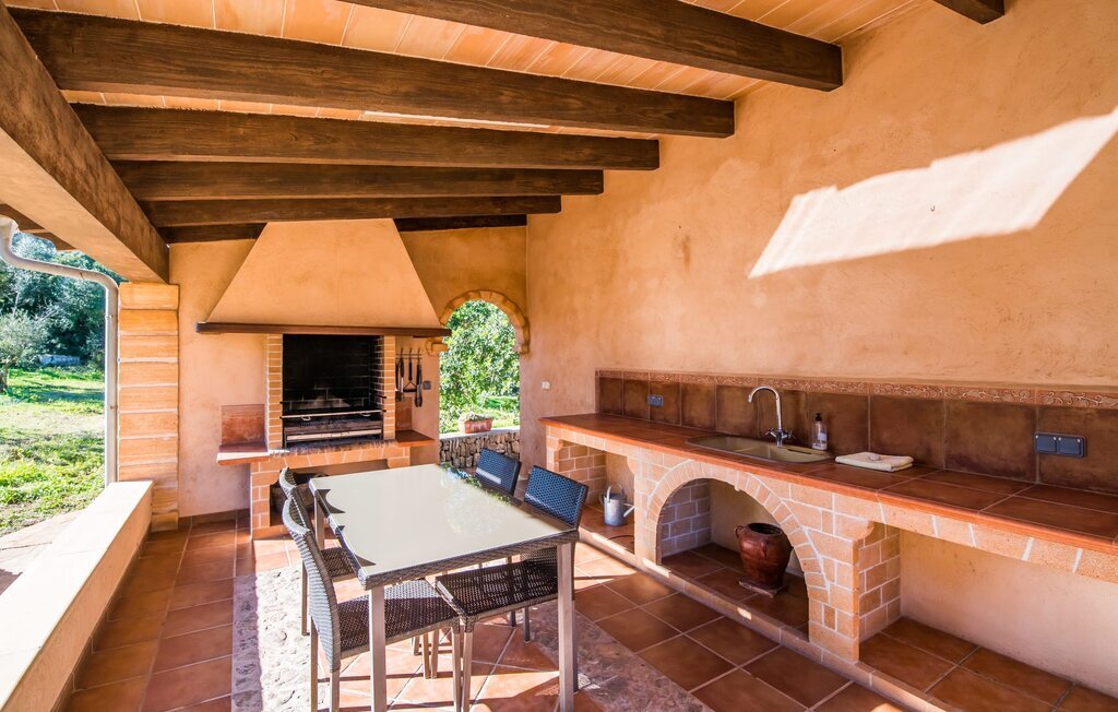 La villa Cavall de Mar jouit d'une situation magnifique et calme au pied de la Muntanya de Calicant, une partie de la réserve naturelle de la Serra de Llevant. Des amandiers, des caroubiers et des figuiers poussent dans le paysage. Les troupeaux de moutons font également partie du paysage et parfois, on entend au loin les petites cloches. Ici, il n'y a pas de voisins directs. La villa est située le long d'une route à une voie à peine fréquentée. L'avant est entouré d'une clôture, tandis que l'arrière offre un paysage ouvert, de sorte que l'on peut immédiatement profiter du panorama. Le nom de la villa vient de l'hippocampe (Cavall de Mar) qui est représenté en mosaïque sur le fond de la piscine. Sur le côté sud de la villa se trouve une cour intérieure spacieuse, idéale pour jouer. Une échelle permet d'accéder à la belle piscine. Le système de nettoyage moderne évite l'utilisation de chlore dans l'eau de la piscine, ce qui la rend naturellement plus hygiénique et plus sûre. Une douche extérieure est disponible sur le mur de la maison. Vous pouvez aussi la rincer rapidement une fois que vous sentez la chaleur. Des chaises longues confortables vous invitent à vous détendre longuement et à prendre des bains de soleil. Des chaises confortables et une table à manger vous invitent sur une magnifique et vaste terrasse où vous pourrez vous détendre et profiter de la vue imprenable sur le paysage. C'est dans ce lieu que vous pourrez accueillir la journée dans une atmosphère feutrée et terminer la soirée en dégustant des boissons courantes avec une touche de poésie. Dans ce lieu, les barbecues conviviaux avec de délicieuses spécialités régionales sont incontournables. Au gré de vos envies, vous y trouverez également une cuisine extérieure originale, puisqu'un fantastique barbecue au charbon de bois y est installé.