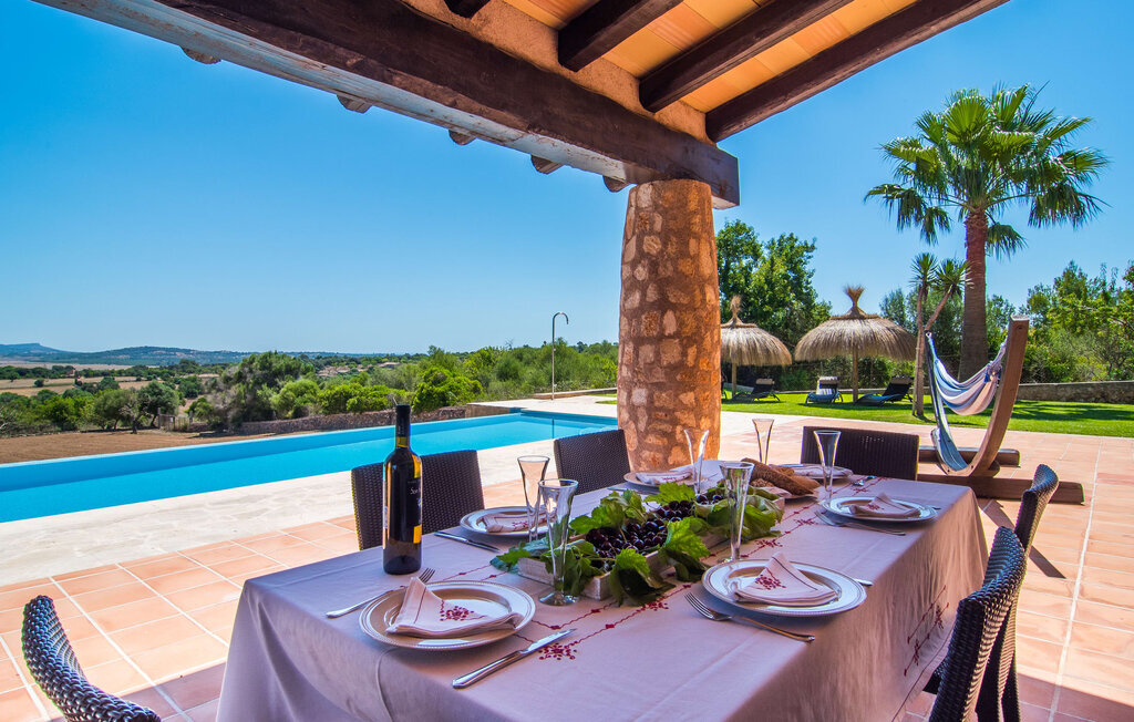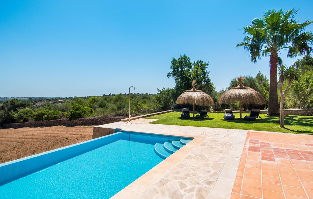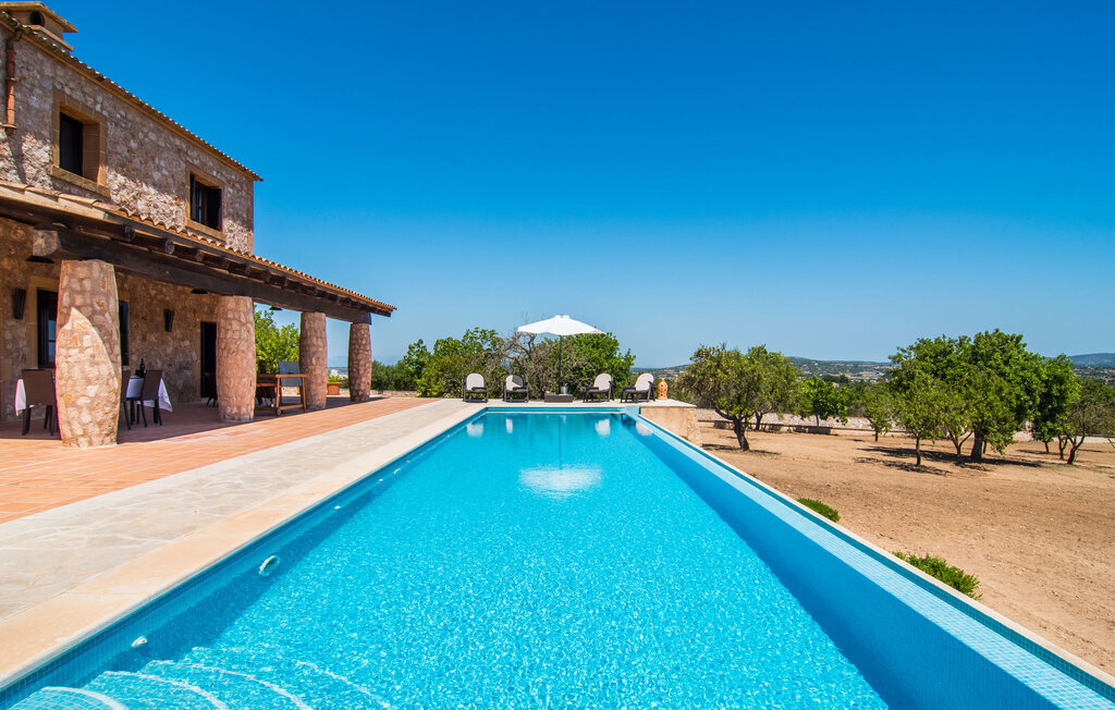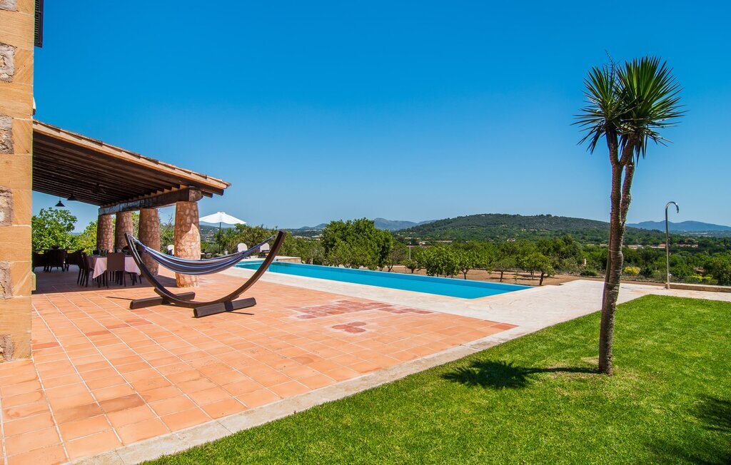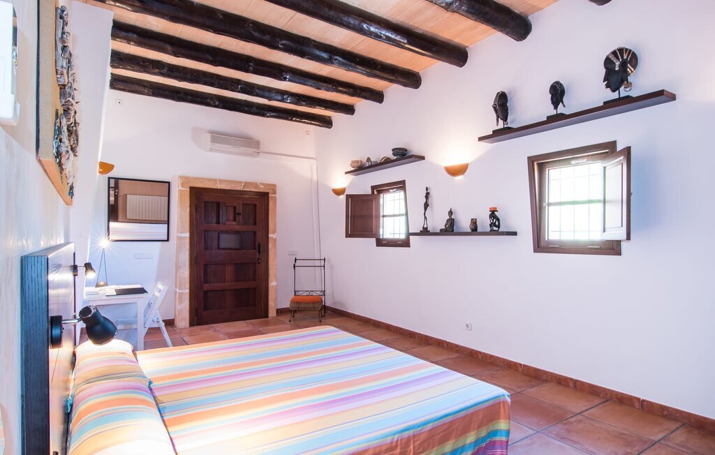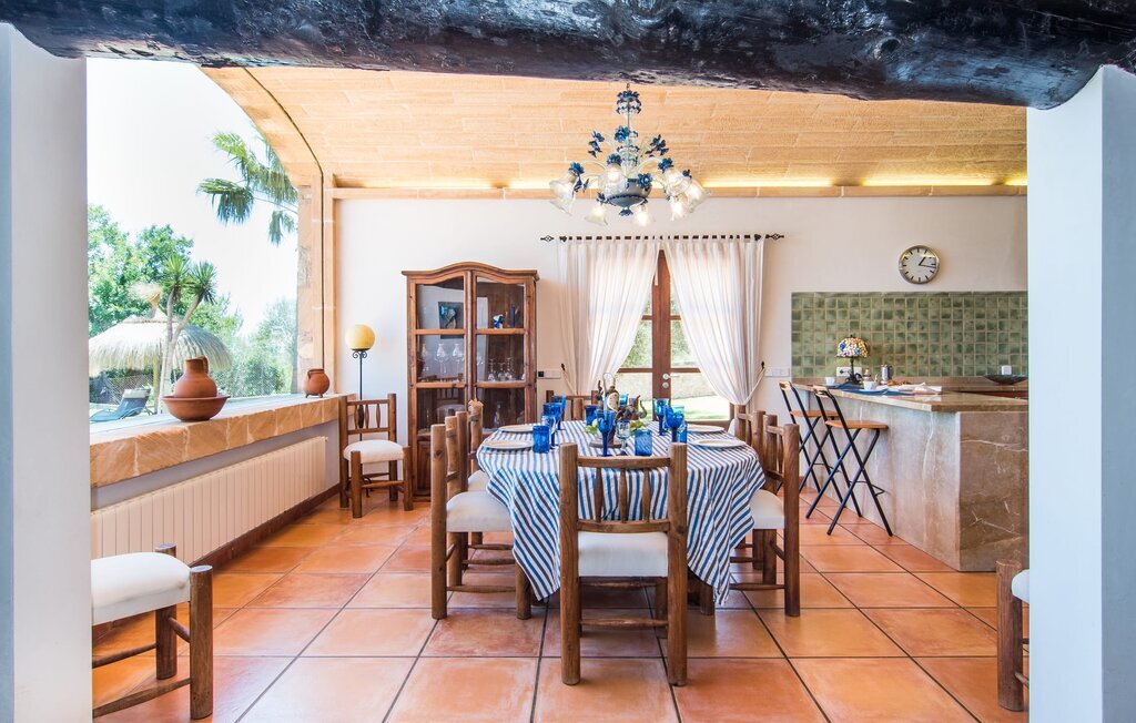 La magnifique finca Turonet, située sur le côté est de l'île, vous offre la maison parfaite pour des vacances entre amis ou en famille. Elle est située sur un terrain de 16.000 m² avec un beau jardin à côté de la maison. Avec près de 400 m², cette imposante maison peut accueillir jusqu'à 10 personnes. Tant l'accès facile que la situation calme font de cette propriété le point de départ parfait pour des vacances reposantes et, si on le souhaite, variées. Devant la maison s'étend une grande terrasse partiellement couverte, qui offre en été l'ombre dont on a tant besoin. Devant elle se trouve un incroyable bassin de 15 mètres qui invite à y faire de nombreuses longueurs. Il dispose d'un accès confortable par paliers. Il est sensationnel d'observer l'effet d'infini qui se déploie en toile de fond jusqu'au paysage qui s'étend à vos pieds. Comme aucune clôture, mur ou autre objet n'entrave la vue depuis cet endroit, le sentiment de liberté est vraiment très impressionnant. Sur la terrasse de la piscine, de confortables chaises longues vous attendent pour vous détendre sous le soleil radieux de la Méditerranée. Les enfants s'amuseront certainement beaucoup à jouer et à gambader sur les belles pelouses situées sur le côté de la maison. Ici, les palmiers projettent une ombre naturelle à toute heure de la journée. Les hôtes apprécient les niches partielles et les terrasses joliment plantées autour de la maison. Si quelqu'un ressent le besoin de s'isoler, il n'aura aucun mal à trouver un petit coin confortable.