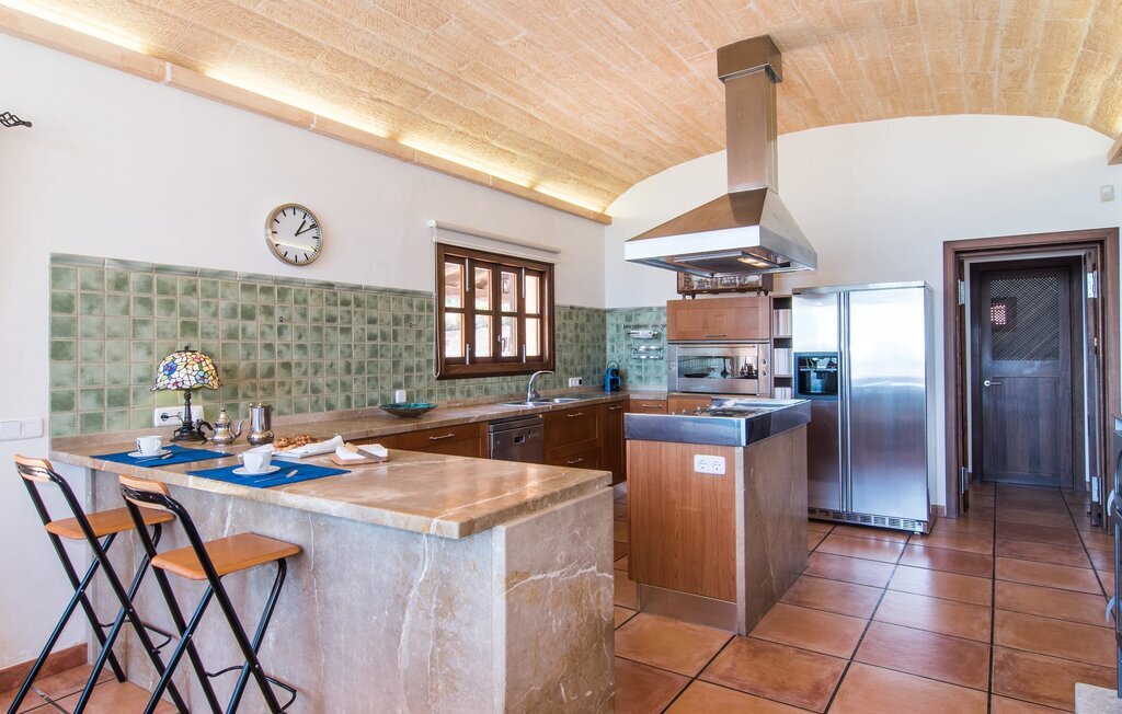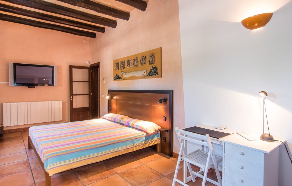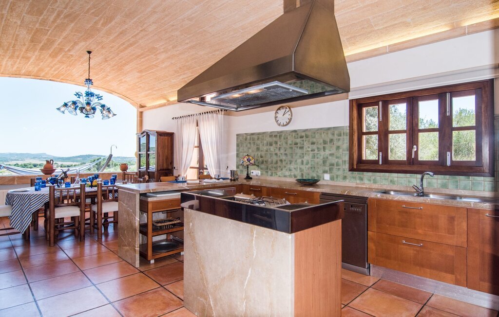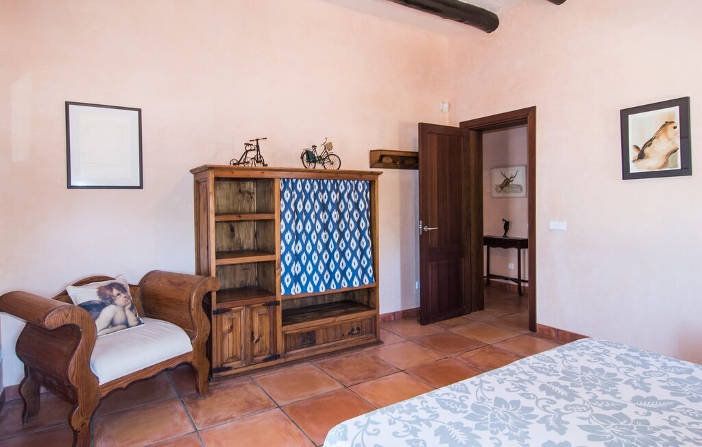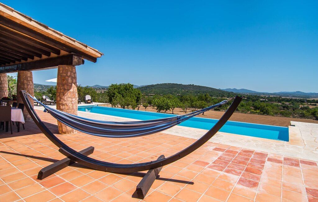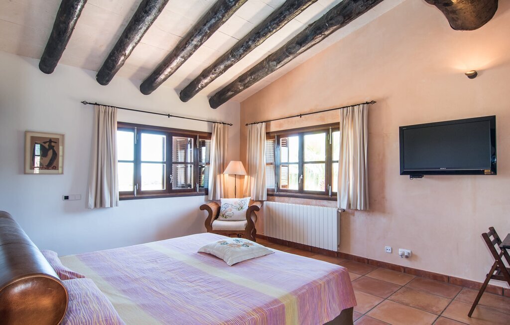 La magnifique finca Turonet, située sur le côté est de l'île, vous offre la maison parfaite pour des vacances entre amis ou en famille. Elle est située sur un terrain de 16.000 m² avec un beau jardin à côté de la maison. Avec près de 400 m², cette imposante maison peut accueillir jusqu'à 10 personnes. Tant l'accès facile que la situation calme font de cette propriété le point de départ parfait pour des vacances reposantes et, si on le souhaite, variées. Devant la maison s'étend une grande terrasse partiellement couverte, qui offre en été l'ombre dont on a tant besoin. Devant elle se trouve un incroyable bassin de 15 mètres qui invite à y faire de nombreuses longueurs. Il dispose d'un accès confortable par paliers. Il est sensationnel d'observer l'effet d'infini qui se déploie en toile de fond jusqu'au paysage qui s'étend à vos pieds. Comme aucune clôture, mur ou autre objet n'entrave la vue depuis cet endroit, le sentiment de liberté est vraiment très impressionnant. Sur la terrasse de la piscine, de confortables chaises longues vous attendent pour vous détendre sous le soleil radieux de la Méditerranée. Les enfants s'amuseront certainement beaucoup à jouer et à gambader sur les belles pelouses situées sur le côté de la maison. Ici, les palmiers projettent une ombre naturelle à toute heure de la journée. Les hôtes apprécient les niches partielles et les terrasses joliment plantées autour de la maison. Si quelqu'un ressent le besoin de s'isoler, il n'aura aucun mal à trouver un petit coin confortable.