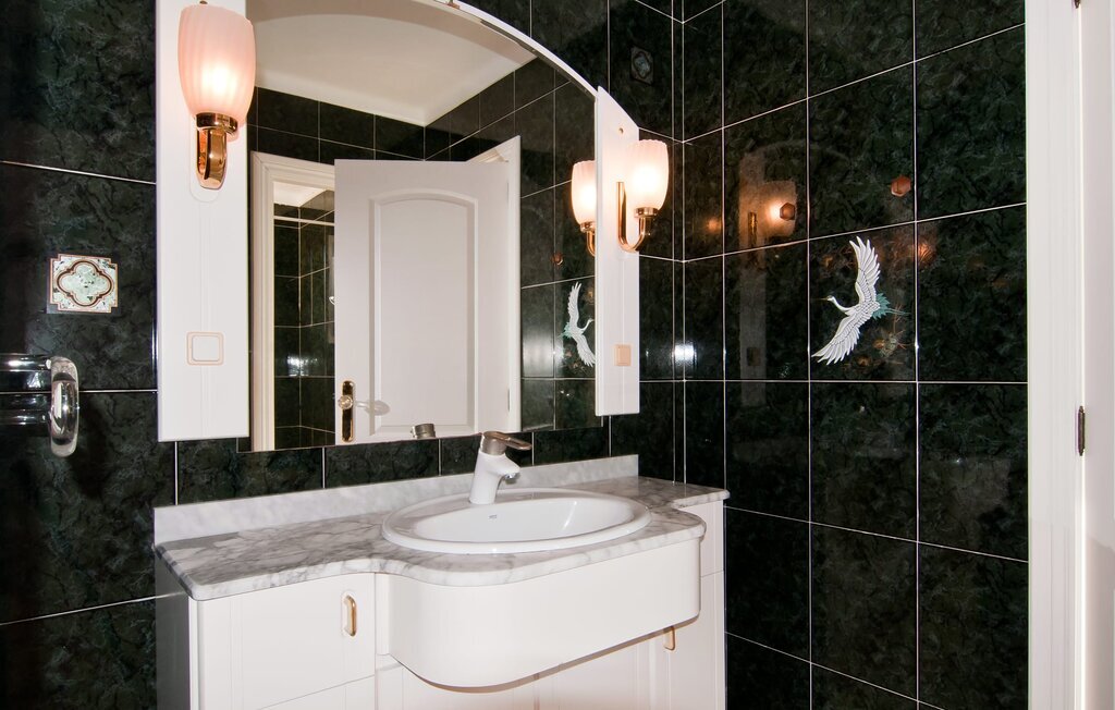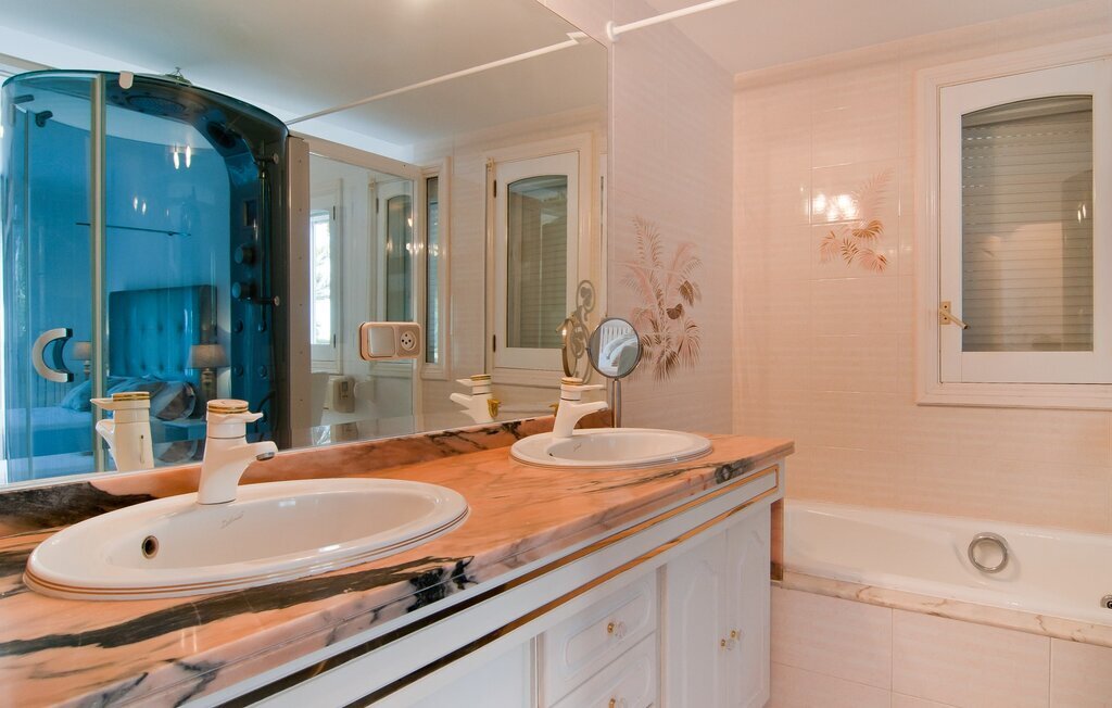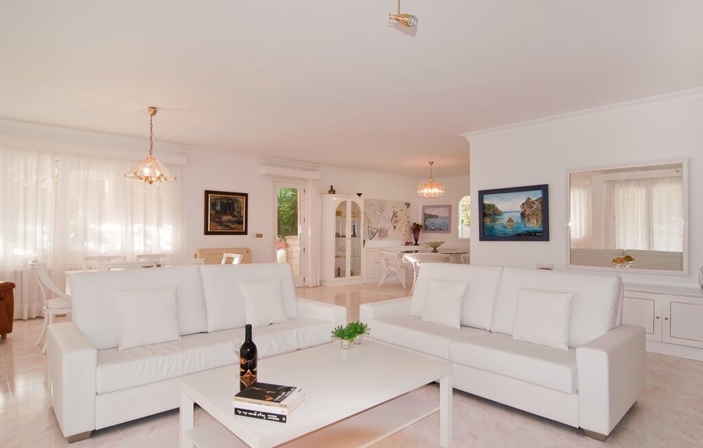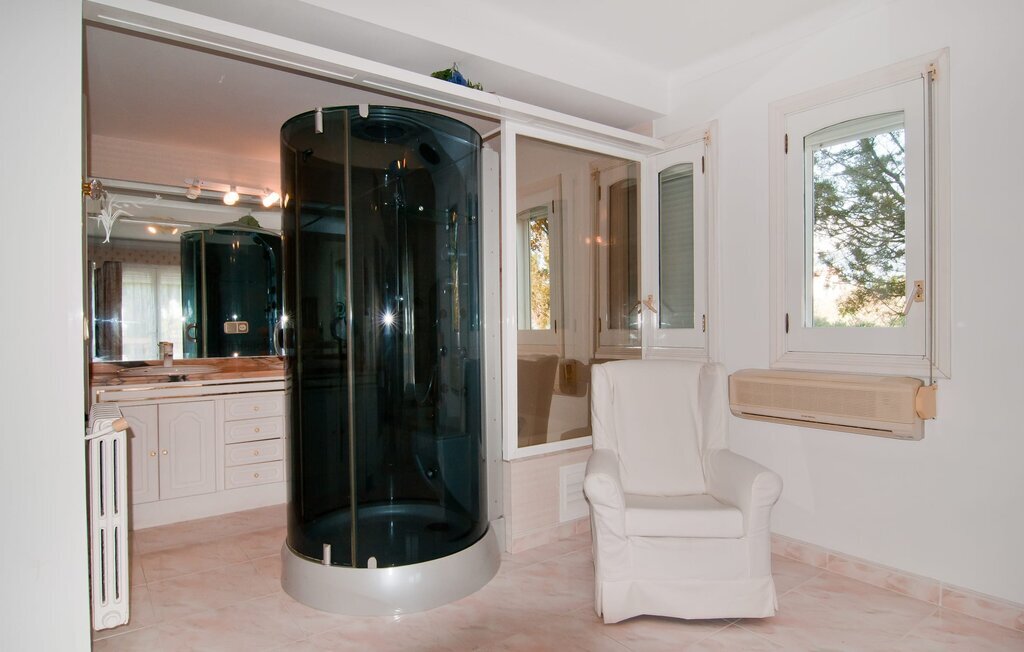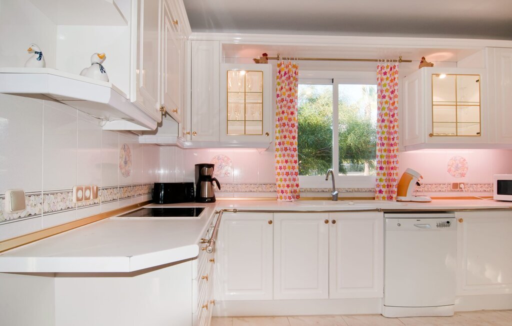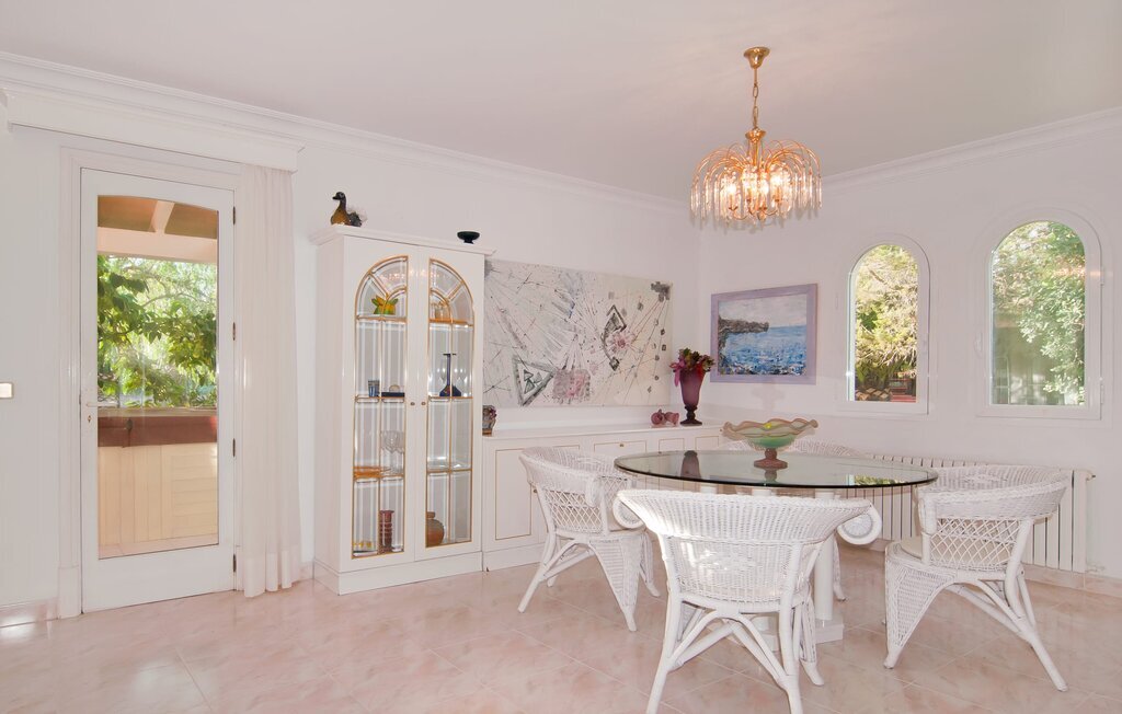 En raison de sa situation rurale à proximité de la côte, la Villa Bonbon est un excellent point de départ pour passer de merveilleuses vacances en famille ou à la plage. Un jardin méditerranéen soigneusement aménagé avec des palmiers et des arbres, une pelouse et une piscine vous invite à vous adonner à votre paresse intérieure pendant une courte période (ou peut-être même plus longtemps). Ici, vous pouvez tout simplement vous déconnecter, laisser le quotidien derrière vous et vous faire plaisir à tous les niveaux. La piscine est assez luxueuse et se distingue par sa mosaïque d'étoiles de mer décorative et son accès facile par un escalier. Sur les chaises longues mises à disposition ou sur la jolie véranda à laquelle vous accédez en six pas seulement, vous pouvez vous détendre à votre guise et peut-être même tout simplement laisser votre esprit vagabonder. La terrasse couverte se trouve devant le salon et s'étend sur deux côtés de la maison. Un canapé d'extérieur et une table à manger offrent des espaces confortables pour s'asseoir et admirer la vue. Si vous le souhaitez, rien ne vous empêche de prendre vos repas simplement à l'extérieur et de profiter de la douceur du climat et de l'air rafraîchissant. Une famille de poules vit dans un espace séparé, dans un jardin d'orangers et de citronniers situé juste à côté. Ainsi, même en vacances, vous pouvez vous réjouir d'un approvisionnement permanent en œufs frais. Votre propre court de tennis est vraiment la douceur particulière de cette villa au nom bien choisi et ravira certainement tous les passionnés de sport parmi vous. Juste devant le bâtiment se trouve un parking ombragé avec de la place pour deux voitures.