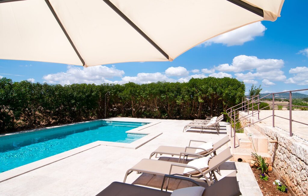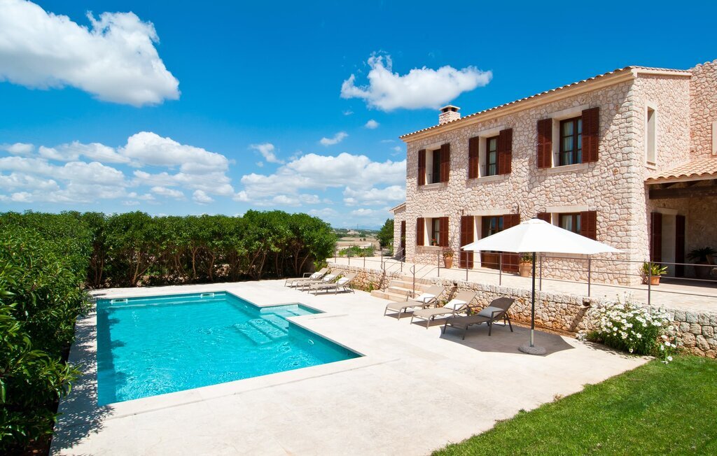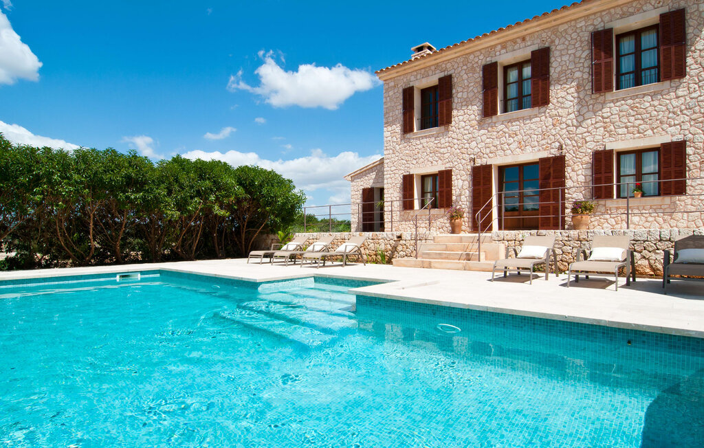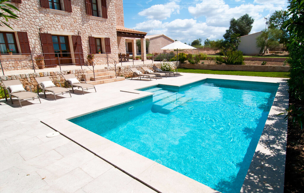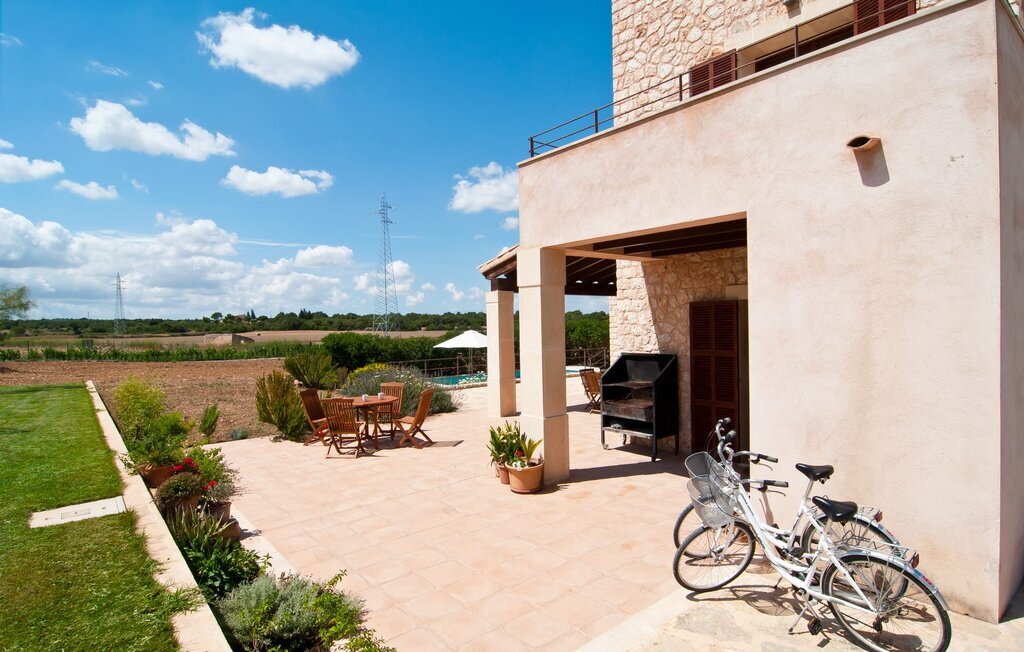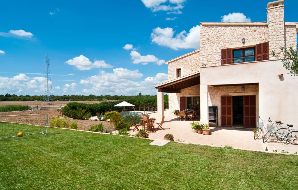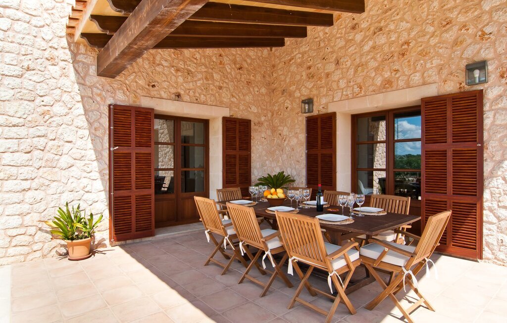 La Villa Son Perot est un lieu de villégiature enchanteur que l'on reconnaît déjà de loin. La maison de deux étages, avec une façade en pierre naturelle d'une beauté à couper le souffle et des fenêtres et volets en bois, se trouve sur un terrain de 15.000 m² qui bénéficie d'un bon accès entre Manacor et Vilafranca, tout en étant situé à la campagne de Bonany. La propriété offre également tout ce dont vous avez besoin pour des vacances bien remplies. Une partie du terrain magnifiquement entouré est caractérisée par des terrasses et des pelouses ainsi que par diverses plantations méditerranéennes décoratives dans des parterres et des bacs. La piscine de 9 mètres de long, située devant la maison, vous permettra de vous rafraîchir les jours de grande chaleur. Le bassin est très facilement accessible par un large escalier et est bordé d'une terrasse ensoleillée accueillante. Six chaises longues confortables sont à votre disposition pour vous détendre longuement. Vous pouvez vous allonger et rêver sous le ciel bleu profond de la Méditerranée, en laissant le quotidien loin derrière vous. Pour une protection supplémentaire contre les rayons UV, un parasol est à disposition. La terrasse devant la maison, accessible par quelques marches, offre également des possibilités de rester à l'ombre et de profiter de l'environnement de rêve. Vous pouvez vous asseoir à la table à manger massive dans une superbe atmosphère, prendre vos repas à l'extérieur à votre guise et laisser votre regard se perdre dans le lointain. La cuisine extérieure et le barbecue offrent d'excellentes possibilités de préparer des repas en plein air et permettent de concocter des délices régionaux avec les produits récoltés au marché.