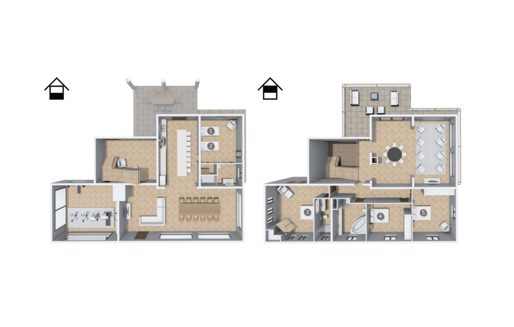 Noorea propose principalement des propriétés indépendantes : maisons, villas et chalets.