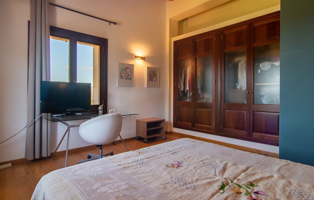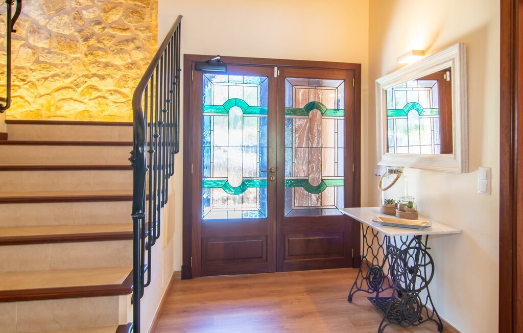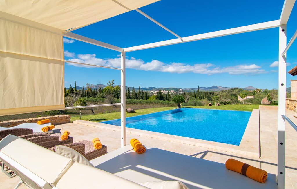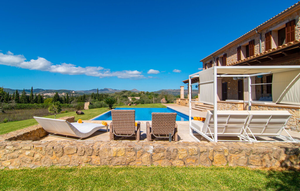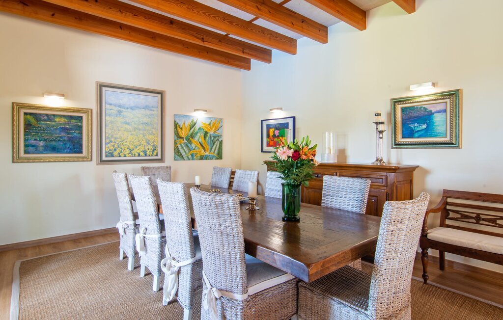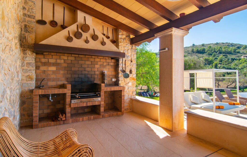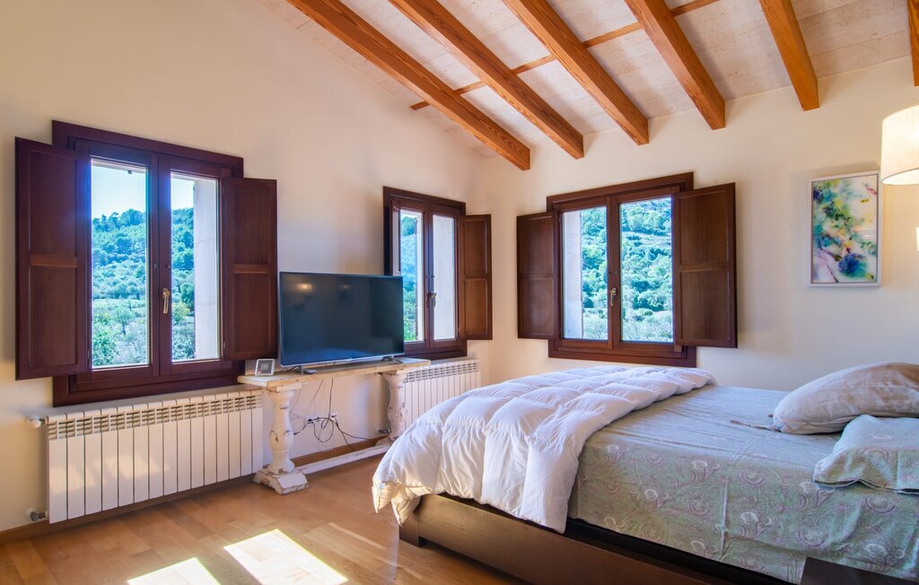 Il est maintenant temps d'entrer dans cette villa accueillante qui ne manquera pas de vous impressionner. Vous entrez tout d'abord dans le salon confortable avec une salle à manger adjacente - les meubles et la décoration sont de style campagnard moderne et sont complétés par des moments de tradition typiquement majorquine. La cuisine entièrement équipée avec ses façades en bois foncé est dotée de toutes les commodités techniques dont vous avez besoin pour faire de l'autosuffisance un jeu d'enfant. L'îlot central avec ses tabourets sert de centre communicatif lorsque vous cuisinez ensemble. Depuis les chambres à coucher, vous avez non seulement une vue apaisante sur la nature, mais vous pouvez également profiter d'une nuit de sommeil réparatrice. Cette villa est idéale pour deux familles avec enfants ou pour de bons amis qui souhaitent simplement passer plus de temps ensemble. Les chambres doubles sont réparties sur deux étages et deux d'entre elles disposent d'une confortable salle de bains en suite. Une troisième salle de bains, également carrelée de façon moderne, est partagée. Comme il y a un WC supplémentaire pour les invités, vous pouvez éviter les éventuels conflits de salle de bains pendant vos vacances.