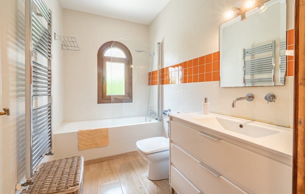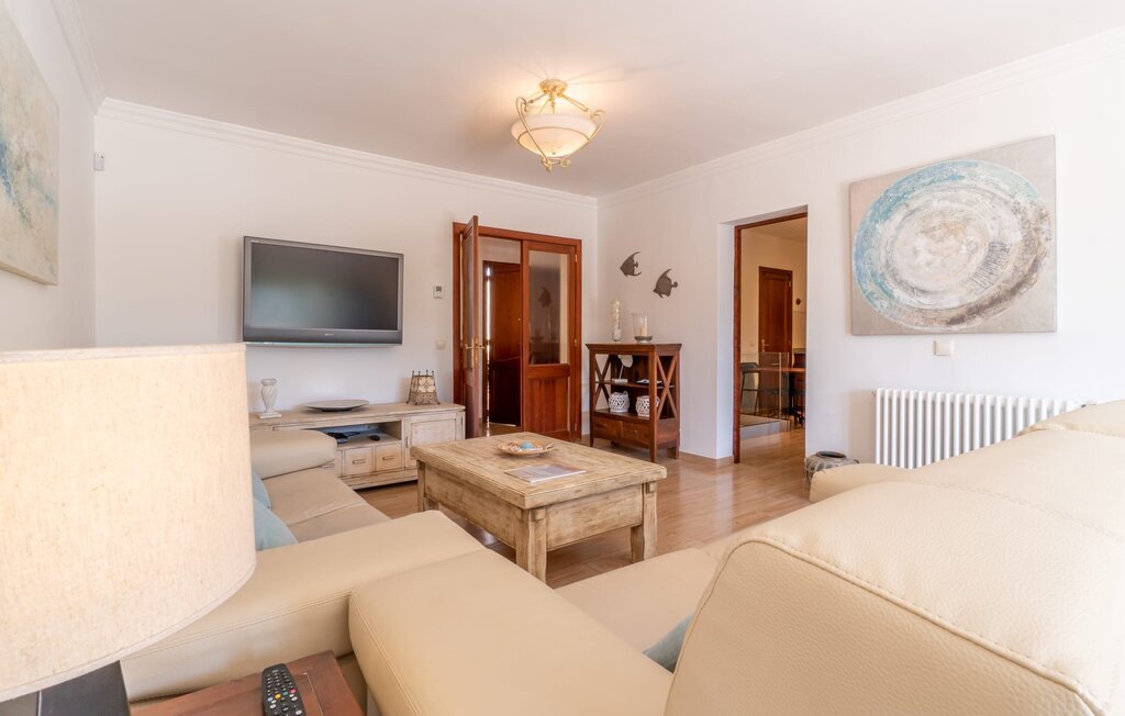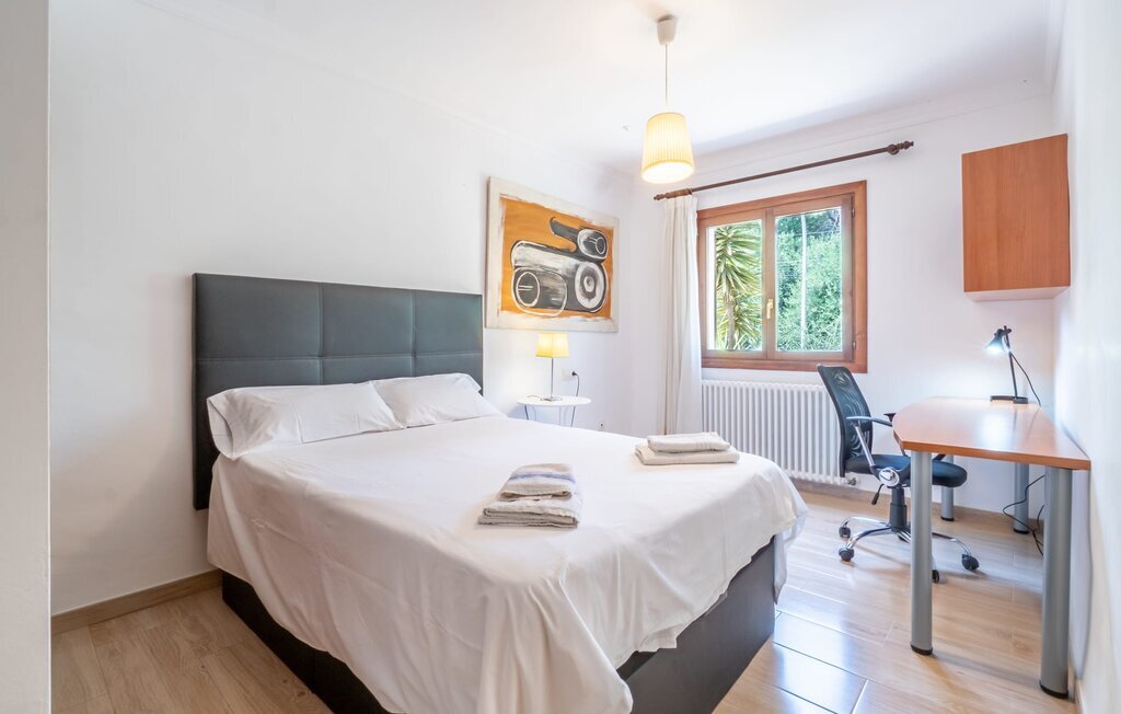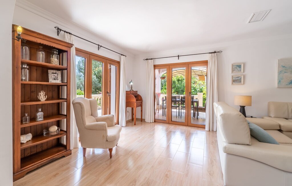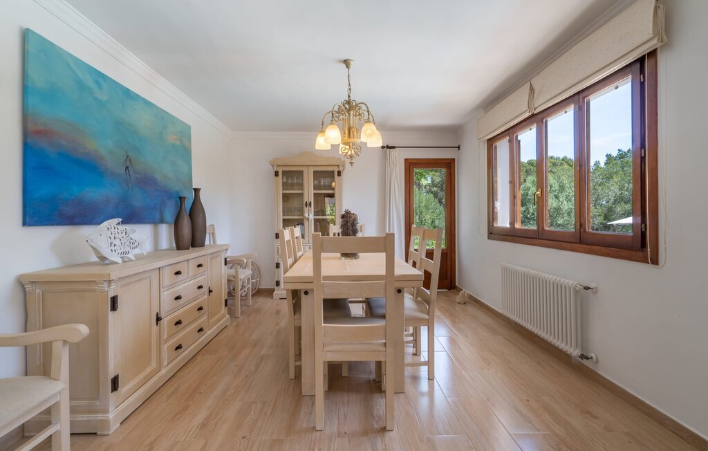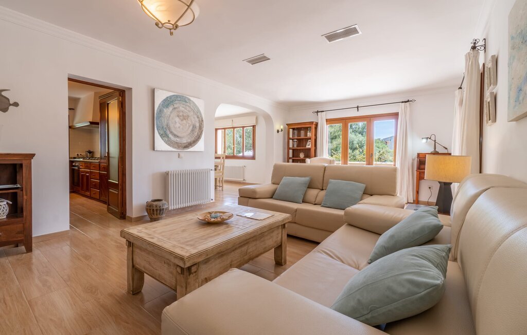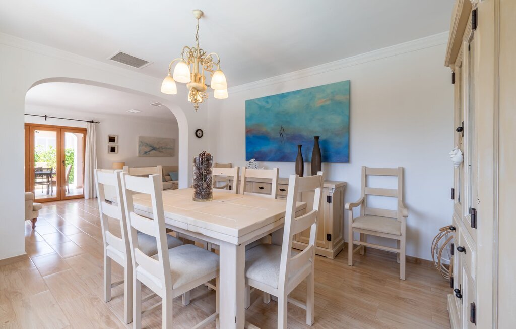 Confortable, harmonieuse et agréablement lumineuse : dans la Villa Passeig Platon, il règne partout une agréable atmosphère de bien-être. D'une part, il y a le salon/salle à manger ouvert, qui peut même être agrandi d'une magnifique zone d'air frais grâce à la terrasse-lounge adjacente. Un éclairage de style et des peintures murales discrètes complètent l'aménagement de bon goût de cette maison de vacances à Majorque. Au rez-de-chaussée se trouvent également la cuisine bien équipée avec beaucoup d'espace de rangement pour les délices régionaux ainsi que les trois chambres à coucher (chacune avec un lit double : une de 1,50 x 1,90 m et deux de 1,35 x 1,90 m). La villa dispose en outre de deux salles de bains soignées, les amateurs de baignoires y trouveront également leur compte. Petite particularité : dans le sous-sol de cette maison de vacances à Majorque, il y a une autre chambre avec un canapé et un bureau. Bibliothèque, bureau, lieu de retraite avec cheminée romantique Les idées d'utilisation ne manquent pas. La villa Passeig Platon est située au sud de Majorque, dans un beau lotissement à environ 0,5 km au nord de la magnifique baie Cala Media. Supermarchés, bars et restaurants sont accessibles à pied, le marché hebdomadaire de Porto Cristo et d'autres possibilités d'achat sont à environ 5 km. La maison de vacances se trouve sur une route acoustiquement perceptible, ce qui permet d'accéder facilement à des sites touristiques connus comme les Coves del Drac. Ne manquez pas les magnifiques plages de sable au coin de la rue.