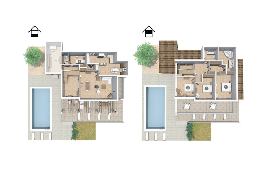 Noorea propose principalement des propriétés indépendantes : maisons, villas et chalets.