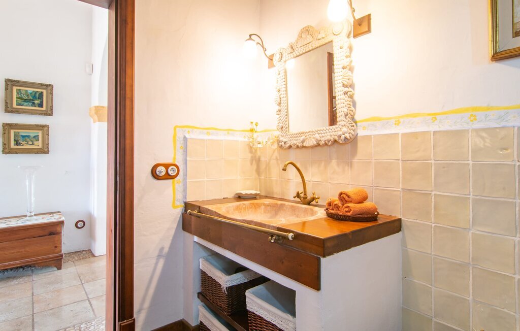 Petra, le village endormi avec ses maisons en moellons brun doré d'un côté, Manacor avec son marché hebdomadaire animé et sa zone piétonne animée de l'autre, les destinations d'excursion ne manquent pas dans les environs. Vous pouvez passer vos journées à la plage dans l'une des magnifiques baies naturelles à environ 30 minutes, dans la ville animée de Porto Cristo ou dans la ville idyllique de Sa Coma. Les vacanciers actifs trouveront également leur compte dans cette région, avec des pistes cyclables et des sentiers de randonnée à perte de vue. Les golfeurs se rendront probablement sur le terrain de golf La Reserva Rotana, situé à environ 11 km. Bon à savoir : L'aéroport de Palma se trouve à environ 45 minutes. La charmante villa Es Turó se trouve au centre de Majorque, à environ 4 km au sud-est de Petra. Dans la ville viticole, vous trouverez plusieurs restaurants et bars sympathiques ainsi que des supermarchés. Grâce à sa situation à proximité de la route Ma-3320, de nombreuses destinations d'excursions sont facilement accessibles. De magnifiques criques naturelles comme Cala Varques ou Cala d'Es Serral se trouvent à environ 18 km et invitent à de longues journées de plage. Ceux qui recherchent un peu plus d'animation trouveront tout cela à Porto Cristo ou Sa Coma.
