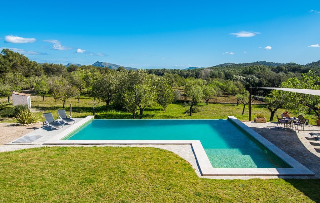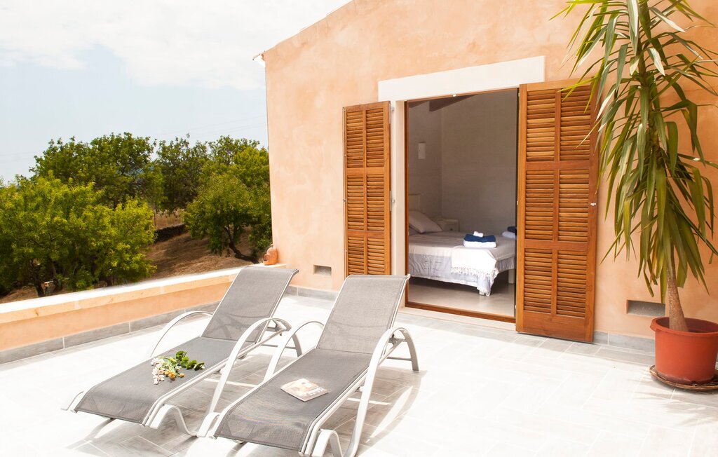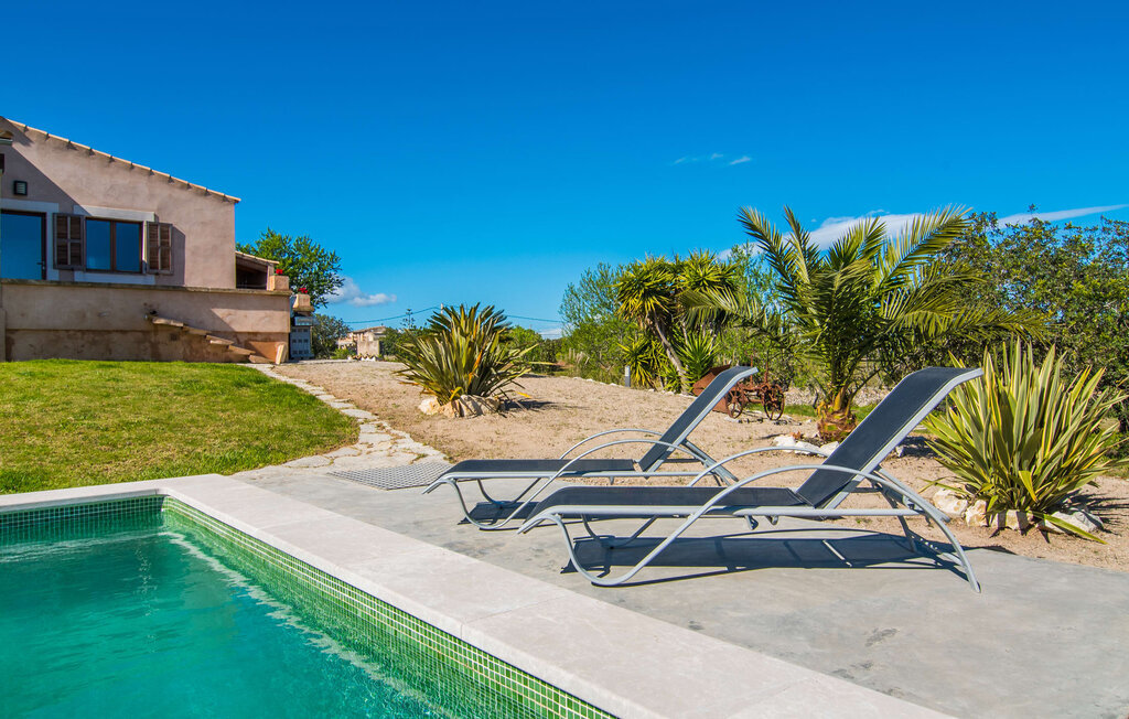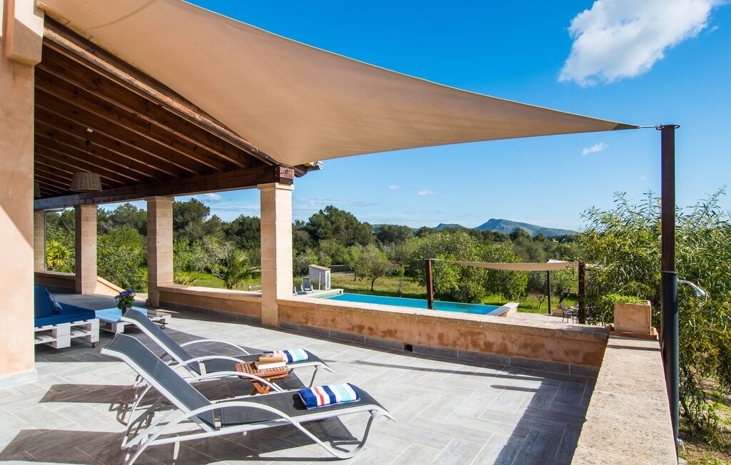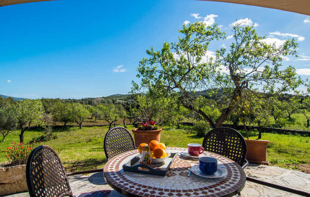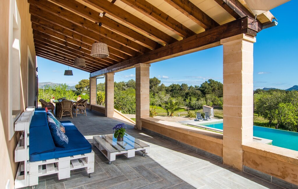 Au milieu d'un paysage naturel, entourée de nombreux amandiers et avec une vue magnifique sur les douces collines autour d'Artà, la villa compacte de construction récente S'Oratge se trouve dans un endroit isolé enchanteur. Après avoir emprunté la route privée menant à la villa, vous pourrez garer votre voiture à l'ombre sur le grand terrain entourant la maison. Cette villa est construite en forme de U, c'est-à-dire que les pièces communes se trouvent dans la partie centrale et que les chambres à coucher sont situées aux deux extrémités du U. À l'extérieur, il y a une jolie terrasse qui abrite une table en mosaïque filigrane de style bistrot et quatre chaises en métal. Ici, vous pouvez profiter du magnifique soleil de l'après-midi. S'il fait trop chaud, vous pouvez toujours vous réfugier sur la terrasse couverte. De l'autre côté, qui fait face à l'est, il y a une grande terrasse couverte avec une longue table en osier avec un plateau en verre et des chaises en osier confortables. Un barbecue est à votre disposition, où vous pourrez passer d'agréables soirées ensemble. Seules six marches mènent à l'espace piscine sous la véranda. La piscine à débordement vraiment spacieuse confère à l'endroit une belle atmosphère avec une vue superbe sur les collines environnantes. Plusieurs chaises longues sont disponibles sur la terrasse ensoleillée en pierre naturelle. À l'autre extrémité, il y a un autre petit ensemble de tables et de chaises. Pour nos petits hôtes, il y a une balançoire et un bac à sable à l'extérieur. L'une des quatre chambres à coucher a accès à un balcon spacieux avec des chaises longues relaxantes.