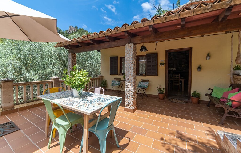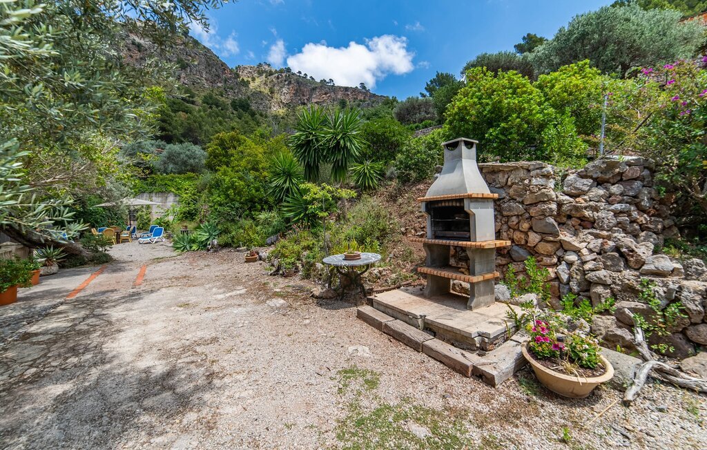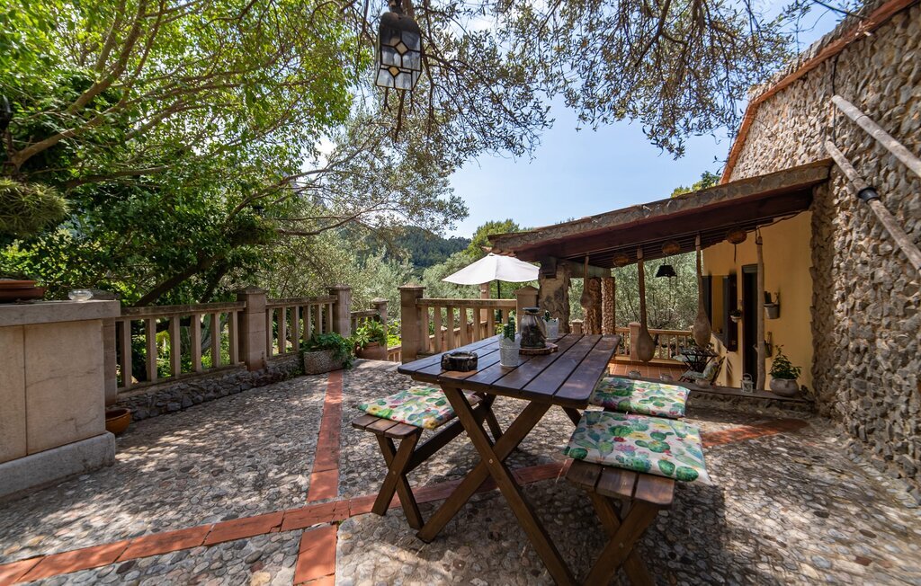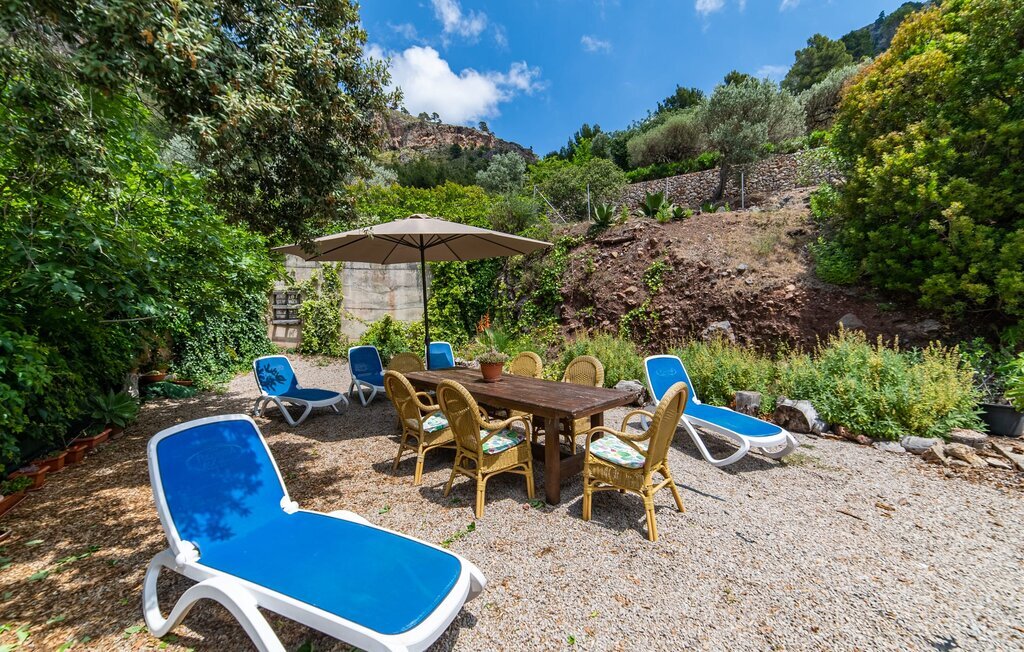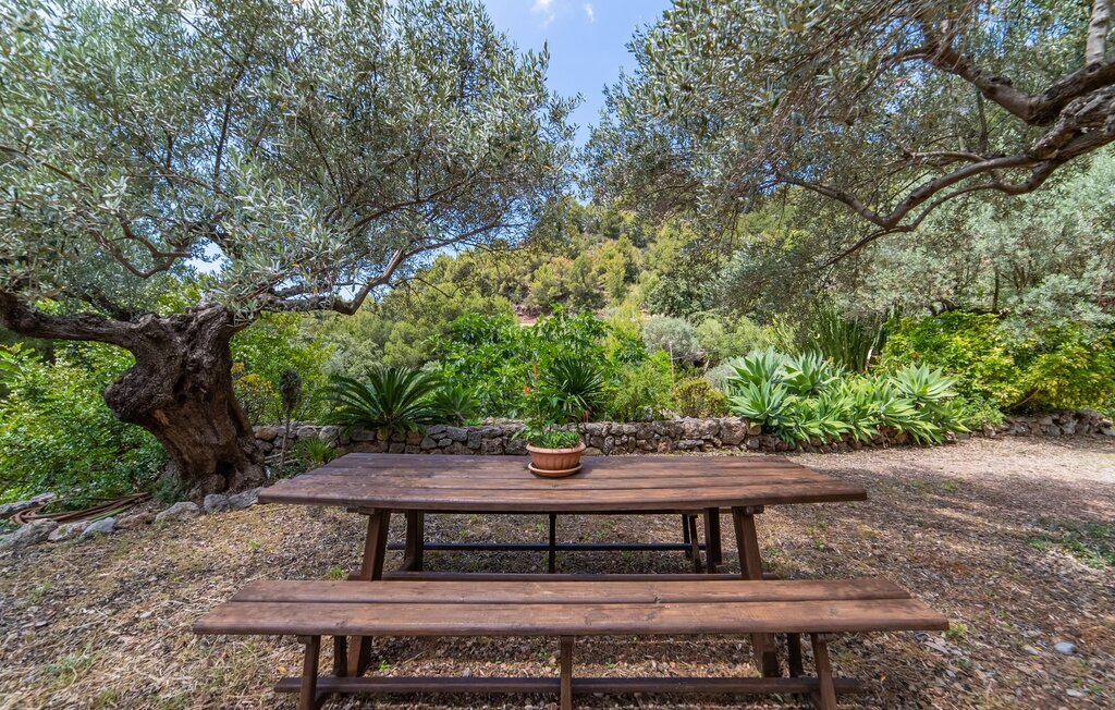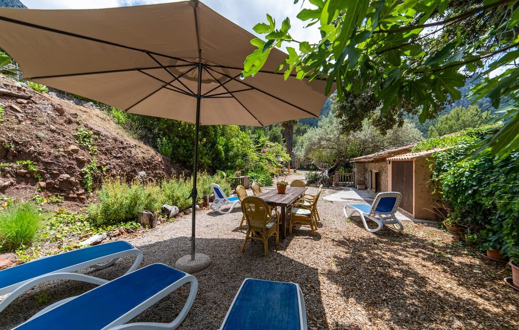 La maison de montagne se trouve sur un terrain en pente avec une nature luxuriante au centre de la Sierra de Tramuntana dans le nord de Majorque. La baie de Cala Tuent et son restaurant sont à 13 minutes à pied ou à 3 minutes en voiture. Il existe des itinéraires intéressants pour le vélo et la randonnée, par exemple vers les barrages de Gorg Blau et de Cúber.