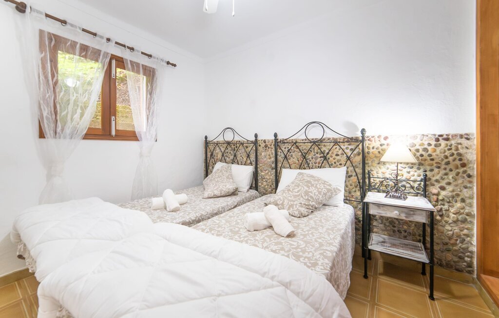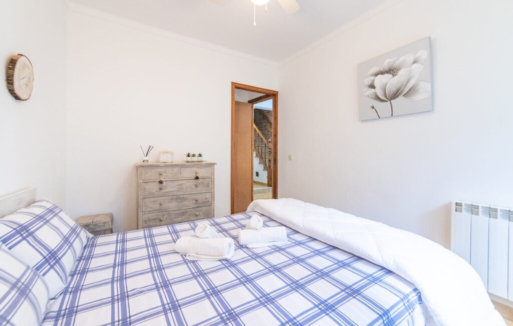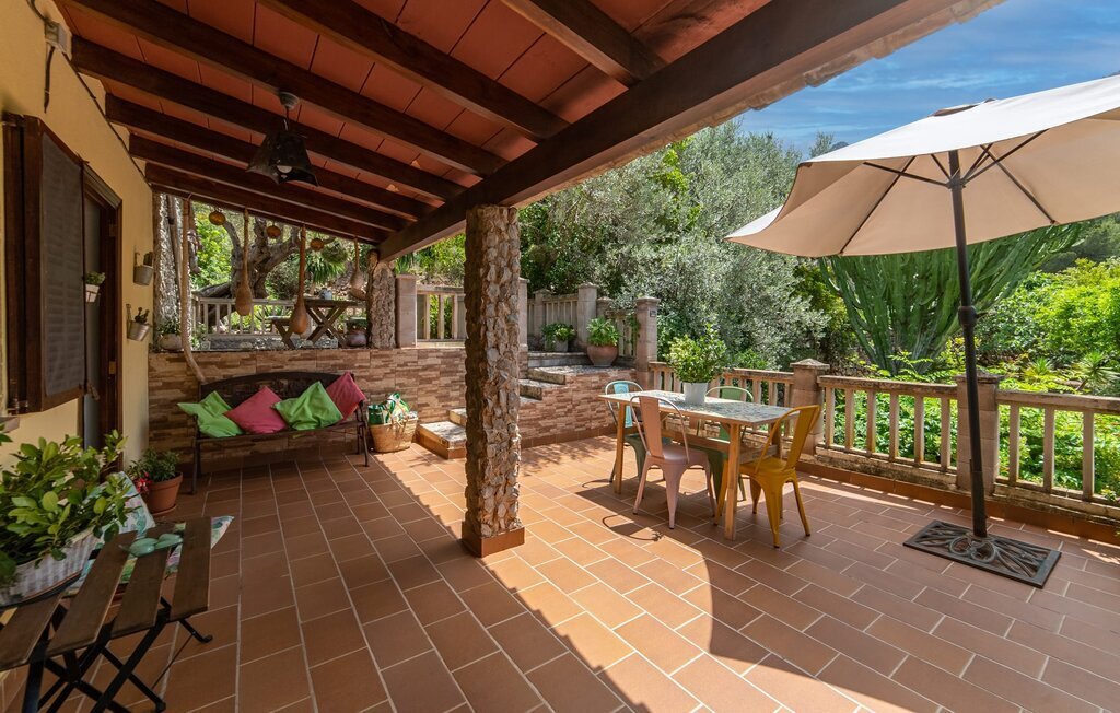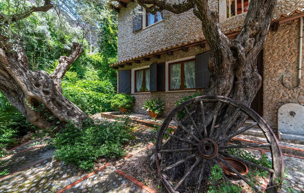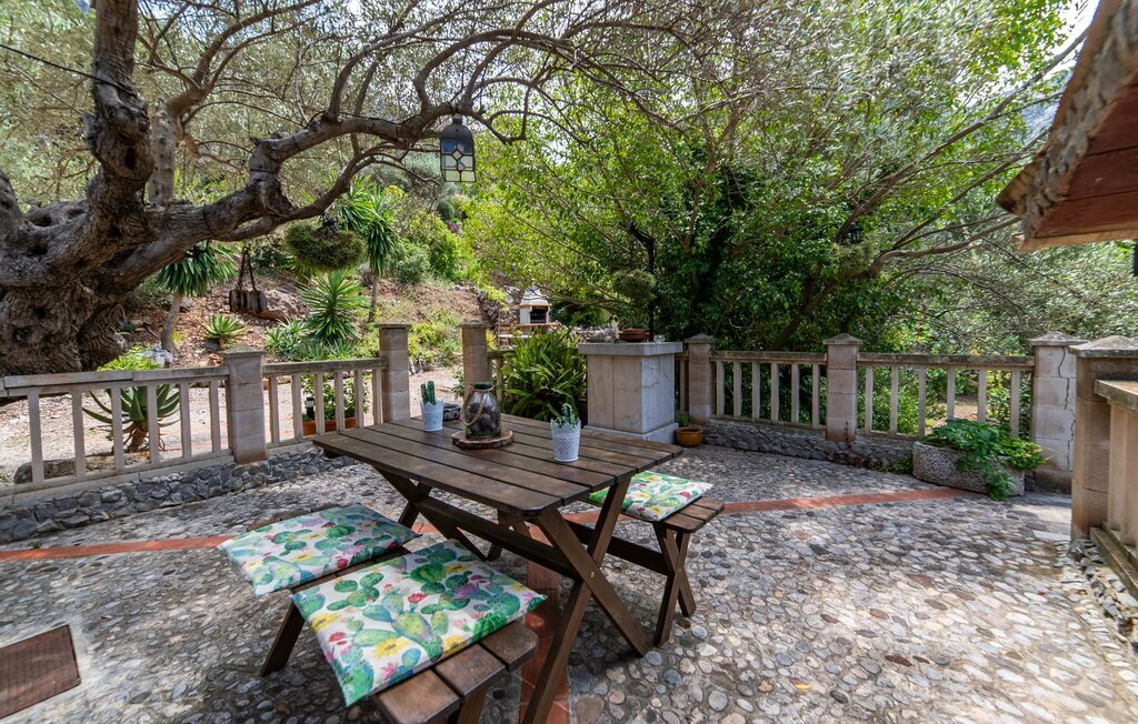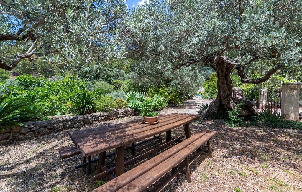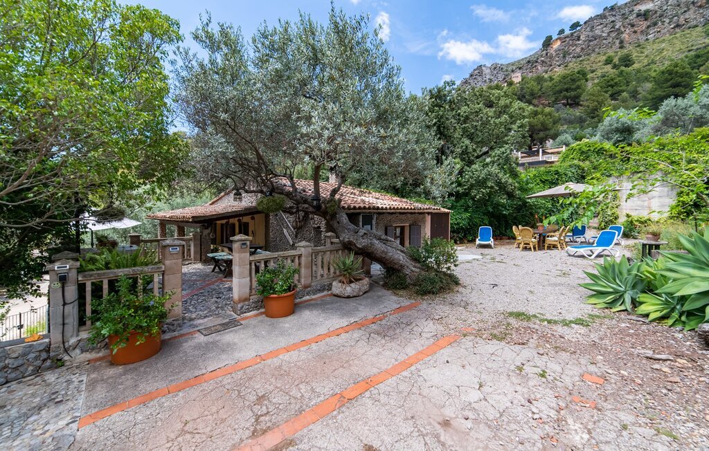 La maison de montagne se trouve sur un terrain en pente avec une nature luxuriante au centre de la Sierra de Tramuntana dans le nord de Majorque. La baie de Cala Tuent et son restaurant sont à 13 minutes à pied ou à 3 minutes en voiture. Il existe des itinéraires intéressants pour le vélo et la randonnée, par exemple vers les barrages de Gorg Blau et de Cúber.
