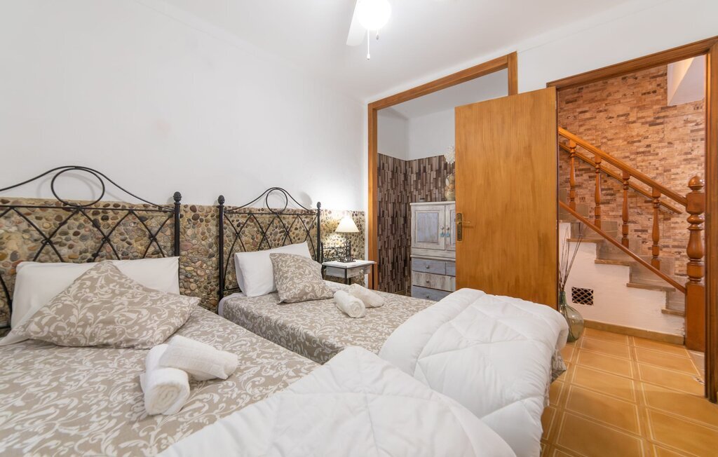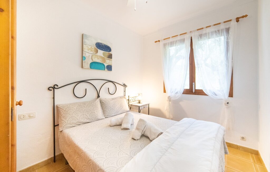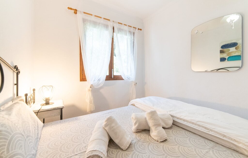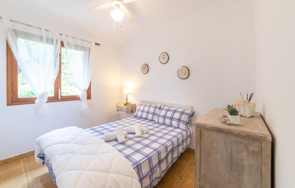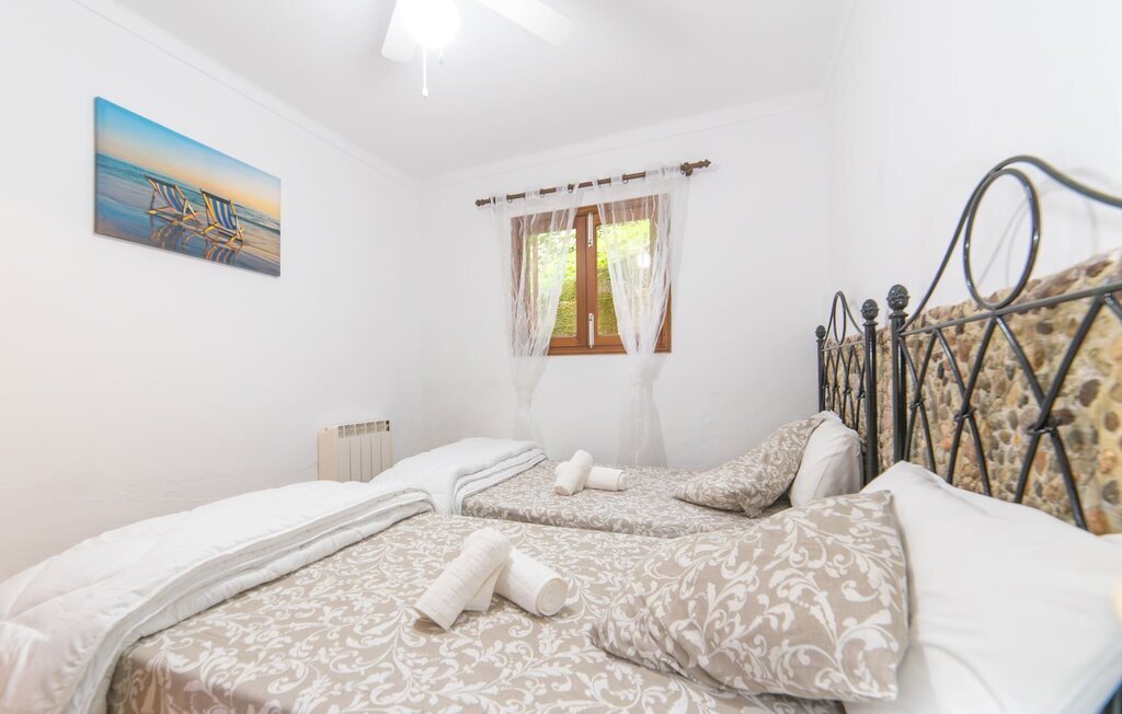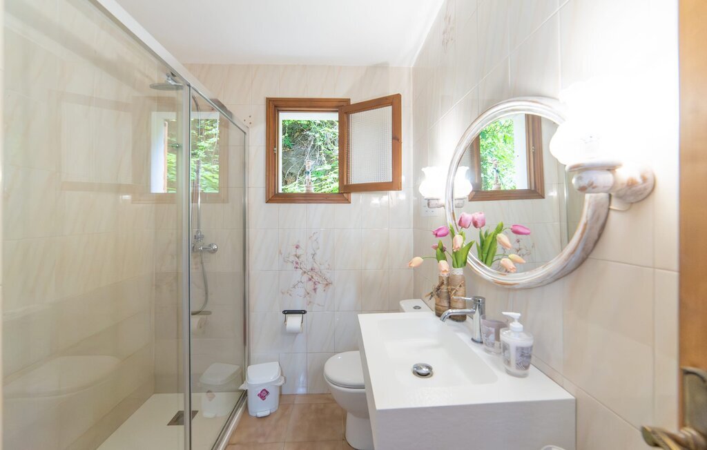 La maison de montagne se trouve sur un terrain en pente avec une nature luxuriante au centre de la Sierra de Tramuntana dans le nord de Majorque. La baie de Cala Tuent et son restaurant sont à 13 minutes à pied ou à 3 minutes en voiture. Il existe des itinéraires intéressants pour le vélo et la randonnée, par exemple vers les barrages de Gorg Blau et de Cúber.