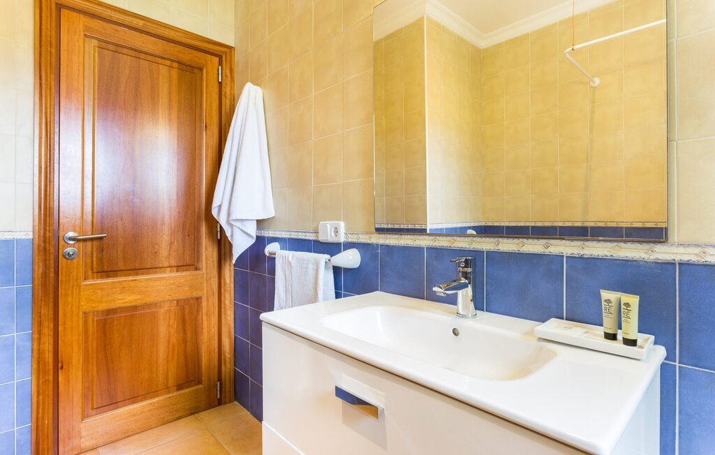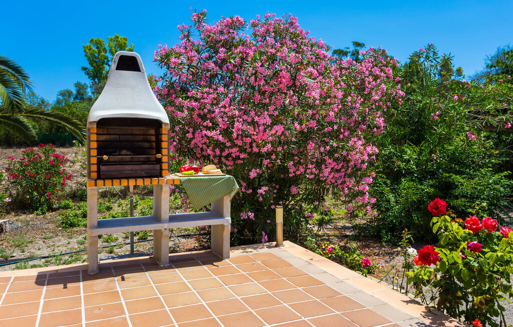 À l'intérieur, la villa spacieuse dispose de commodités de qualité. Des pièces lumineuses avec des plafonds en bois et de beaux carreaux de sol créent une atmosphère joyeuse. Le grand salon dispose d'une cheminée ouverte et d'un coin canapé confortable. La cuisine entièrement équipée dispose d'une table à manger pouvant accueillir jusqu'à dix personnes et d'une buanderie avec machine à laver. Quatre chambres à coucher avec lumière du jour, couplées à quatre salles de bains et au chauffage central, assurent un séjour reposant tout au long de l'année.