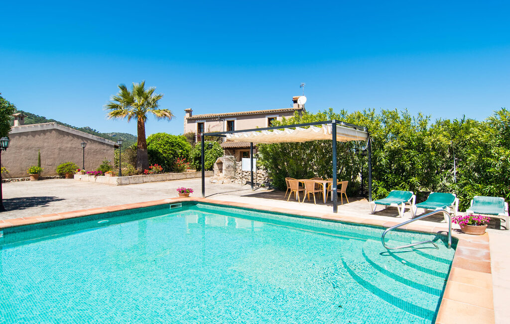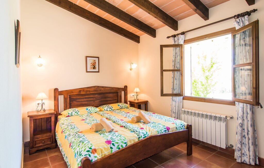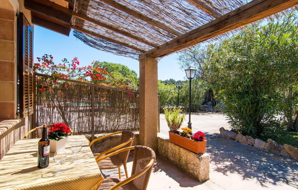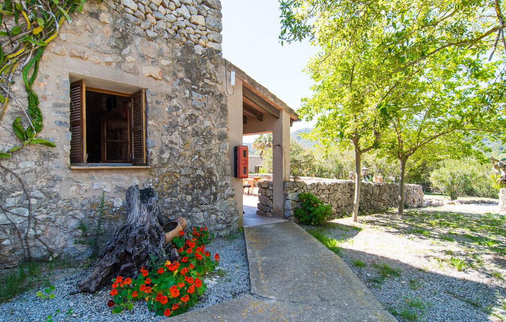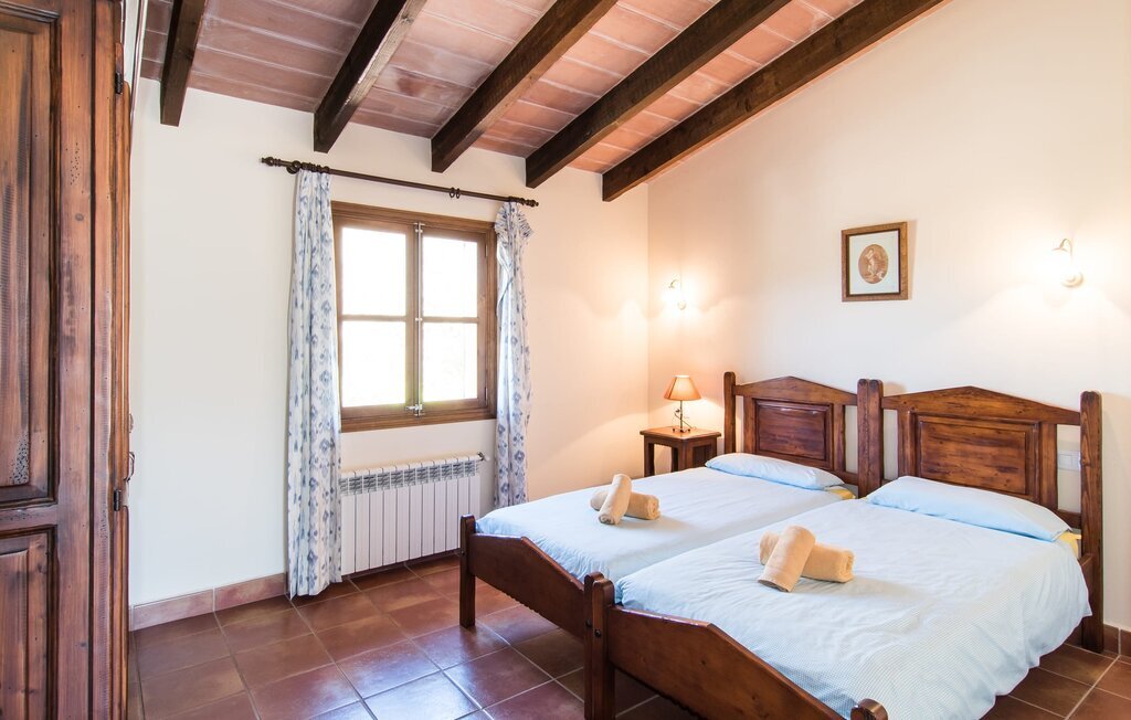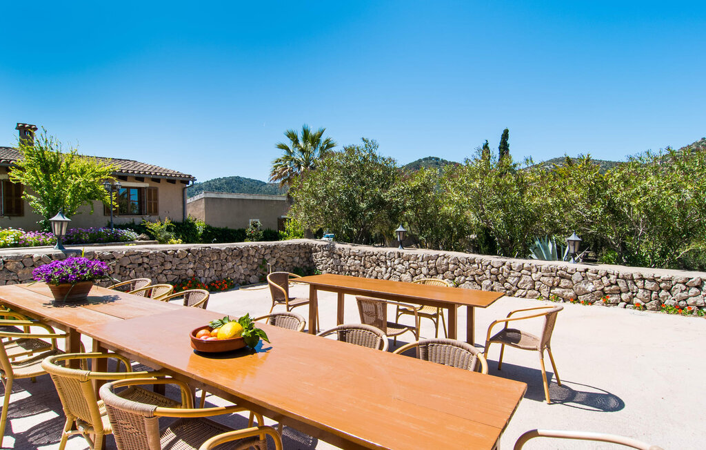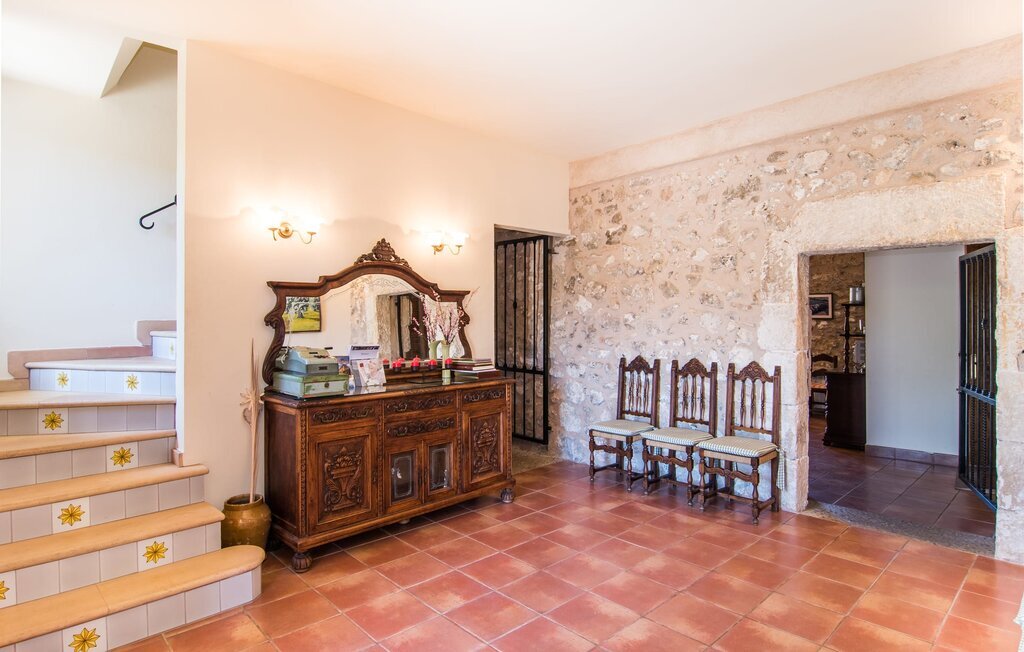 Si vous voyagez avec un groupe plus important, par exemple un club de sport, un grand groupe d'amis ou la famille pour une occasion spéciale : c'est l'endroit parfait pour offrir beaucoup d'espace tout en conservant une grande intimité. La Villa Parreta est parfaitement conçue pour accueillir un si grand nombre d'invités. La maison est un bon mélange entre une villa privée classique et un hôtel. Toutefois, il s'agit d'un logement indépendant et vous pouvez avoir cette propriété spacieuse rien que pour vous, sans personnel ni autres invités. Le style classique de la maison de campagne majorquine, mélangé à une hospitalité simple associée au confort, vous accueille dans toutes les chambres. Dans la maison principale, il y a une cuisine parfaitement équipée avec tous les appareils possibles et imaginables, y compris un lave-vaisselle. Cela devrait faire battre le cœur de ceux d'entre vous qui cuisinent en tant que hobby. Si vous ne mangez pas à l'extérieur, vous pouvez vous réunir dans l'opulente salle à manger avec des murs en poutres apparentes. Prenez un verre au bar du salon avant le dîner ou savourez ici un after-dinner drink après le menu à plusieurs plats que vous avez préparé ensemble. Un sentiment de vacances tout à fait individuel est garanti lorsque les vacances ont été planifiées soi-même. L'hébergement se fait - et c'est une caractéristique absolument convaincante de cette villa aussi raffinée qu'économique - dans le bâtiment principal ou dans un bâtiment séparé. Au premier étage du bâtiment en pierres de taille restauré se trouvent deux suites composées d'une chambre à coucher, d'un salon et d'une salle de bain en suite. La spacieuse chambre double avec salle de bain située au même étage est la seule à ne pas disposer d'une petite cuisine et d'un salon. Juste derrière la maison se trouve un quatrième appartement autosuffisant et entièrement équipé. Les quatre autres appartements, d'une surface habitable de 55 m² chacun, se trouvent dans le corps de bâtiment allongé juste à côté. Chaque unité dispose de sa propre chambre à coucher, d'une salle de bain moderne carrelée et d'un espace salon et cuisine ouvert. Depuis le logement, il y a un accès direct à la terrasse couverte avec une table et deux chaises, idéale pour un moment à deux afin de profiter pleinement de ce paradis rural et de son climat agréablement doux.