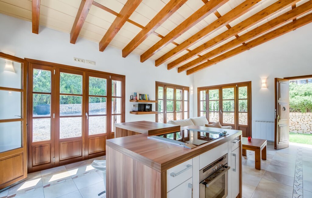 À l'intérieur, la finca présente un mélange harmonieux de styles traditionnel et moderne, avec des éléments en bois chaleureux et des sols en pierre qui créent une atmosphère élégante. Le rez-de-chaussée comprend un grand salon et une salle à manger, une cuisine moderne équipée d'appareils haut de gamme, un WC pour les invités et une chambre à coucher lumineuse avec salle de bains privative. Un escalier ouvert mène à l'étage supérieur, où d'autres chambres à coucher doubles, chacune avec sa propre salle de bain et de grandes fenêtres, assurent intimité et confort. Le pool house offre une autre unité d'habitation avec chambre, cuisine et salle de bains, ce qui augmente l'attrait de la finca.
