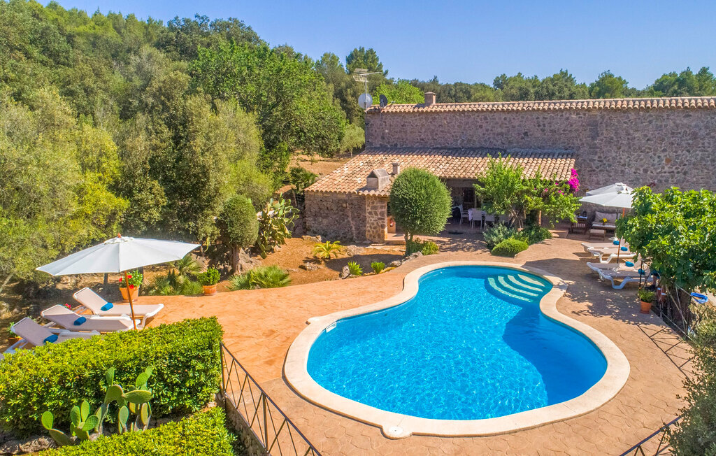 Bienvenue à Majorque et Cases de Son Duc ces deux clauses semblent indissociables. En effet, cette maison traditionnelle en moellons datant de 1901 raconte l'histoire de Majorque. La façade rustique avec ses persiennes brunes a été rénovée avec amour en respectant soigneusement la conservation de la ferme ; les animaux et les tracteurs donnent une ambiance rurale. La maison se caractérise par une splendeur presque féerique, entourée de bougainvilliers violets, de vigne, d'oliviers, d'agrumes et de cactus. Le beau jardin est omniprésent. Dans ce lieu de rêve et isolé, vous et votre famille ou vos amis pouvez vraiment vous sentir à l'aise. Une piscine de forme organique, délimitée par une terrasse périphérique, y contribue également. Vous pouvez y installer vos chaises longues pour vous détendre et profiter d'un bon bain de soleil. Ensuite, vous pourrez préparer un délicieux BBQ dans la petite mais agréable cuisine extérieure avec barbecue intégré. Il y a de nombreuses places assises à l'extérieur, du coin repas couvert au salon ombragé, en passant par d'autres coins éparpillés où vous pouvez savourer votre café du matin ou un verre de vin rouge aromatique et terminer tranquillement la journée qui vous dit bonne nuit et tranquillement simplement avec les bruits de la nature.