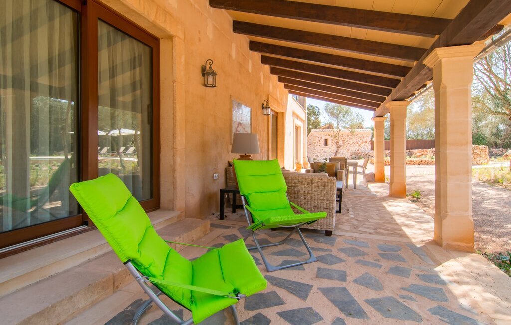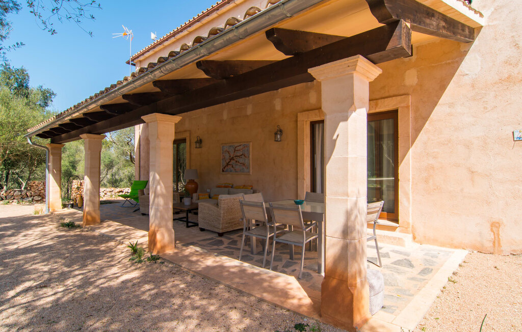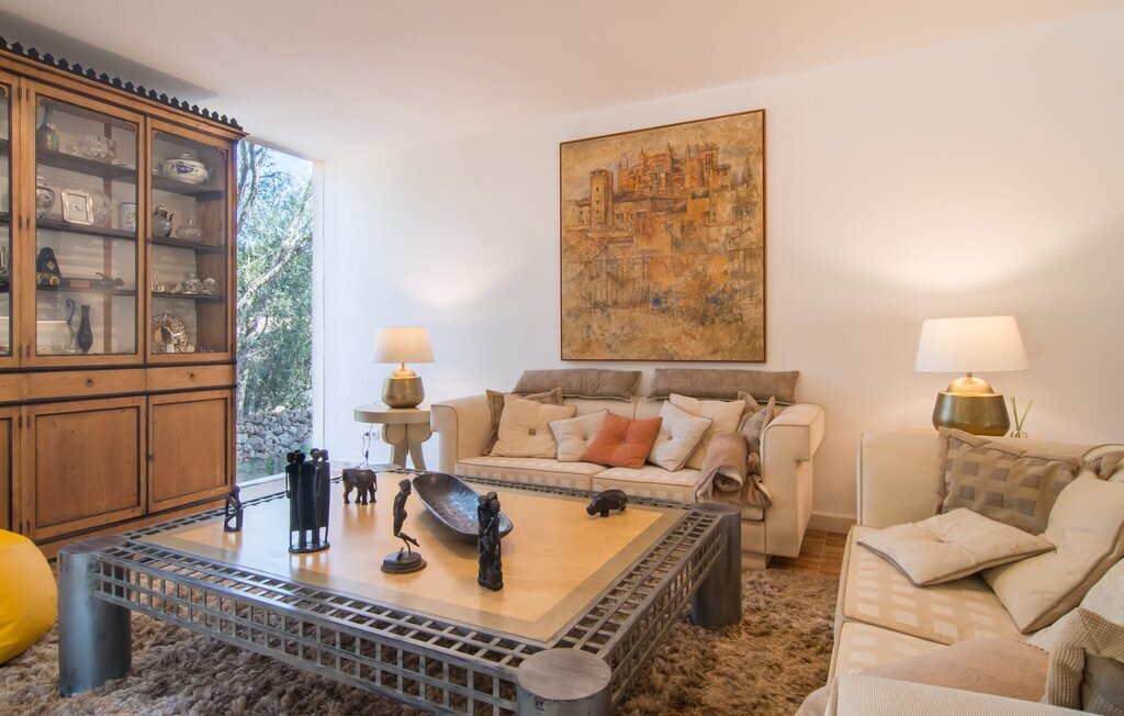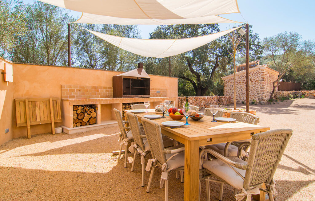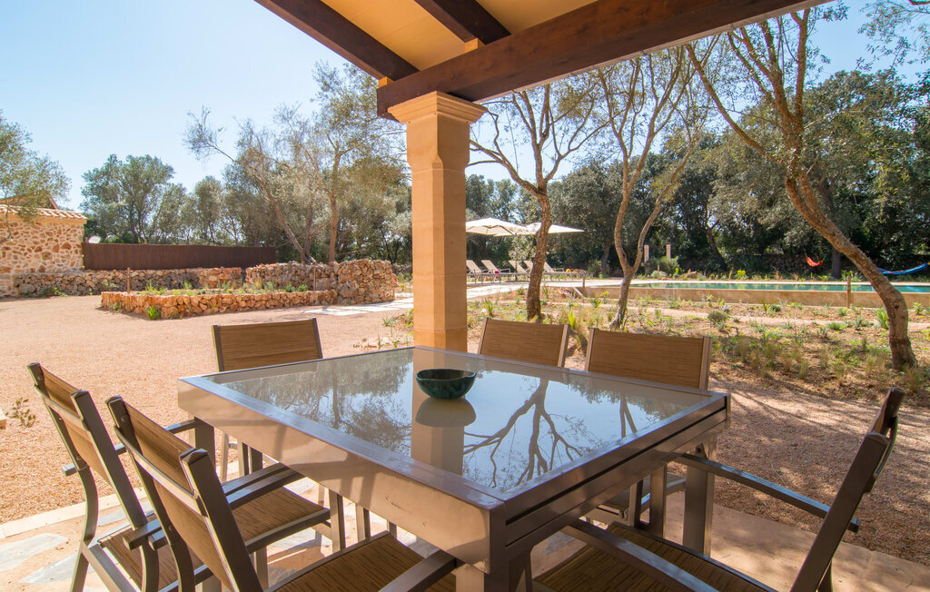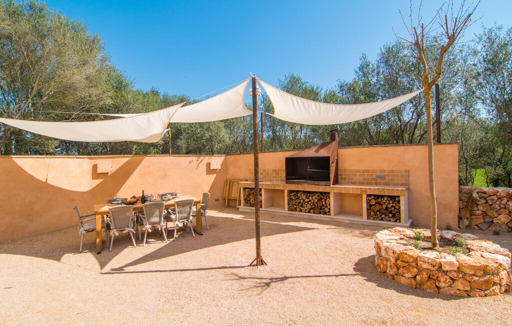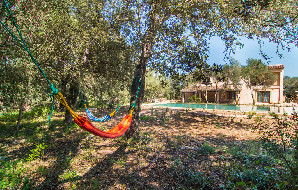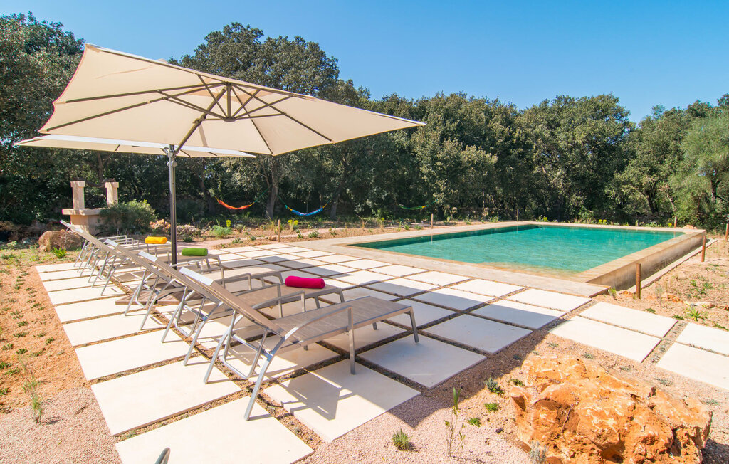 Les couleurs de Can Madis attirent immédiatement le regard et expriment la vivacité, la liberté, la proximité avec la nature et en même temps un sentiment de beauté noble et de luxe. Quelque chose que l'on s'offre rarement, peut-être trop rarement. C'est pourquoi vous devriez gâter votre famille et vos amis en leur rendant visite à Can Madis, une magnifique propriété au cœur de notre île. Des figuiers et des oliviers, des cyprès et des vues sur les montagnes de la Tramuntana caractérisent cette propriété méditerranéenne. Le bâtiment récemment construit en grès, qui brille d'un éclat doré au soleil, reflète la tradition et la modernité. Elle est complétée par une immense piscine avec un accès confortable. Après de longues journées d'excursion ou de randonnée, vous pourrez vous détendre dans le jacuzzi. Ensuite, vous pouvez faire une sieste sur l'une des chaises longues confortables sous le double parasol ou simplement vous détendre dans l'un des hamacs du jardin. Le barbecue d'angle intégré sert également de foyer après un délicieux festin sous les voiles d'ombrage, vous pouvez vous asseoir sur les meubles en osier accueillants autour d'une longue table en bois. Vous trouverez également d'autres meubles confortables sur la partie couverte de la terrasse avec un coin repas, un salon relaxant et des chaises longues colorées.