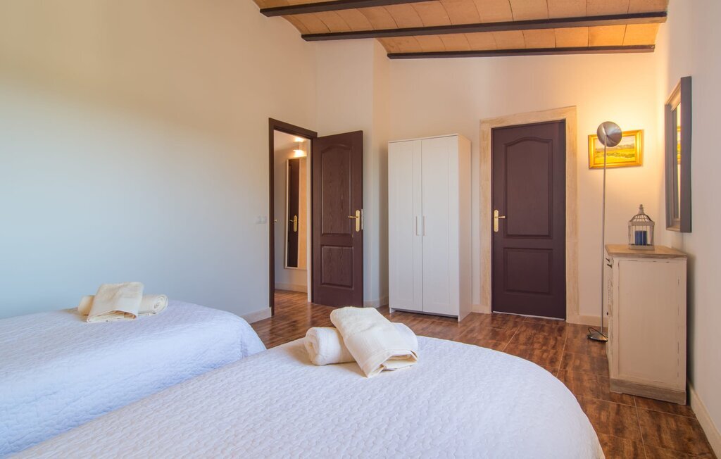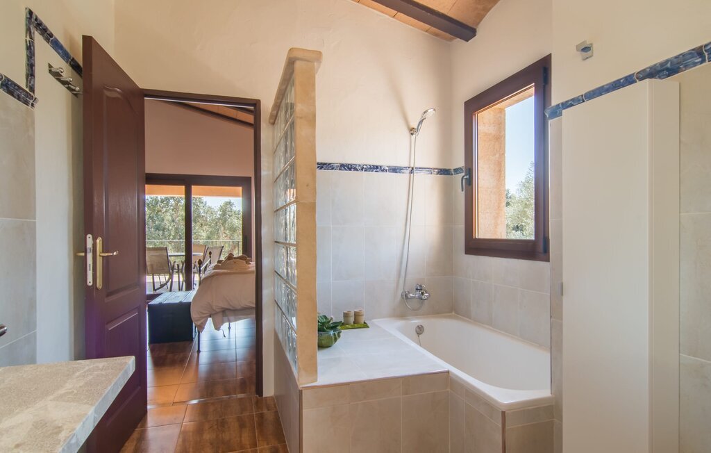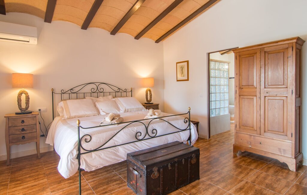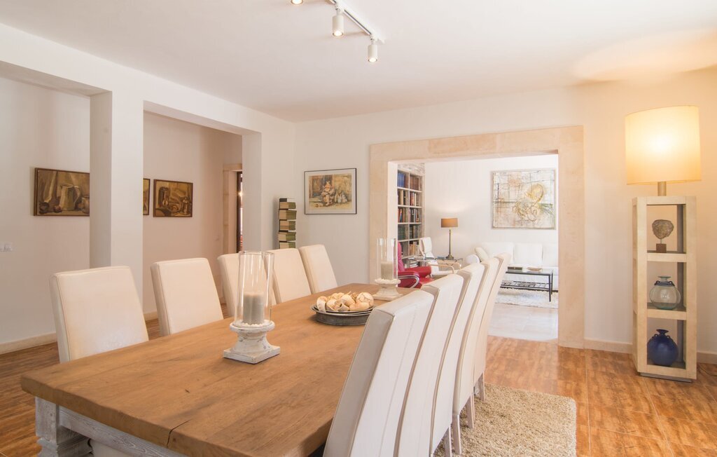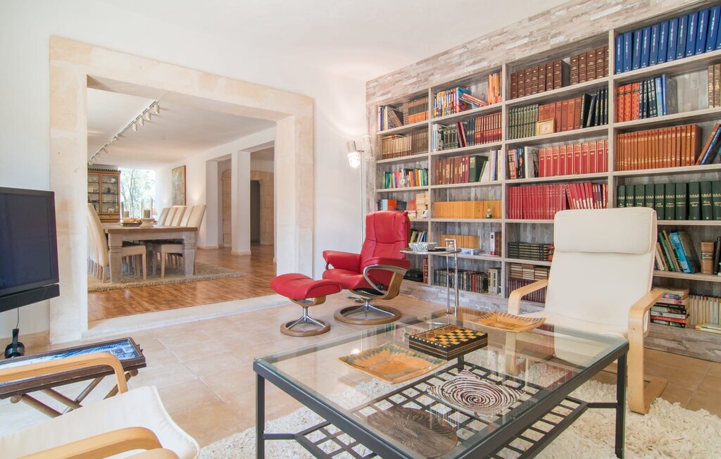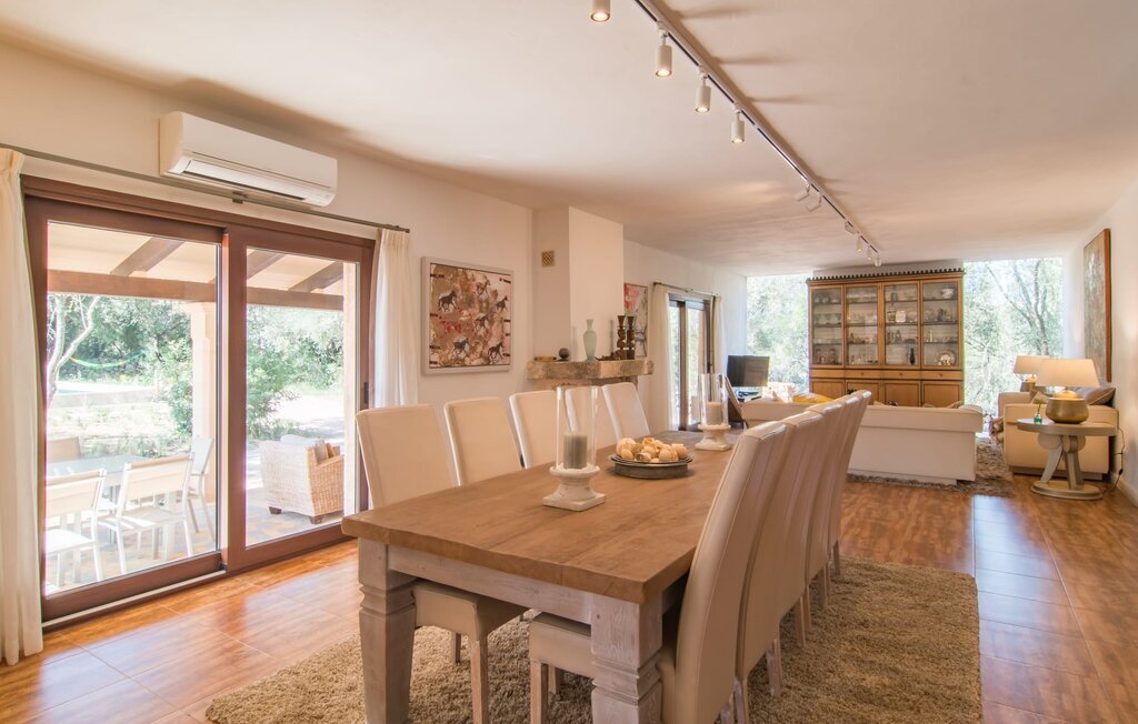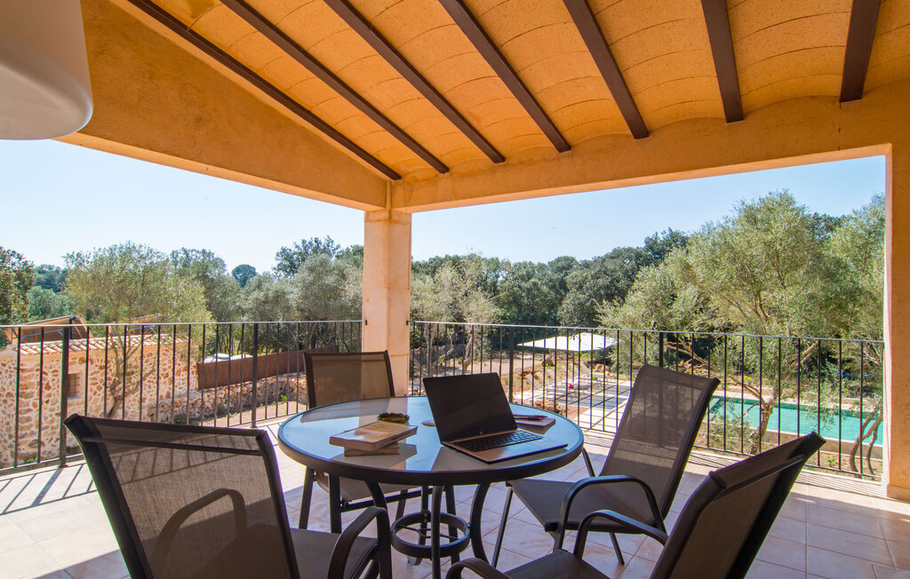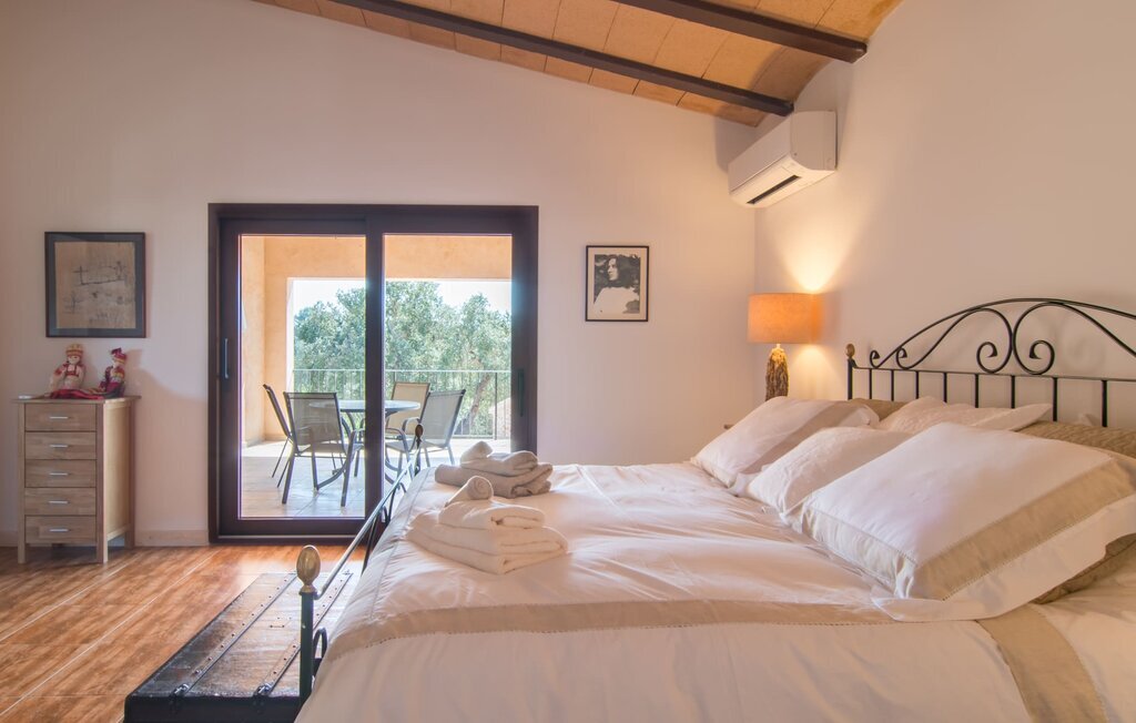 La détente est l'activité principale au programme, de sorte que le design intérieur et extérieur exceptionnellement chic répond toujours à vos besoins. La pièce maîtresse est le salon combiné. Cette pièce à vivre inondée de lumière et dotée de fenêtres allant du sol au plafond se divise en un salon confortable avec un canapé et un coin TV, une salle à manger élégante devant une agréable cheminée et une bibliothèque rustique, également équipée d'une Smart TV. Autant d'endroits préférés à choisir ! La terre cuite, les sols en bois, les plafonds courbés et les jupes soulignent l'atmosphère naturelle de l'intérieur. Vous découvrirez également cette qualité dans la cuisine entièrement équipée avec des meubles en bois de qualité. En même temps, elle ressemble à une ancienne ferme avec sa deuxième cheminée : celle-ci constituait autrefois le centre social, car elle était souvent la seule pièce chauffée. Après de longues journées de liberté, la fatigue se fait sentir à un moment donné Vous pouvez alors vous retirer dans l'une des quatre chambres à coucher climatisées au total, situées pour la plupart à l'étage supérieur (une chambre à coucher avec salle de bain se trouve au rez-de-chaussée). Au premier étage, chacune des chambres chics avec une vue fantastique dispose également d'une salle de bains avec douche ou baignoire de plain-pied. Le grand balcon couvert, qui donne sur le jardin et la piscine, est l'endroit idéal pour se retirer et lire un bon livre. Soyons honnêtes, y a-t-il quelque chose sur lequel vous devriez faire des compromis ? Nous sommes absolument ravis de Can Madis.