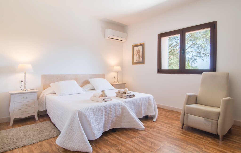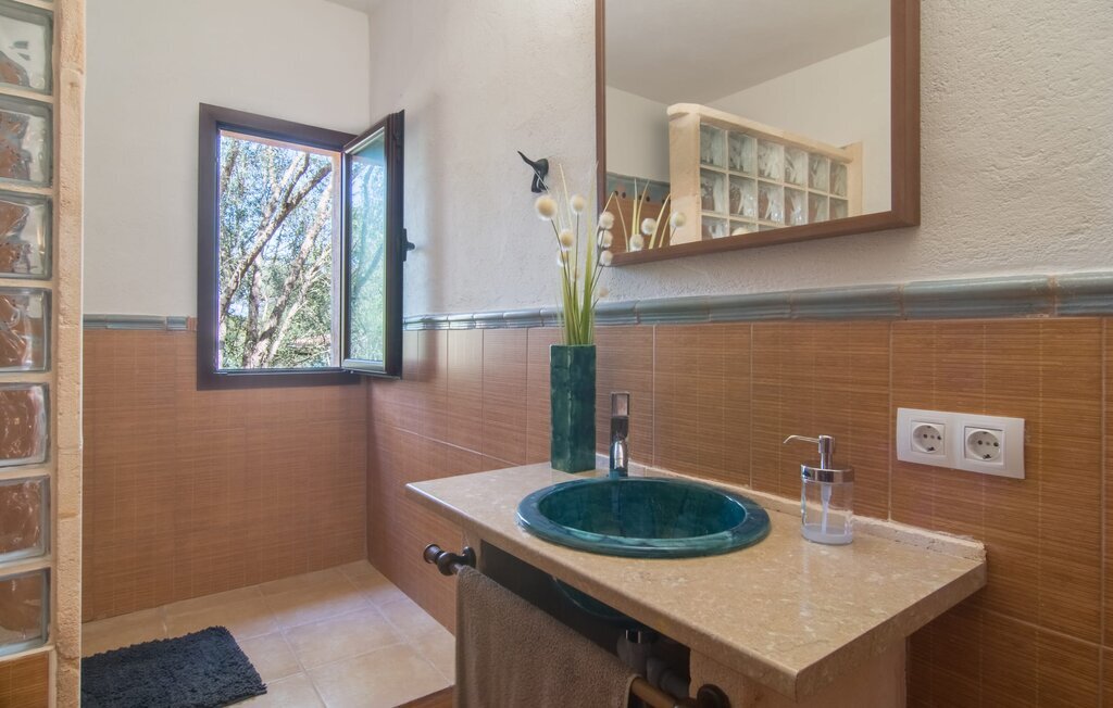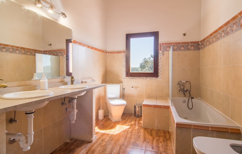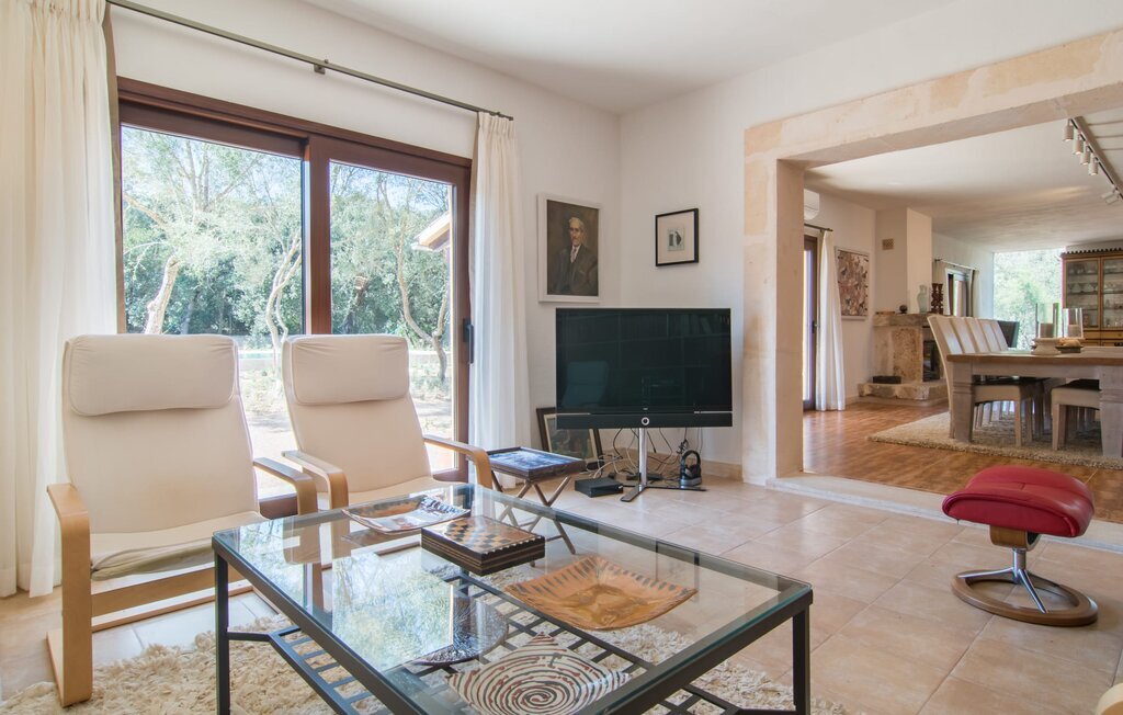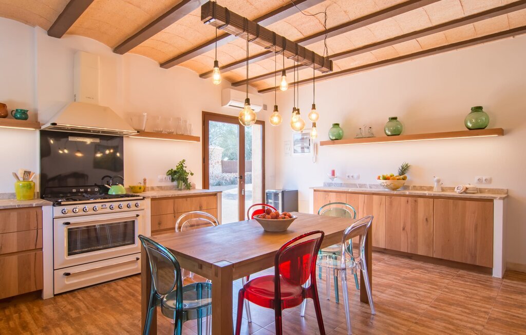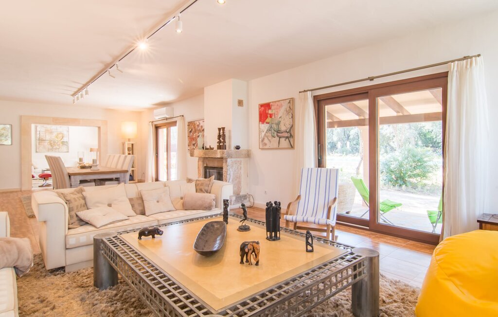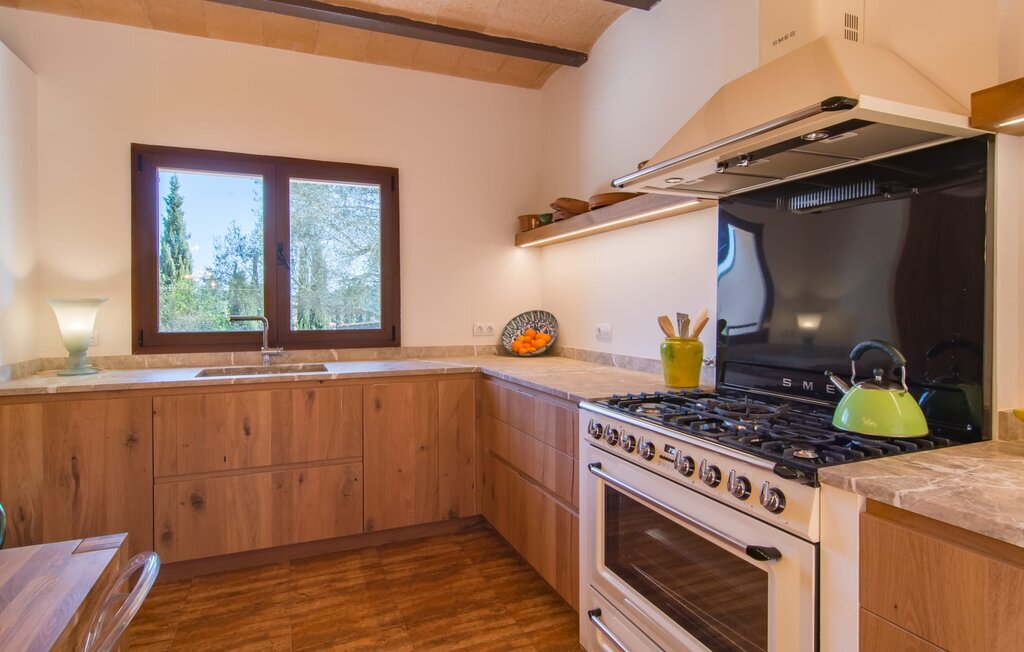 La détente est l'activité principale au programme, de sorte que le design intérieur et extérieur exceptionnellement chic répond toujours à vos besoins. La pièce maîtresse est le salon combiné. Cette pièce à vivre inondée de lumière et dotée de fenêtres allant du sol au plafond se divise en un salon confortable avec un canapé et un coin TV, une salle à manger élégante devant une agréable cheminée et une bibliothèque rustique, également équipée d'une Smart TV. Autant d'endroits préférés à choisir ! La terre cuite, les sols en bois, les plafonds courbés et les jupes soulignent l'atmosphère naturelle de l'intérieur. Vous découvrirez également cette qualité dans la cuisine entièrement équipée avec des meubles en bois de qualité. En même temps, elle ressemble à une ancienne ferme avec sa deuxième cheminée : celle-ci constituait autrefois le centre social, car elle était souvent la seule pièce chauffée. Après de longues journées de liberté, la fatigue se fait sentir à un moment donné Vous pouvez alors vous retirer dans l'une des quatre chambres à coucher climatisées au total, situées pour la plupart à l'étage supérieur (une chambre à coucher avec salle de bain se trouve au rez-de-chaussée). Au premier étage, chacune des chambres chics avec une vue fantastique dispose également d'une salle de bains avec douche ou baignoire de plain-pied. Le grand balcon couvert, qui donne sur le jardin et la piscine, est l'endroit idéal pour se retirer et lire un bon livre. Soyons honnêtes, y a-t-il quelque chose sur lequel vous devriez faire des compromis ? Nous sommes absolument ravis de Can Madis.