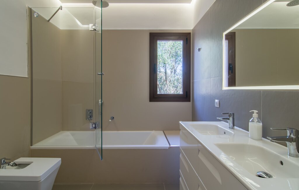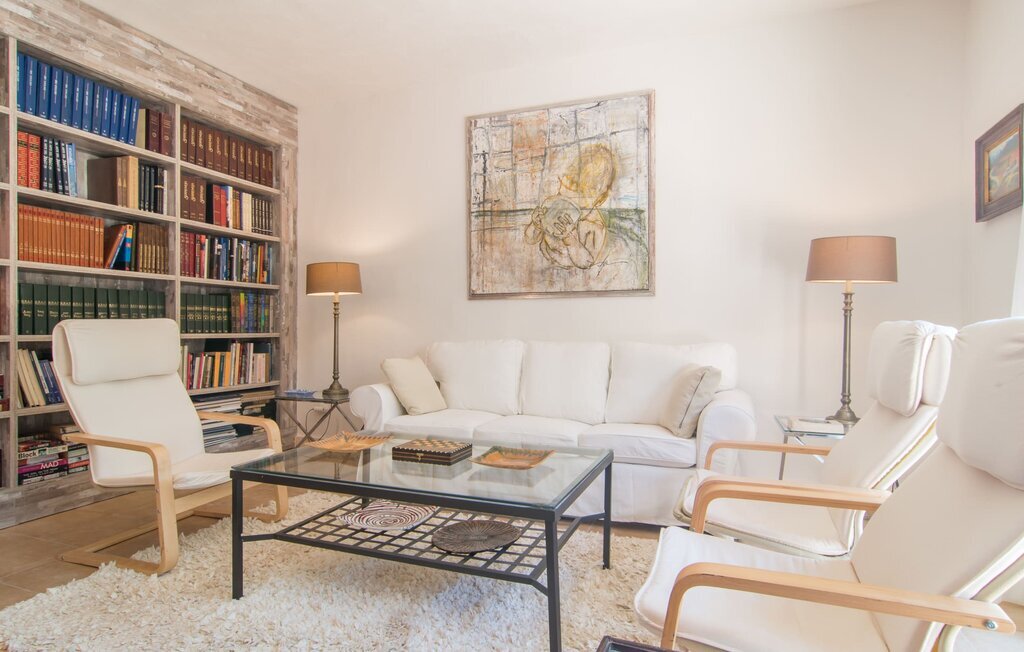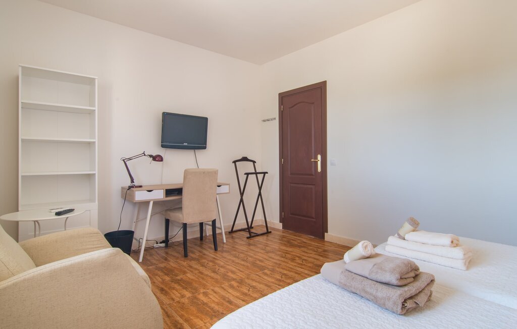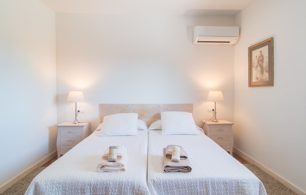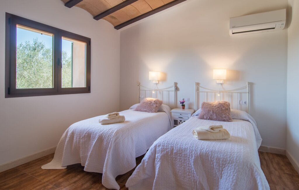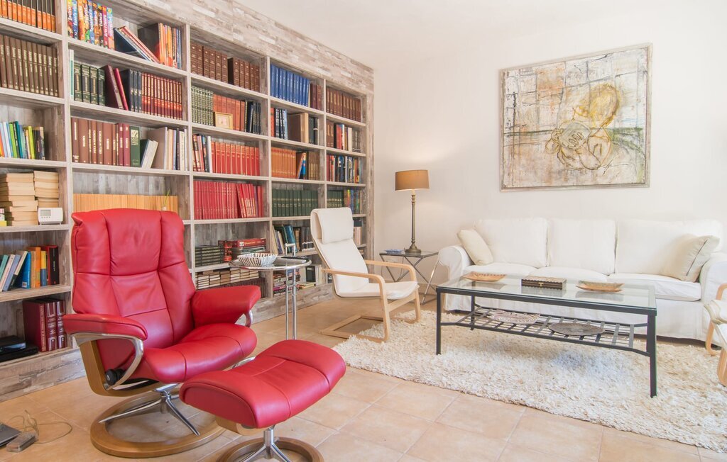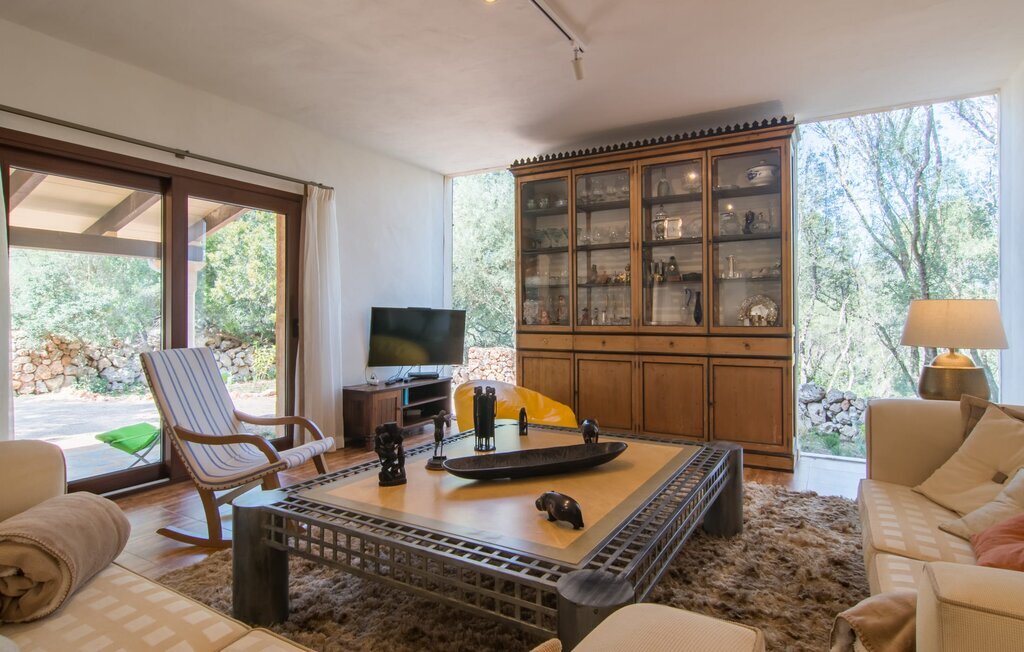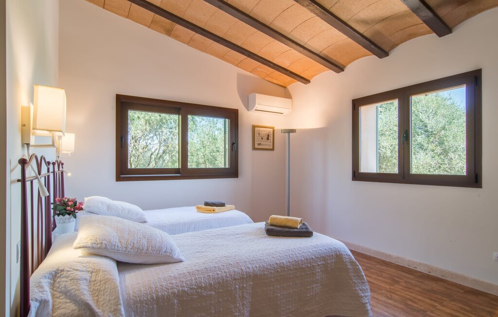 La détente est l'activité principale au programme, de sorte que le design intérieur et extérieur exceptionnellement chic répond toujours à vos besoins. La pièce maîtresse est le salon combiné. Cette pièce à vivre inondée de lumière et dotée de fenêtres allant du sol au plafond se divise en un salon confortable avec un canapé et un coin TV, une salle à manger élégante devant une agréable cheminée et une bibliothèque rustique, également équipée d'une Smart TV. Autant d'endroits préférés à choisir ! La terre cuite, les sols en bois, les plafonds courbés et les jupes soulignent l'atmosphère naturelle de l'intérieur. Vous découvrirez également cette qualité dans la cuisine entièrement équipée avec des meubles en bois de qualité. En même temps, elle ressemble à une ancienne ferme avec sa deuxième cheminée : celle-ci constituait autrefois le centre social, car elle était souvent la seule pièce chauffée. Après de longues journées de liberté, la fatigue se fait sentir à un moment donné Vous pouvez alors vous retirer dans l'une des quatre chambres à coucher climatisées au total, situées pour la plupart à l'étage supérieur (une chambre à coucher avec salle de bain se trouve au rez-de-chaussée). Au premier étage, chacune des chambres chics avec une vue fantastique dispose également d'une salle de bains avec douche ou baignoire de plain-pied. Le grand balcon couvert, qui donne sur le jardin et la piscine, est l'endroit idéal pour se retirer et lire un bon livre. Soyons honnêtes, y a-t-il quelque chose sur lequel vous devriez faire des compromis ? Nous sommes absolument ravis de Can Madis.