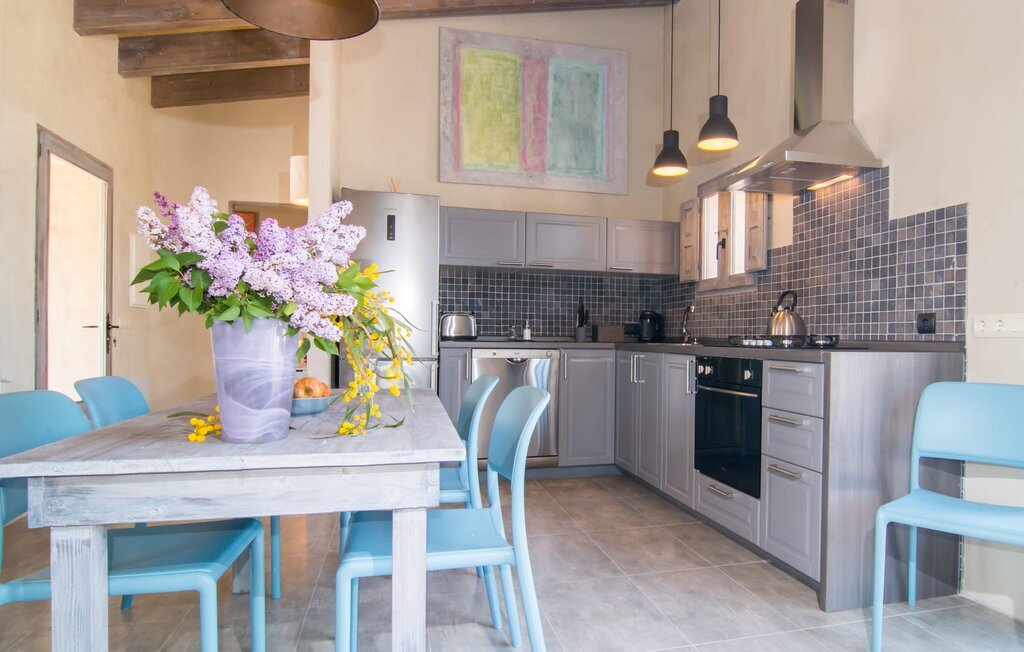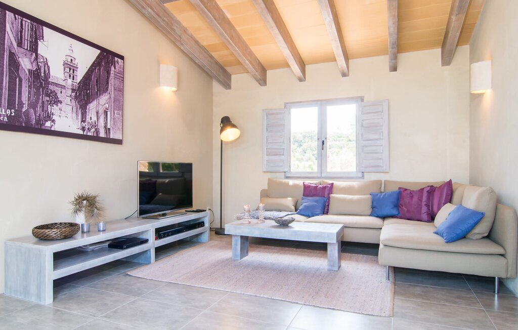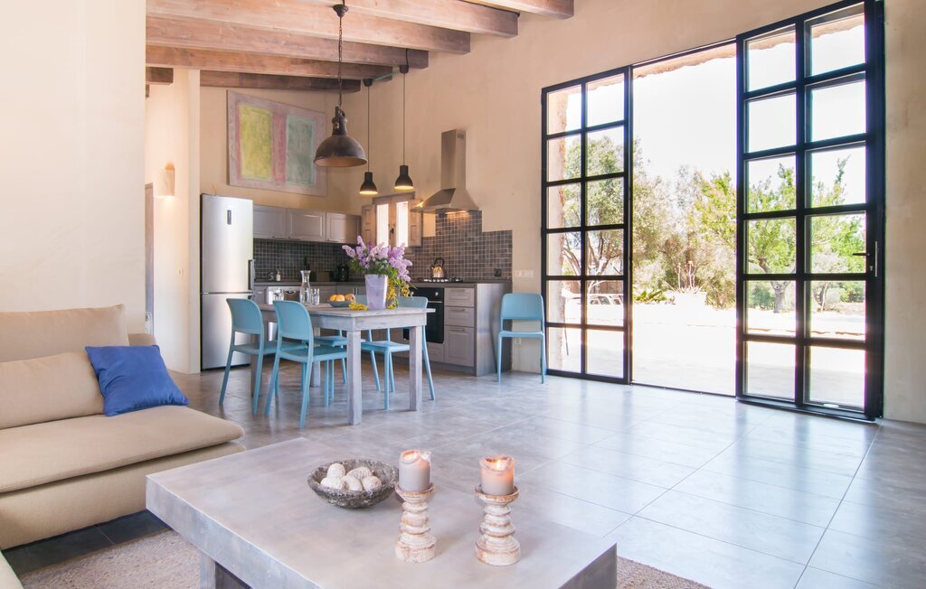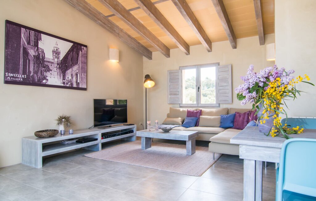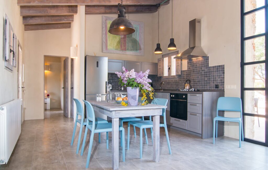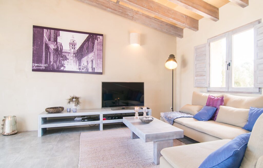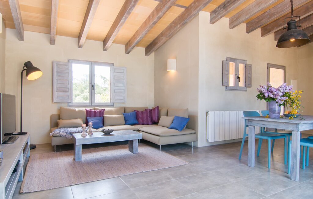 Cette villa moderne en pierre naturelle est située dans un cadre rural magnifique au centre de l'île, entre Costitx et Sencelles. Le samedi, faites moins de 4 km pour vous rendre au marché de Costitx et acheter des produits alimentaires et autres nécessités dans une petite ville traditionnelle au milieu du Plà de Mallorca. Palma est également facilement accessible en voiture, tout comme la spectaculaire plage d'Es Trenc et plusieurs autres plages de sable naturel.