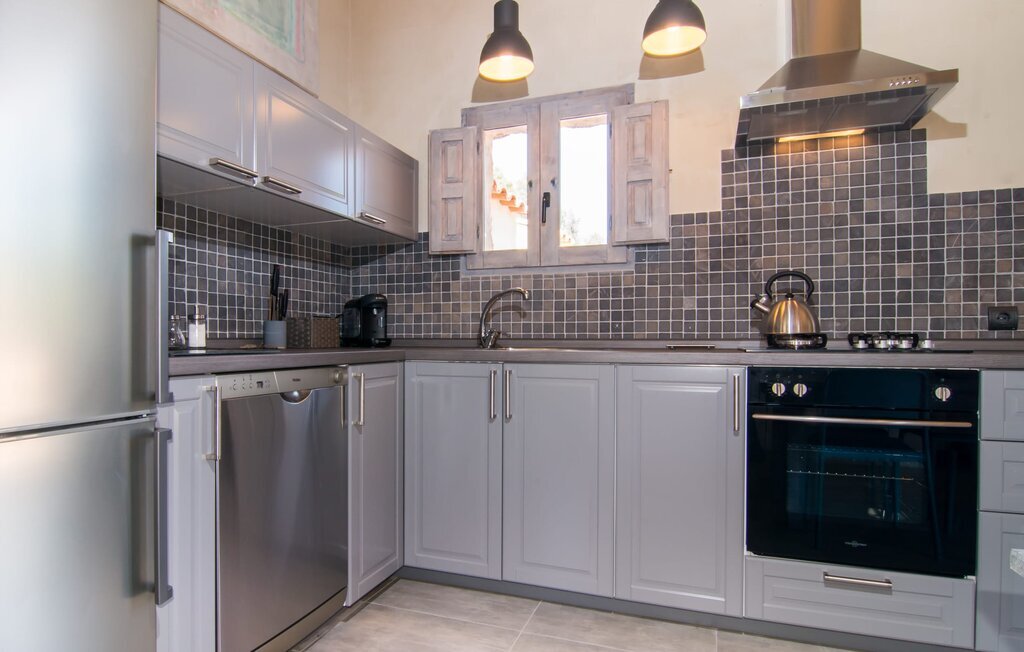 À l'intérieur, l'espace de vie ouvert offre un mélange de style moderne et de confort douillet. Un salon confortable avec une télévision LCD et une cheminée, un coin repas avec une table vintage et des chaises modernes ainsi qu'une cuisine entièrement équipée vous permettront de passer un séjour reposant. La chambre à coucher spacieuse dispose d'un lit double de 1,60 m de large sur 2 m de long, d'une grande armoire et d'une salle de bain privée avec douche à l'italienne. Une cour intérieure isolée avec accès direct à la piscine contribue au charme de la villa. "Cascada" est idéale pour les adultes et offre une retraite paisible tout au long de l'année. Il y a quatre autres logements sur la propriété, qui peuvent tous être réservés via notre site web.