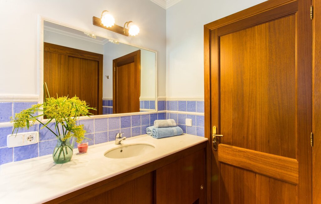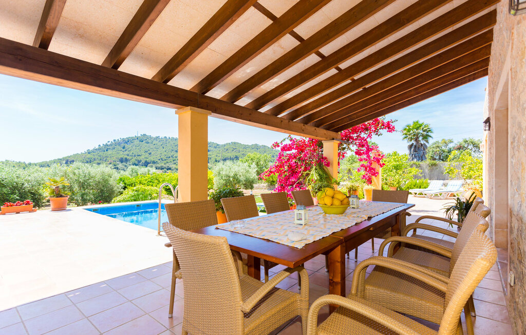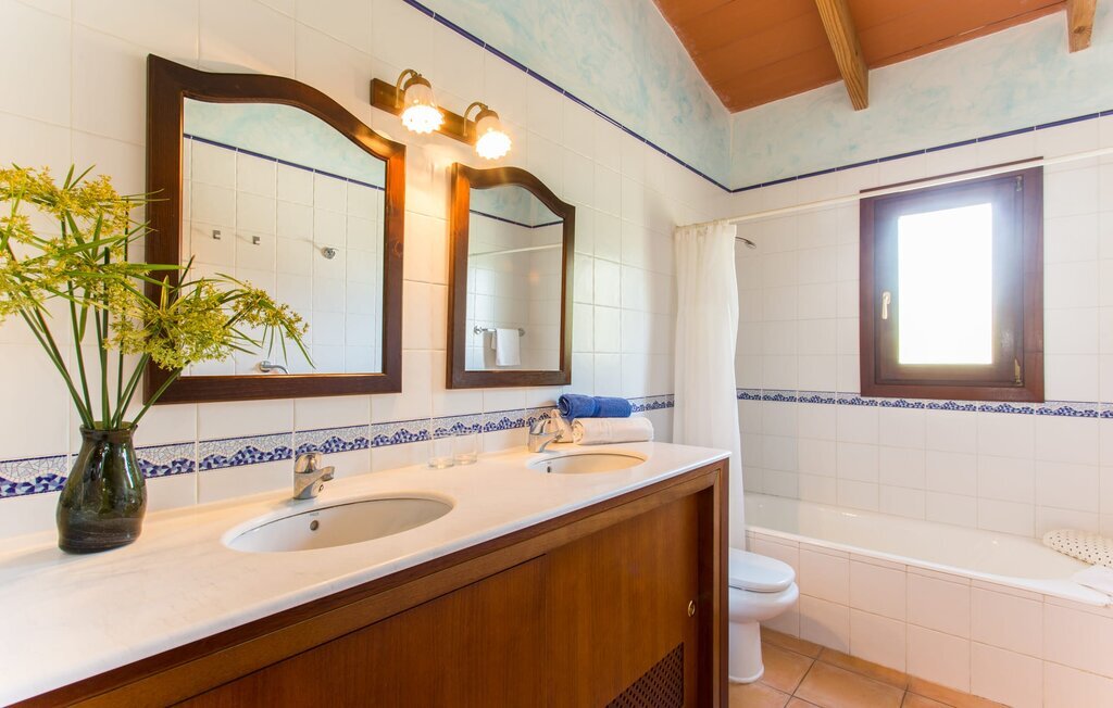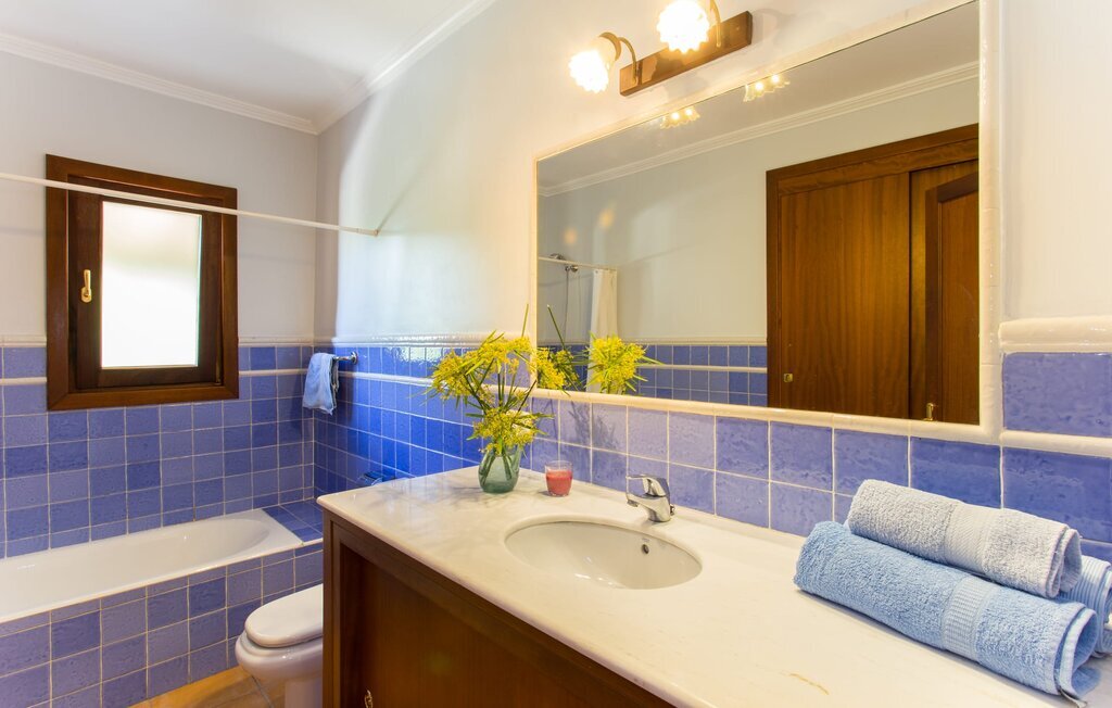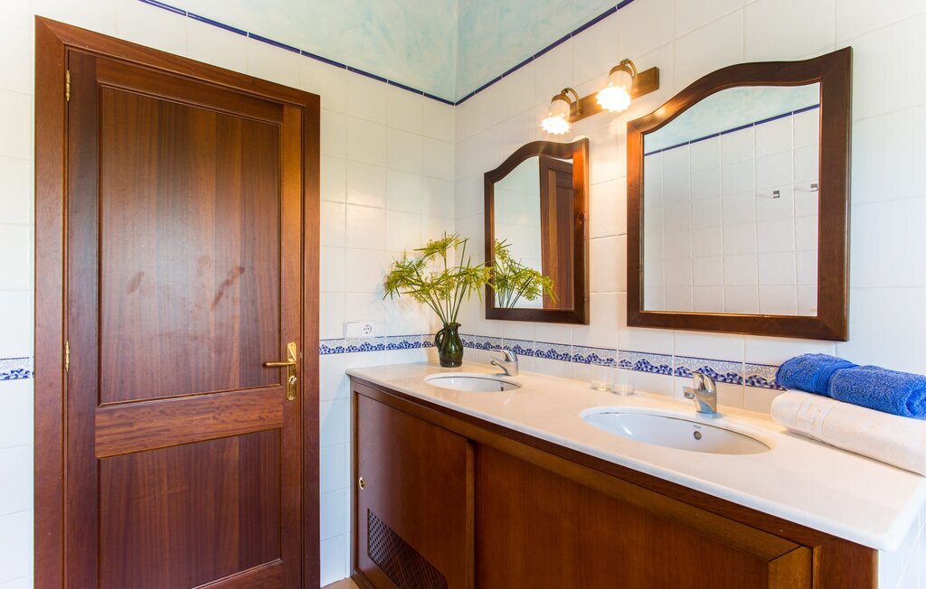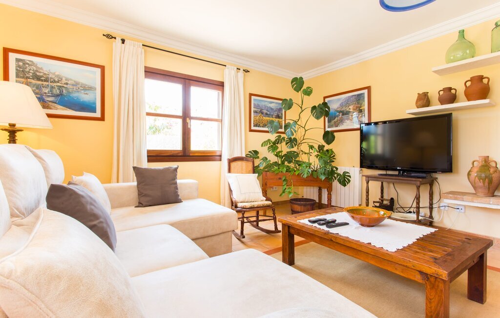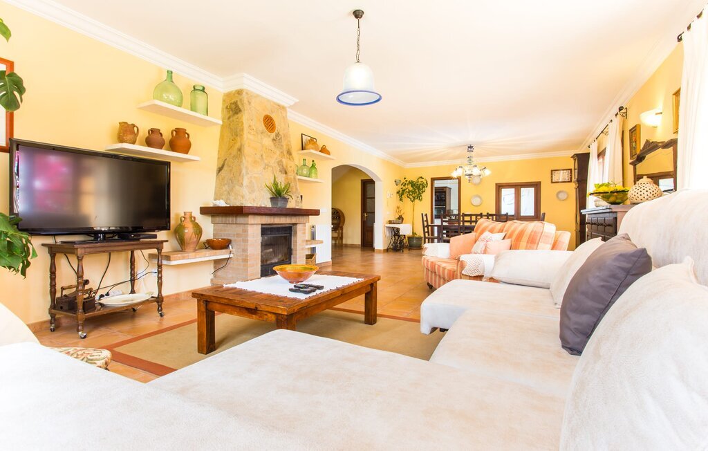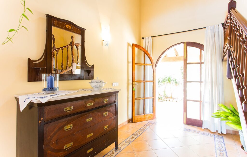 Si vous aimez marcher pieds nus sur le carrelage frais pendant les chaudes journées d'été, il y a plus qu'assez de place sur deux étages ; l'escalier carrelé qui mène aux quatre chambres et aux deux salles de bains à l'étage est un bijou pas à pas. Tolo a été en partie aménagée avec des meubles anciens en bois dans le style classique majorquin, une valeur solide combinée à des couleurs claires et chaudes. La lumière qui tombe à travers de nombreuses fenêtres confère en outre à la pièce une certaine apesanteur. Dans le grand salon avec télévision XXL et cheminée, vous pouvez vous enfoncer dans les coussins moelleux ou vous asseoir ensemble à la longue table à manger devant la cuisine, qui est avant tout une cuisine de travail. Une autre chambre d'amis avec salle de bain complète le rez-de-chaussée et l'une des chambres doubles à l'étage peut également être utilisée comme chambre triple si nécessaire. Les aspects pratiques sont au premier plan ; la villa est un lieu de vie et de bien-être et ne doit pas être une pièce d'exposition ou un objet de catalogue. Si vous souhaitez vous déplacer librement dans et autour de la maison ainsi que le long de la côte est très animée, la Villa Tolo doit absolument faire partie de votre sélection !