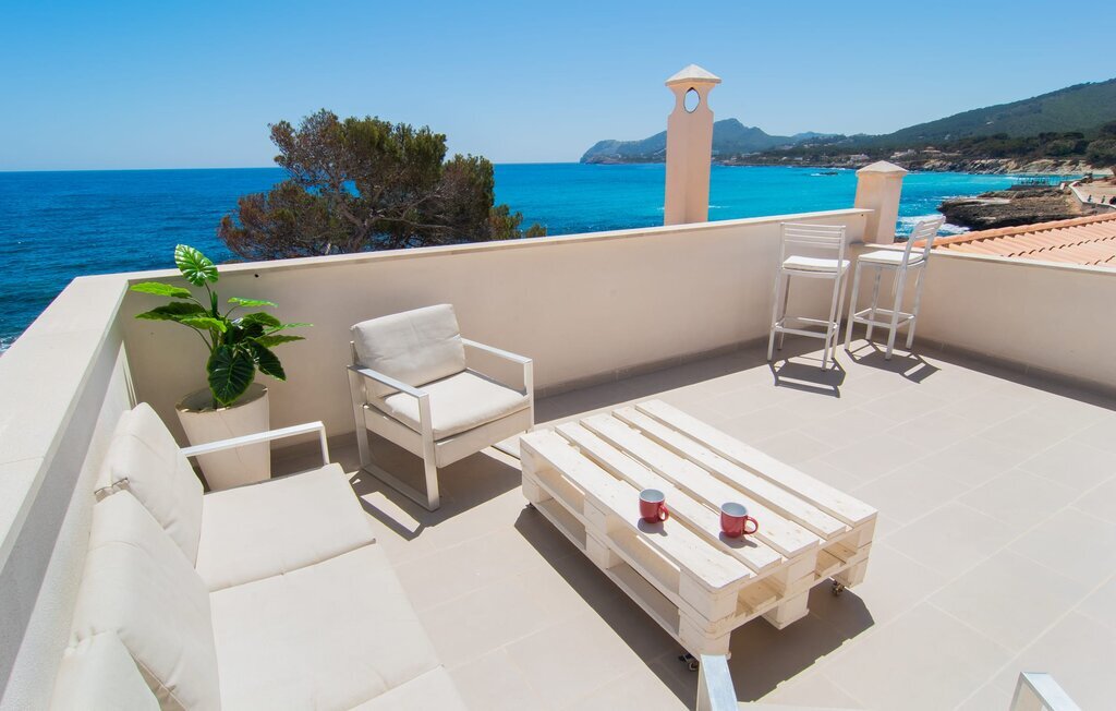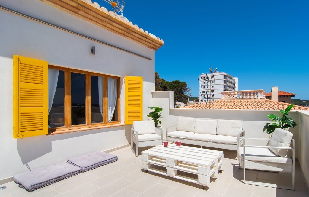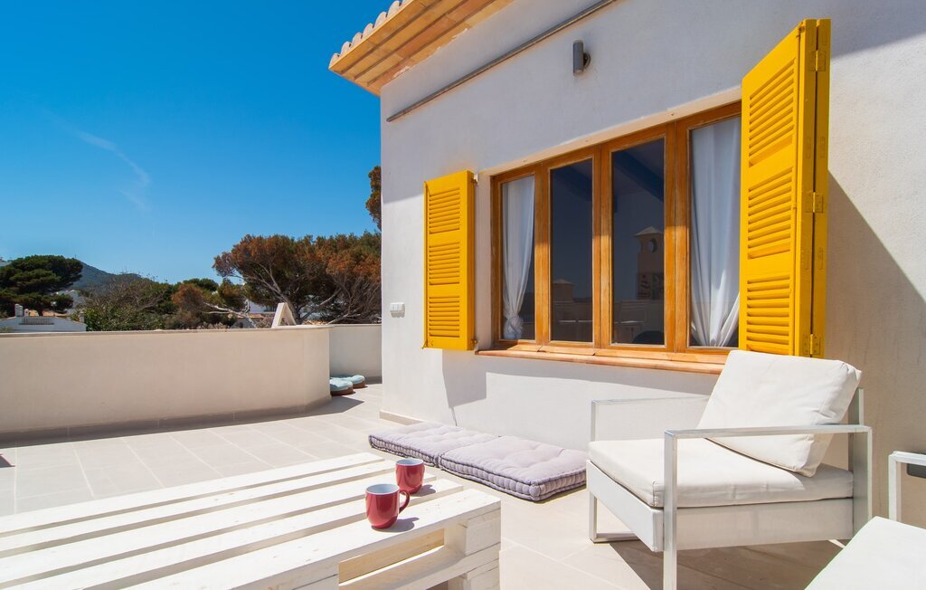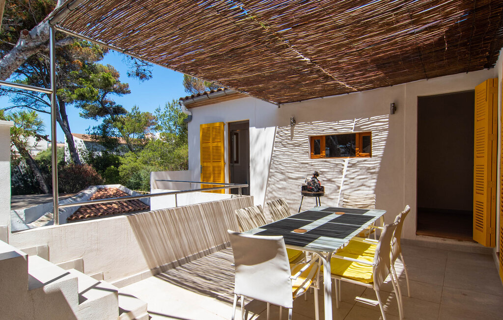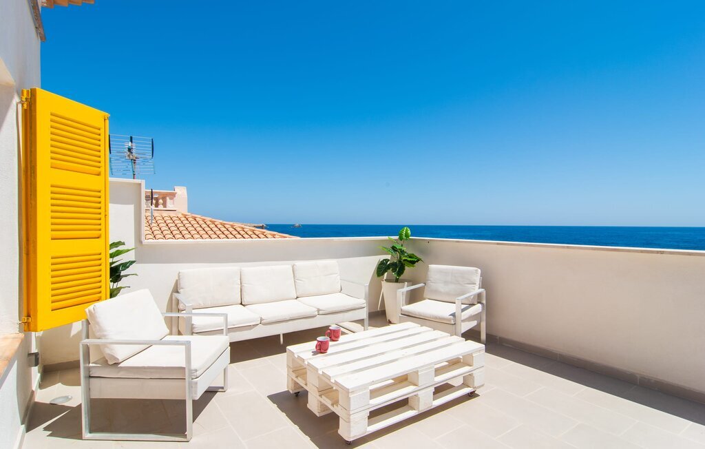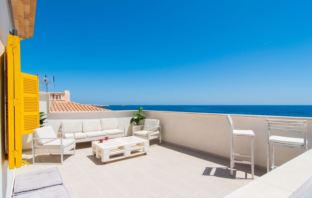 La charmante finca "Sa Punta Dúplex" est parfaitement située sur le front de mer de Cala Ratjada, avec sa façade d'un blanc éclatant et ses volets jaune soleil qui évoquent le charme sobre d'une maison de pêcheur traditionnelle.