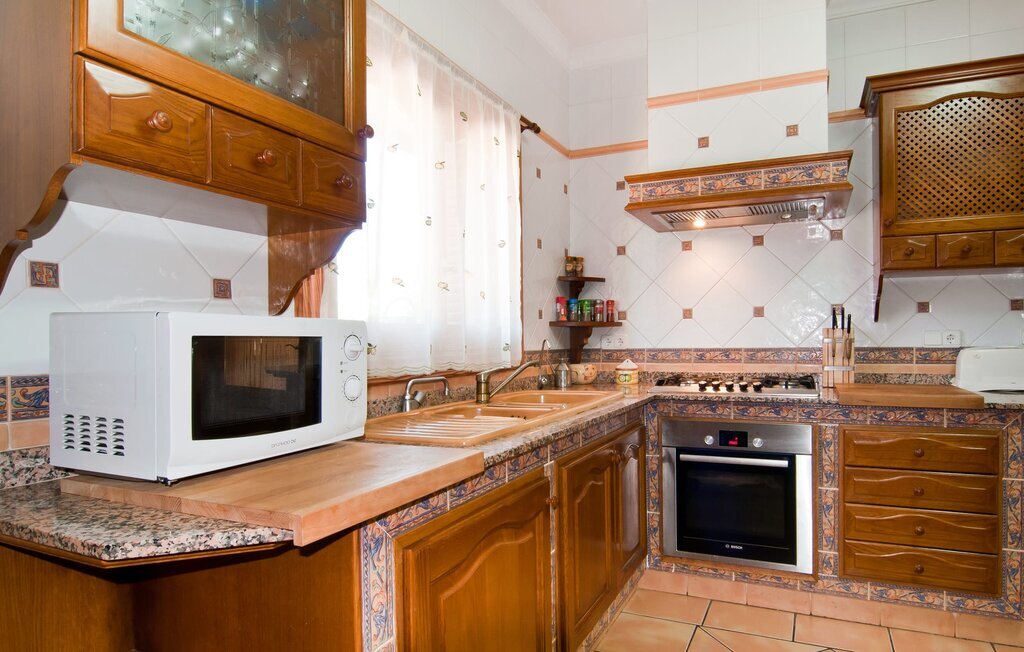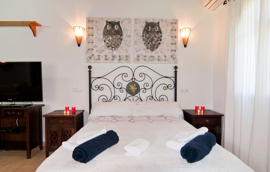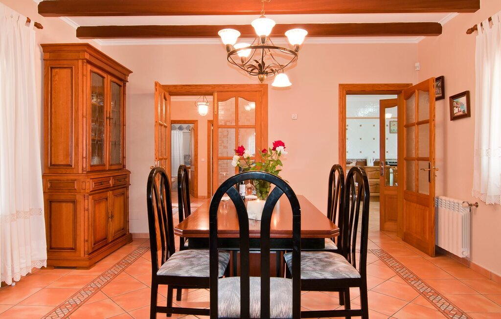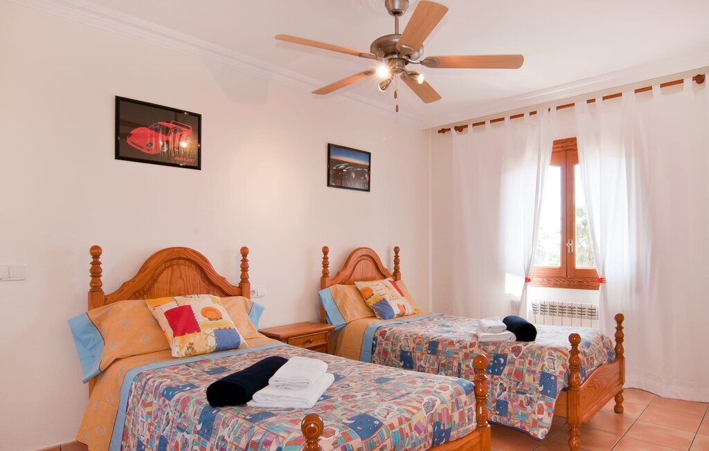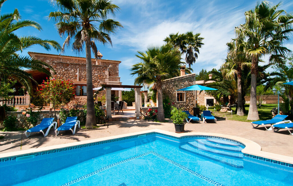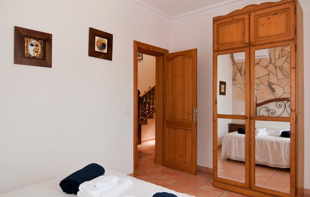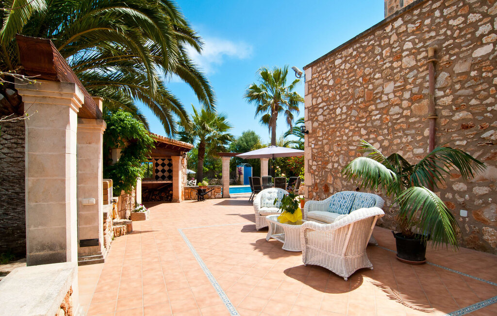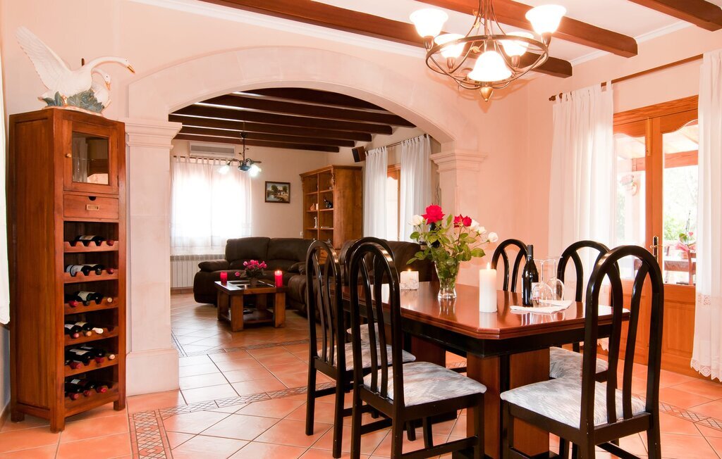 La Finca Can Lopez Vara se compose d'une maison principale et d'un appartement qui a été achevé au printemps 2014. En entrant dans la maison principale, on reconnaît immédiatement l'opulence caractéristique et on peut donc passer du temps à l'intérieur dans un cadre magnifique. Des plafonds à poutres apparentes, des carreaux de terre cuite à motifs et des murs d'une clarté éclatante encadrent joliment cet intérieur. Dans le salon/salle à manger, séparé uniquement par un large passage en arc de cercle, vous pouvez vous détendre dans le coin canapé d'un côté et peut-être profiter d'un bon livre ou d'un film divertissant, car la télévision y est confortablement installée. Lors des soirées plus fraîches, la cheminée peut apporter une chaleur agréable. De plus, un petit bar est installé dans le coin de la pièce. Dans la salle à manger, vous pouvez manger ensemble de manière cultivée et faire tous les préparatifs auparavant dans la cuisine située juste à côté. La cuisine est spacieuse et offre tout ce dont vous avez besoin au quotidien, ainsi que de nombreux espaces de rangement. Parmi les appareils, on trouve une cuisinière, un four, un réfrigérateur/congélateur, un grille-pain et un lave-vaisselle, ainsi qu'une bouilloire et une cafetière à filtre. Il y a même de la place pour une autre petite table à manger, où vous pourrez déguster un petit snack avec un petit groupe. Dans les cinq chambres à coucher aménagées avec amour et de manière très individuelle, chacun trouvera à coup sûr sa place idéale pour un sommeil réparateur. Les salles de bains sont fraîches et lumineuses et sont équipées de meubles de qualité. Le joli appartement dispose d'un lit double et d'un canapé-lit pour une personne supplémentaire. Le salon est très ouvert. Deux des chambres sont climatisées, les autres disposent de ventilateurs au plafond. En outre, l'annexe et la salle à manger sont également climatisées.