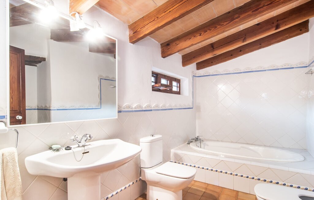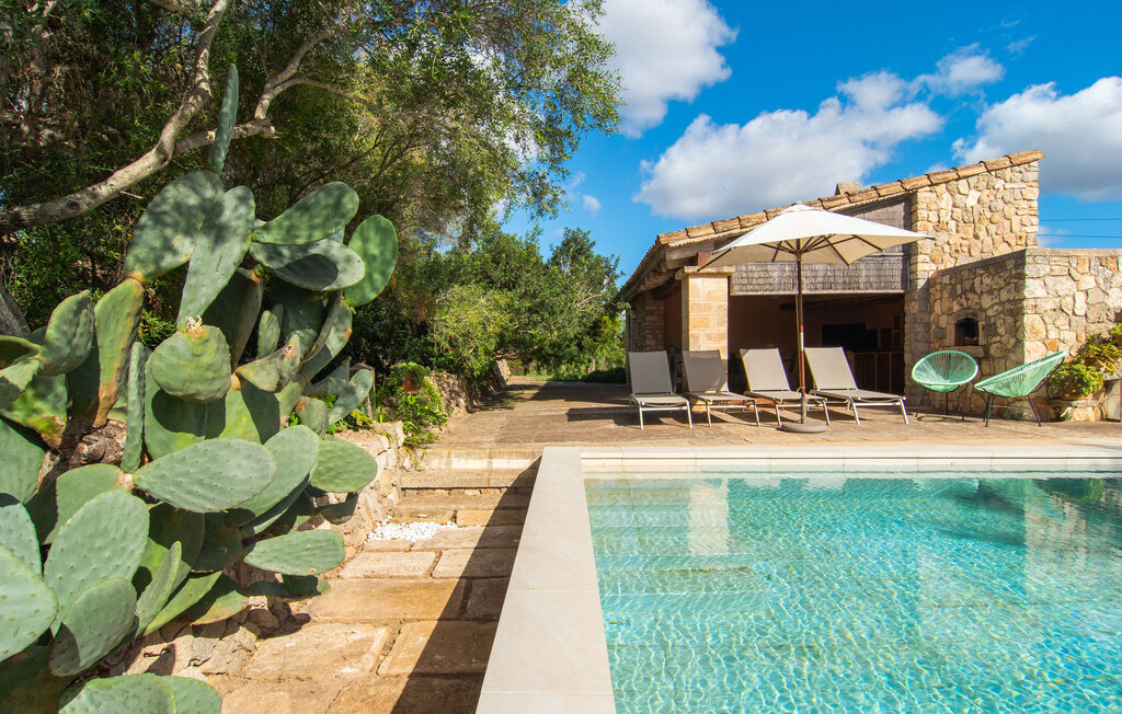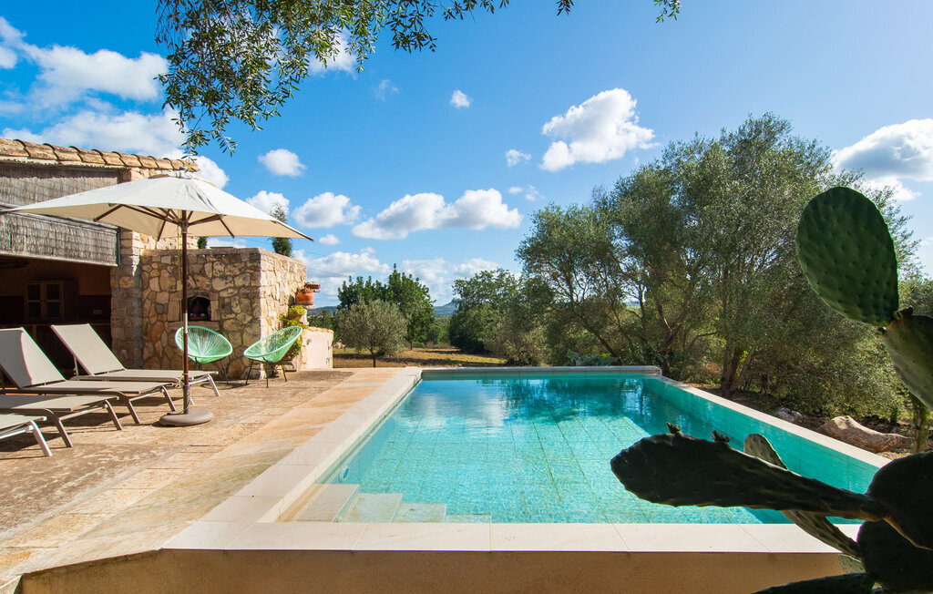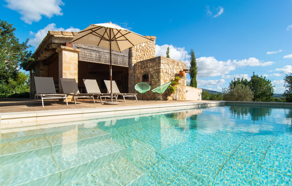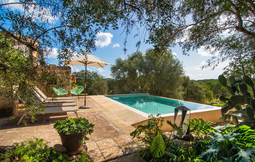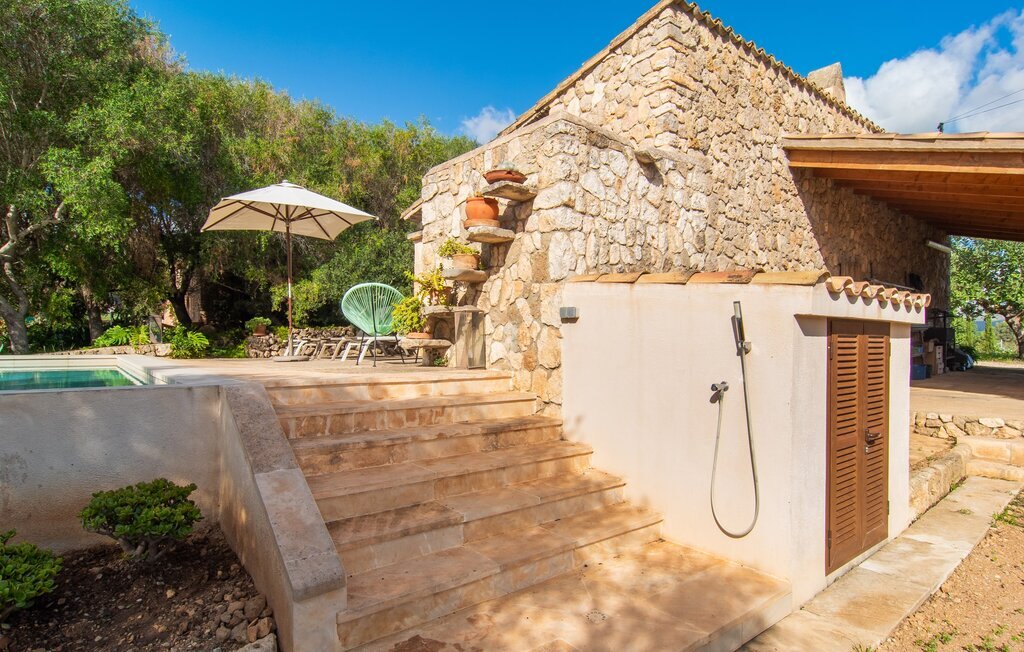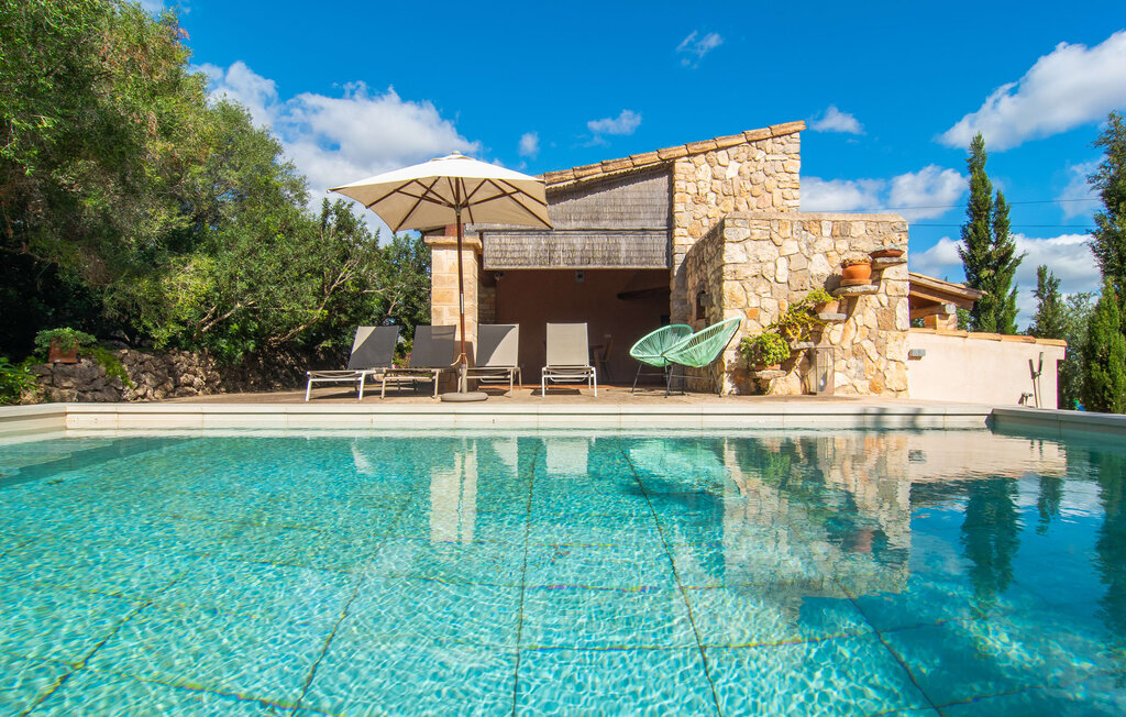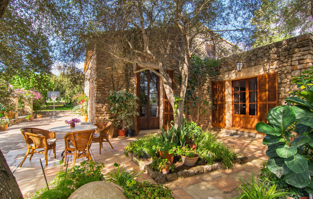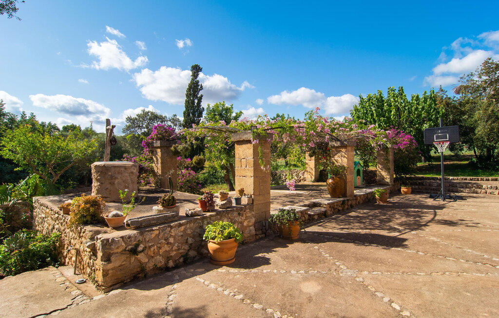 La ferme historique Son Poca Palla est un exemple parfait de vacances à la majorquine. Les vieux murs en moellons ont été conservés avec amour. Elle est entourée d'un jardin intact rempli d'arbres fruitiers et d'oliviers majestueux et de la magie des plantes à fleurs méditerranéennes. Les enfants trouveront suffisamment de possibilités de jeux sur le terrain (il y a aussi un panier de basket). Les adultes peuvent se détendre en toute tranquillité et profiter de leurs vacances dans une finca traditionnelle de Majorque. La superbe piscine d'eau salée à débordement permet de profiter d'une vue magnifique sur le jardin et le paysage. Vous pourrez ensuite prendre un bain de soleil dans de confortables chaises longues. Une douche extérieure et des toilettes sont disponibles. Outre d'autres places assises extérieures dans la verdure, la cuisine extérieure couverte avec barbecue, possibilité de cuisiner et coin repas confortable est un autre point fort de cette maison de vacances de première classe proche de la nature.