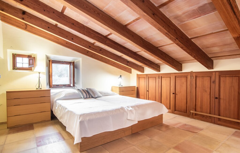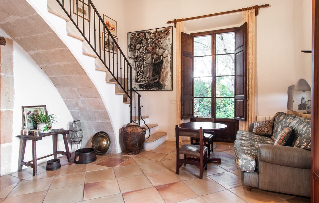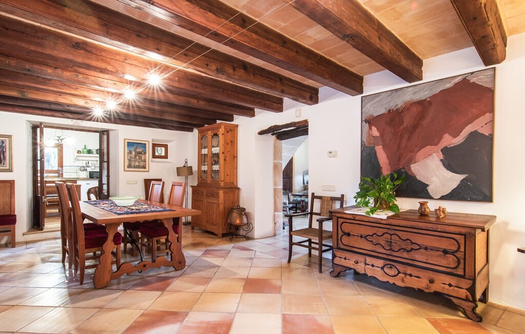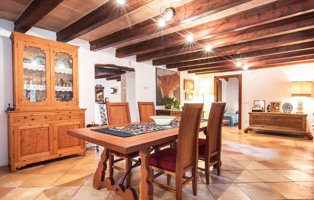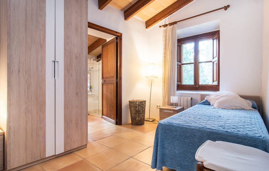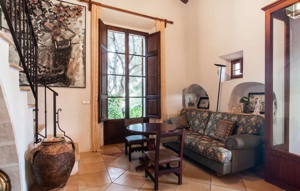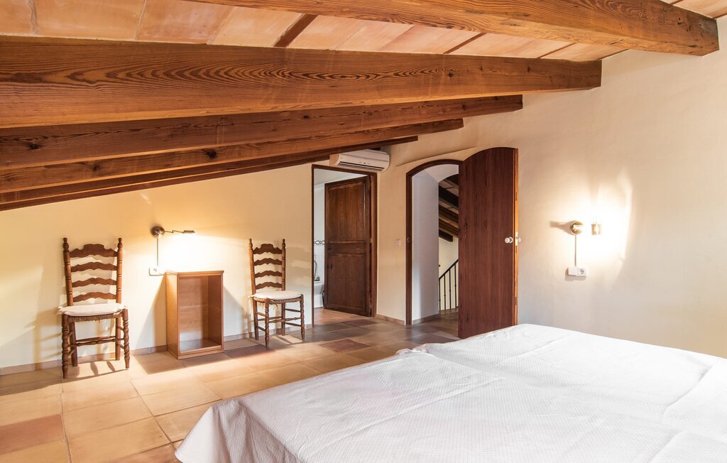 L'aménagement intérieur allie le charme rustique de Majorque et le confort d'habitation moderne. Avec ses poutres en bois massives et ses pièces légèrement enchevêtrées, vous profitez d'un sentiment de vacances confortable dans une atmosphère accueillante. L'aménagement se compose de meubles anciens qui ont été magnifiquement combinés avec des accessoires d'intérieur modernes. Il en va de même pour le grand salon avec cheminée et la salle à manger. Particulièrement rustique, le coin cheminée avec banc en briques à côté de la cuisine entièrement équipée est un endroit merveilleux pour se détendre pendant la saison plus fraîche. À l'étage supérieur, à côté de la troisième chambre, vous trouverez l'espace de travail parfait et pourrez être particulièrement actif dans le bureau à domicile. Toutes les chambres sont climatisées et équipées de deux lits simples ou d'un lit double. Un luxe particulier de cette charmante maison de vacances : chaque chambre à coucher dispose de sa propre salle de bain. Ainsi, plus rien ne s'oppose à des vacances de rêve avec jusqu'à six personnes absolument adaptées aux familles. Bienvenue à Son Poca Palla. L'ancienne ferme Son Poca Palla séduit par son jardin rustique avec une superbe cuisine extérieure, une piscine à débordement et un aménagement intérieur moderne. La propriété, absolument calme, se trouve à l'est de Majorque à environ cinq minutes en voiture du village bien desservi de Sant Llorenç, où vous pourrez faire vos courses. Les belles plages de l'est, comme Cala Petita ou Cala Varques, sont à environ 15-20 minutes en voiture.