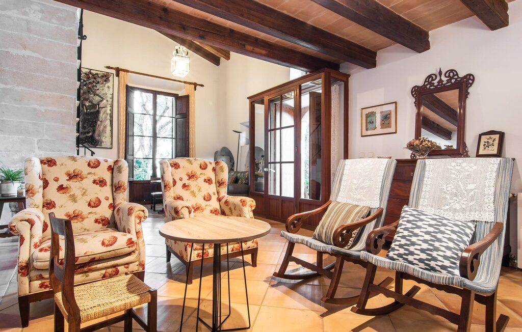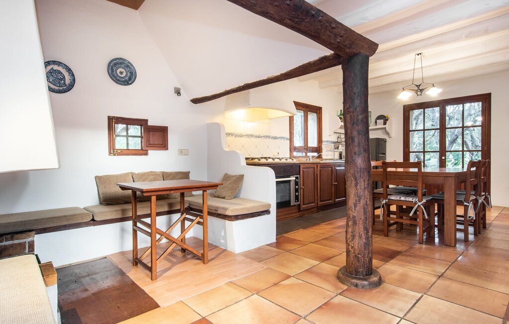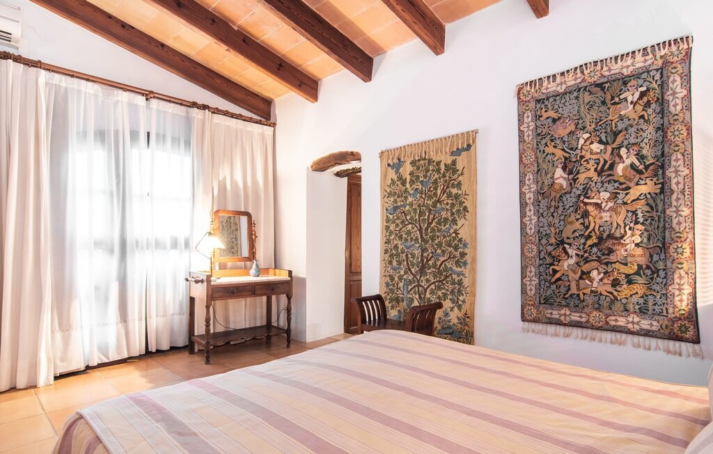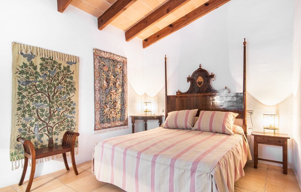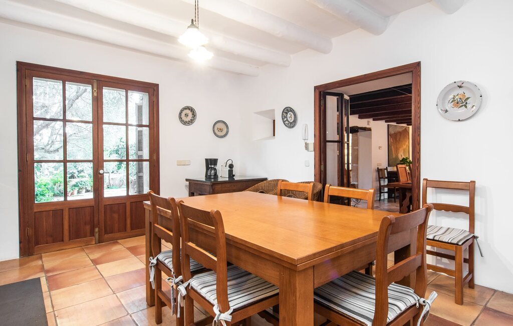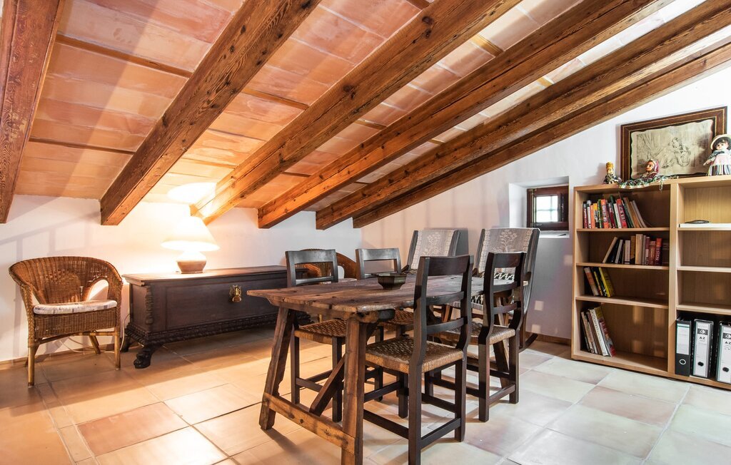 L'aménagement intérieur allie le charme rustique de Majorque et le confort d'habitation moderne. Avec ses poutres en bois massives et ses pièces légèrement enchevêtrées, vous profitez d'un sentiment de vacances confortable dans une atmosphère accueillante. L'aménagement se compose de meubles anciens qui ont été magnifiquement combinés avec des accessoires d'intérieur modernes. Il en va de même pour le grand salon avec cheminée et la salle à manger. Particulièrement rustique, le coin cheminée avec banc en briques à côté de la cuisine entièrement équipée est un endroit merveilleux pour se détendre pendant la saison plus fraîche. À l'étage supérieur, à côté de la troisième chambre, vous trouverez l'espace de travail parfait et pourrez être particulièrement actif dans le bureau à domicile. Toutes les chambres sont climatisées et équipées de deux lits simples ou d'un lit double. Un luxe particulier de cette charmante maison de vacances : chaque chambre à coucher dispose de sa propre salle de bain. Ainsi, plus rien ne s'oppose à des vacances de rêve avec jusqu'à six personnes absolument adaptées aux familles. Bienvenue à Son Poca Palla. L'ancienne ferme Son Poca Palla séduit par son jardin rustique avec une superbe cuisine extérieure, une piscine à débordement et un aménagement intérieur moderne. La propriété, absolument calme, se trouve à l'est de Majorque à environ cinq minutes en voiture du village bien desservi de Sant Llorenç, où vous pourrez faire vos courses. Les belles plages de l'est, comme Cala Petita ou Cala Varques, sont à environ 15-20 minutes en voiture.