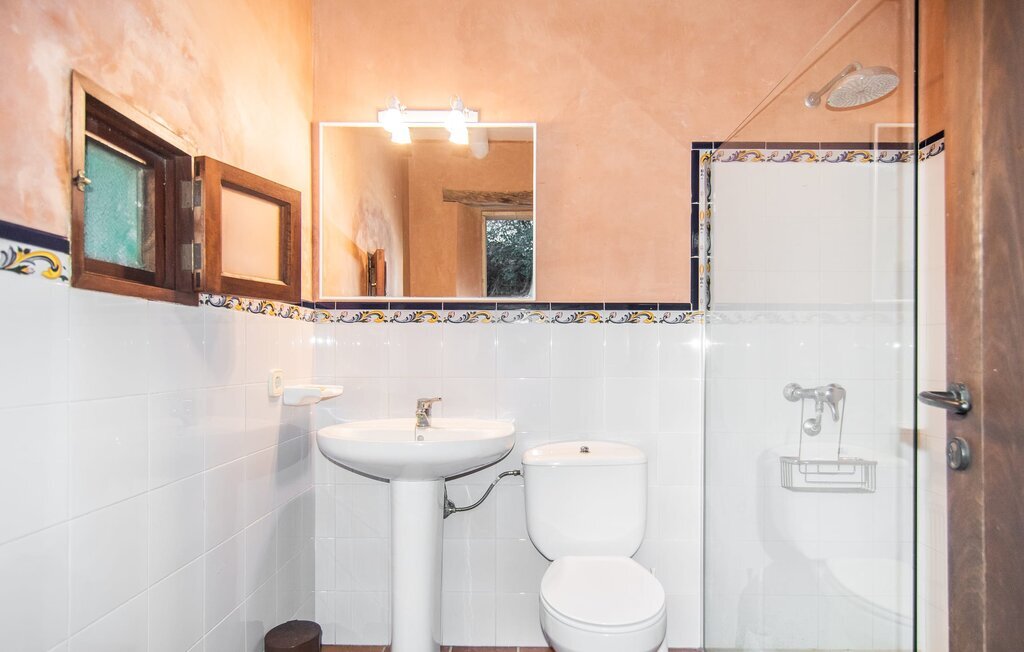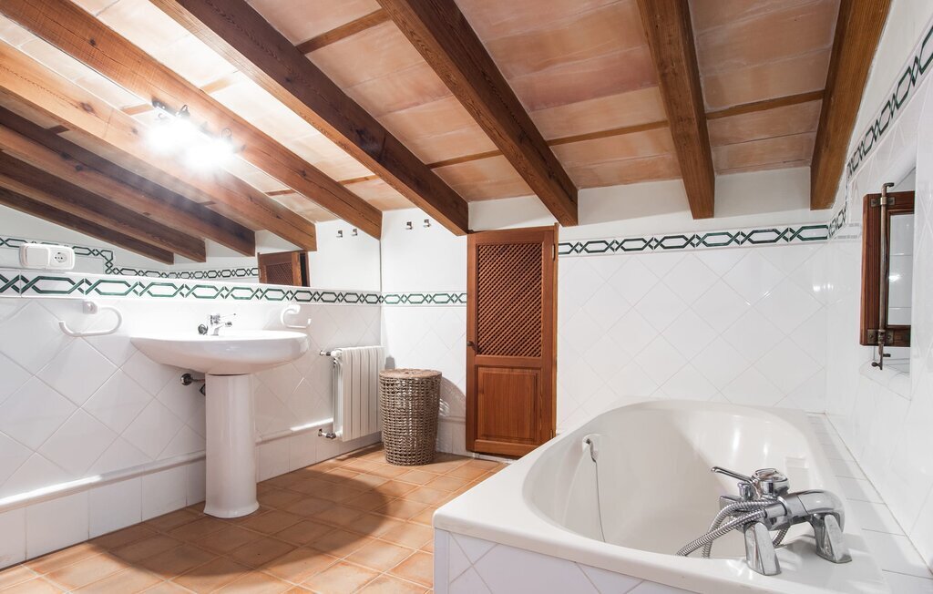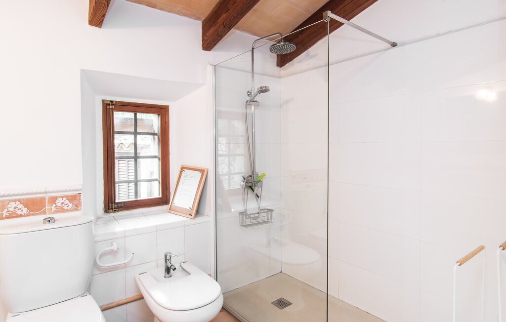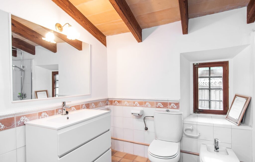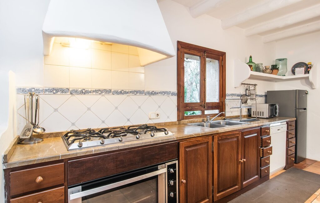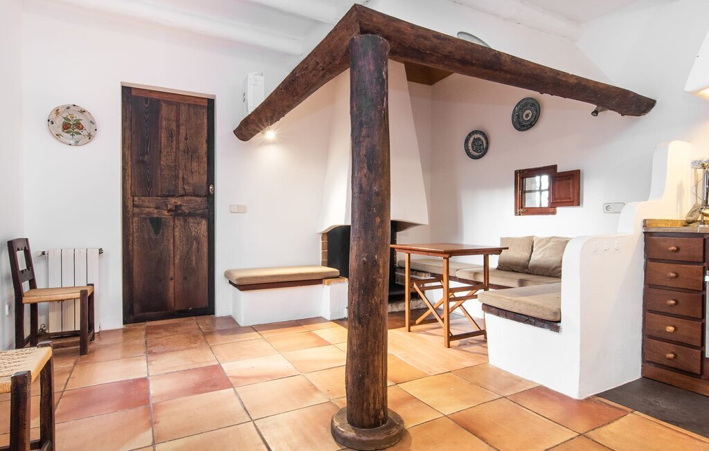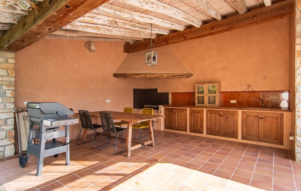 L'aménagement intérieur allie le charme rustique de Majorque et le confort d'habitation moderne. Avec ses poutres en bois massives et ses pièces légèrement enchevêtrées, vous profitez d'un sentiment de vacances confortable dans une atmosphère accueillante. L'aménagement se compose de meubles anciens qui ont été magnifiquement combinés avec des accessoires d'intérieur modernes. Il en va de même pour le grand salon avec cheminée et la salle à manger. Particulièrement rustique, le coin cheminée avec banc en briques à côté de la cuisine entièrement équipée est un endroit merveilleux pour se détendre pendant la saison plus fraîche. À l'étage supérieur, à côté de la troisième chambre, vous trouverez l'espace de travail parfait et pourrez être particulièrement actif dans le bureau à domicile. Toutes les chambres sont climatisées et équipées de deux lits simples ou d'un lit double. Un luxe particulier de cette charmante maison de vacances : chaque chambre à coucher dispose de sa propre salle de bain. Ainsi, plus rien ne s'oppose à des vacances de rêve avec jusqu'à six personnes absolument adaptées aux familles. Bienvenue à Son Poca Palla. L'ancienne ferme Son Poca Palla séduit par son jardin rustique avec une superbe cuisine extérieure, une piscine à débordement et un aménagement intérieur moderne. La propriété, absolument calme, se trouve à l'est de Majorque à environ cinq minutes en voiture du village bien desservi de Sant Llorenç, où vous pourrez faire vos courses. Les belles plages de l'est, comme Cala Petita ou Cala Varques, sont à environ 15-20 minutes en voiture.