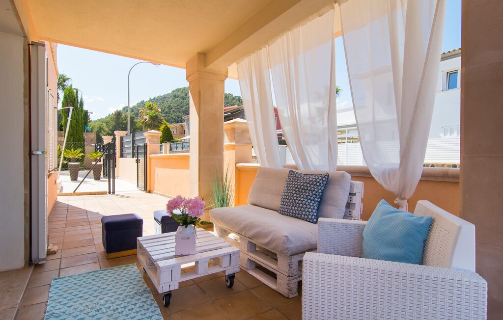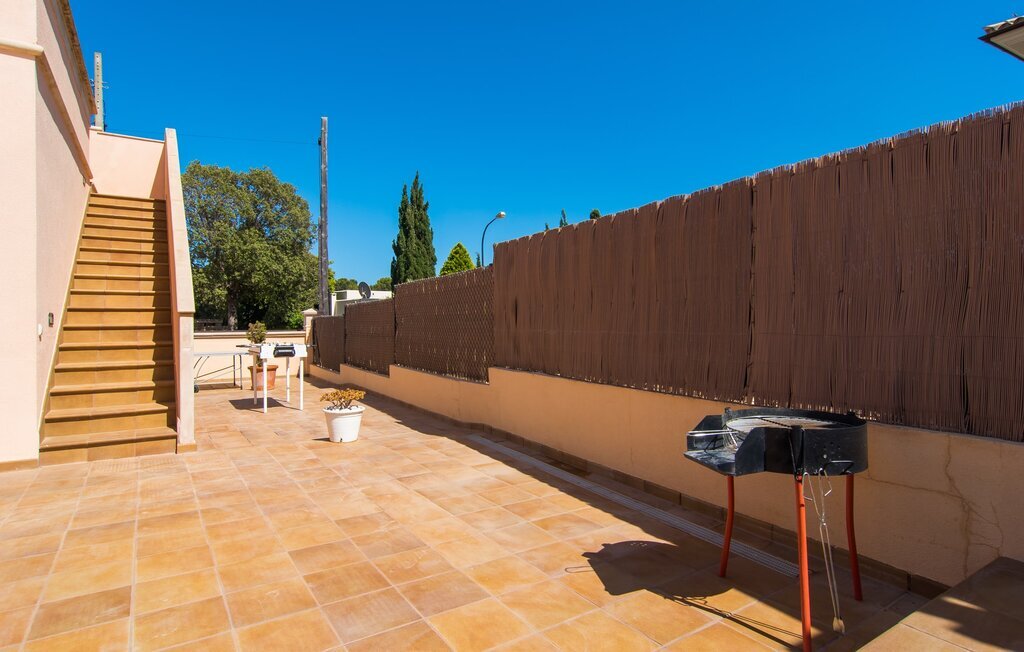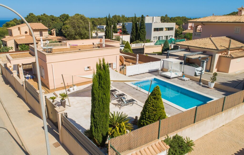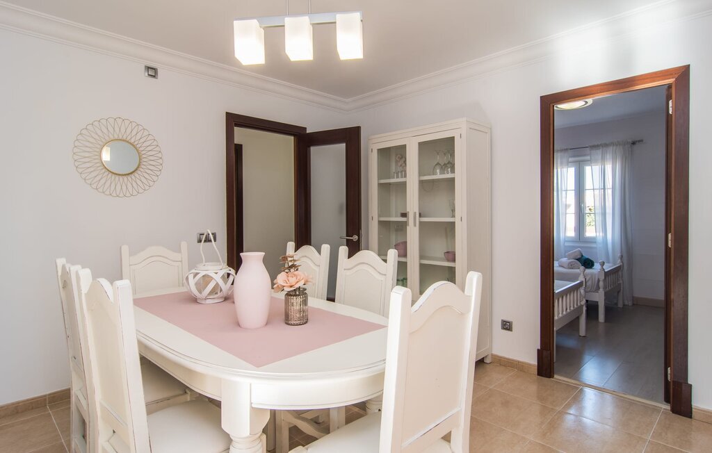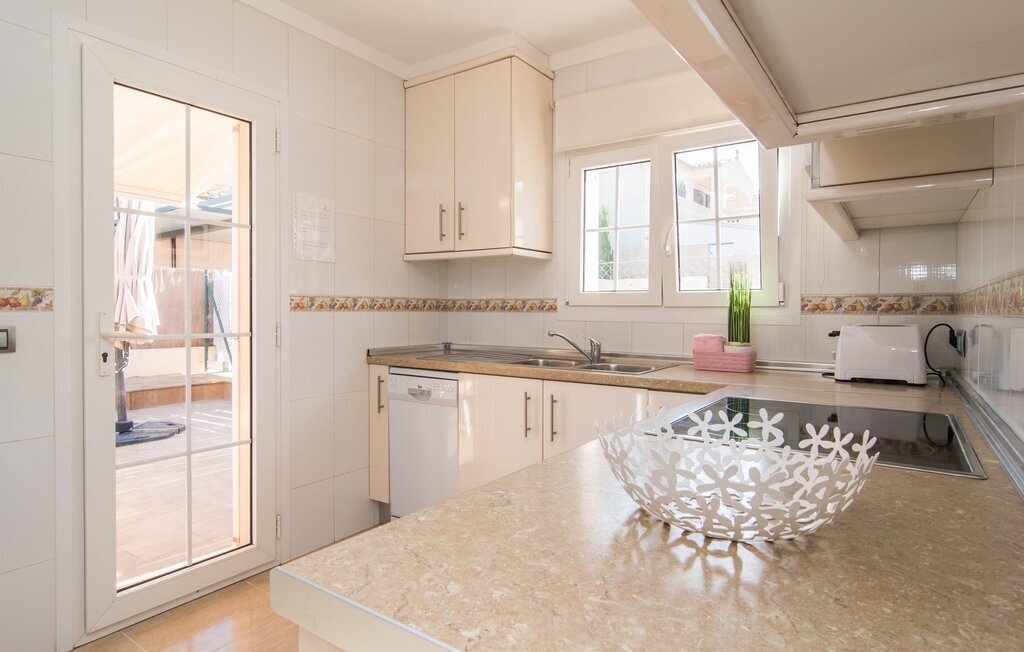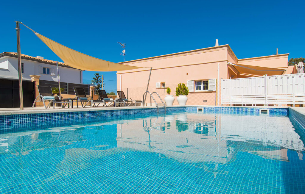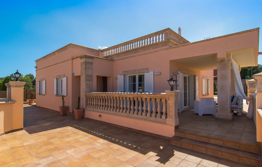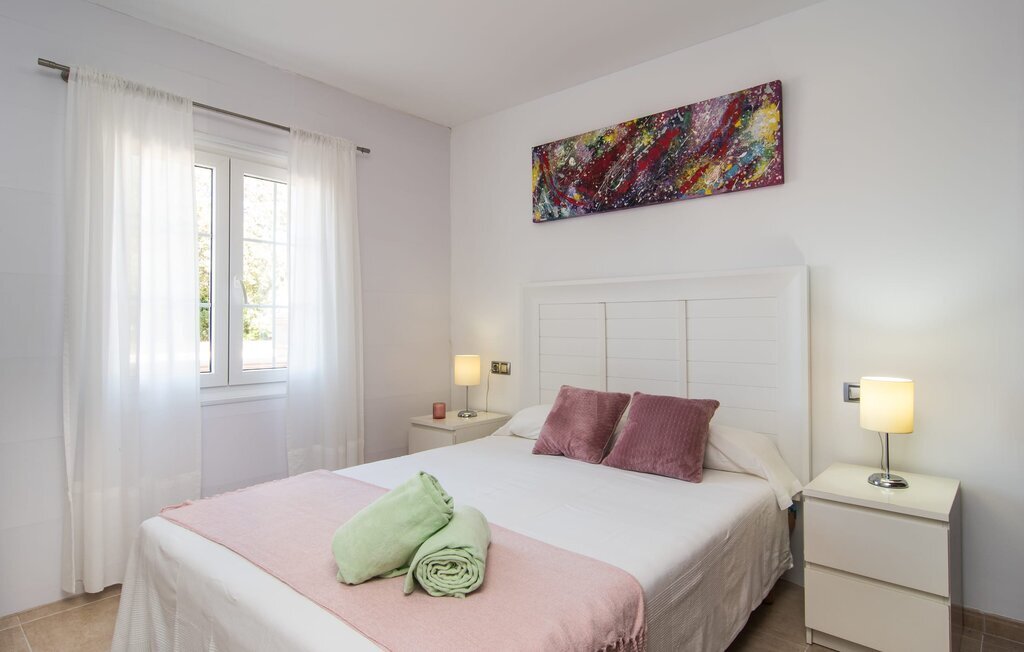 Le rose tendre de la magnifique villa Elionor s'accorde parfaitement avec l'est ensoleillé de Majorque. Cette couleur conviviale et rayonnante est très accueillante. N'hésitez pas à répondre à cette invitation à la Villa Elionor. Un logement parfait pour jusqu'à six personnes qui aiment passer du temps au bord de la mer. Les animaux de compagnie ne sont pas autorisés. La propriété est exclusivement destinée à ceux qui recherchent la tranquillité. L'intérieur de la maison se caractérise par une modernité confortable et des touches de couleurs gaies. La maison lumineuse dispose d'un grand espace cuisine avec une kitchenette de couleur crème. Même en vacances, vous trouverez le confort auquel vous êtes habitué. L'espace repas à l'extérieur de la cuisine séduit par ses murs vert pomme très tendance. Les tableaux pop art noir et blanc de style bande dessinée se marient habilement avec le vert vif. Le grand espace de vie avec des fenêtres allant du sol au plafond séduit par un contraste de couleurs bleu et blanc à l'ambiance maritime. Les chambres à coucher aménagées individuellement (avec lit double ou deux lits simples) offrent suffisamment d'espace de rangement pour votre garde-robe de vacances, que vous ayez apporté vos vêtements ou que vous ayez déniché de superbes articles sur l'un des nombreux marchés des villes environnantes. Les trois chambres à coucher disposent de deux salles de bains très chics de style italien. La chambre principale dispose de sa propre salle de bains. L'une des salles de bains est équipée d'une douche spacieuse de plain-pied, la seconde d'une baignoire.