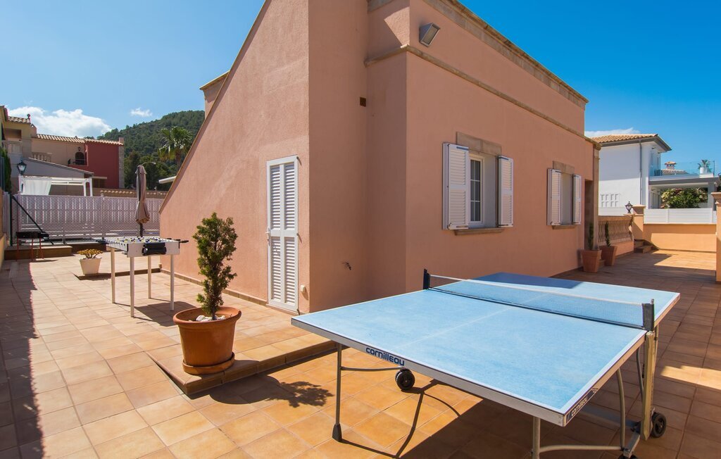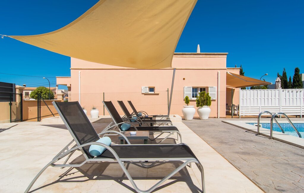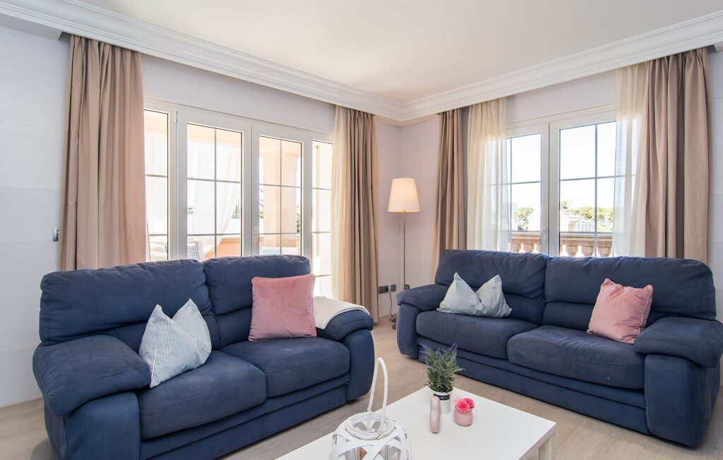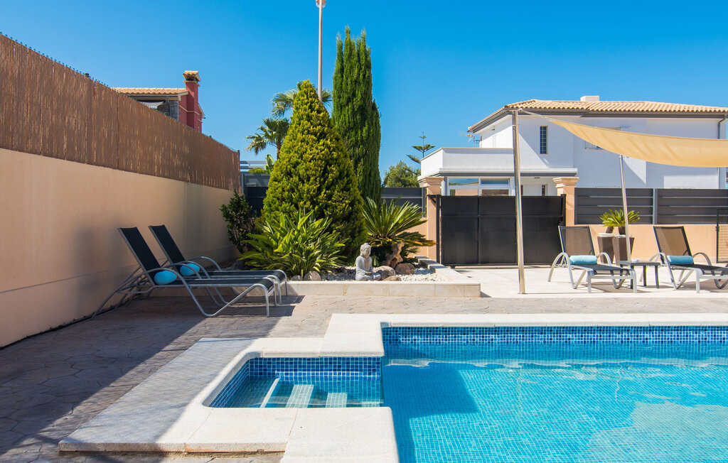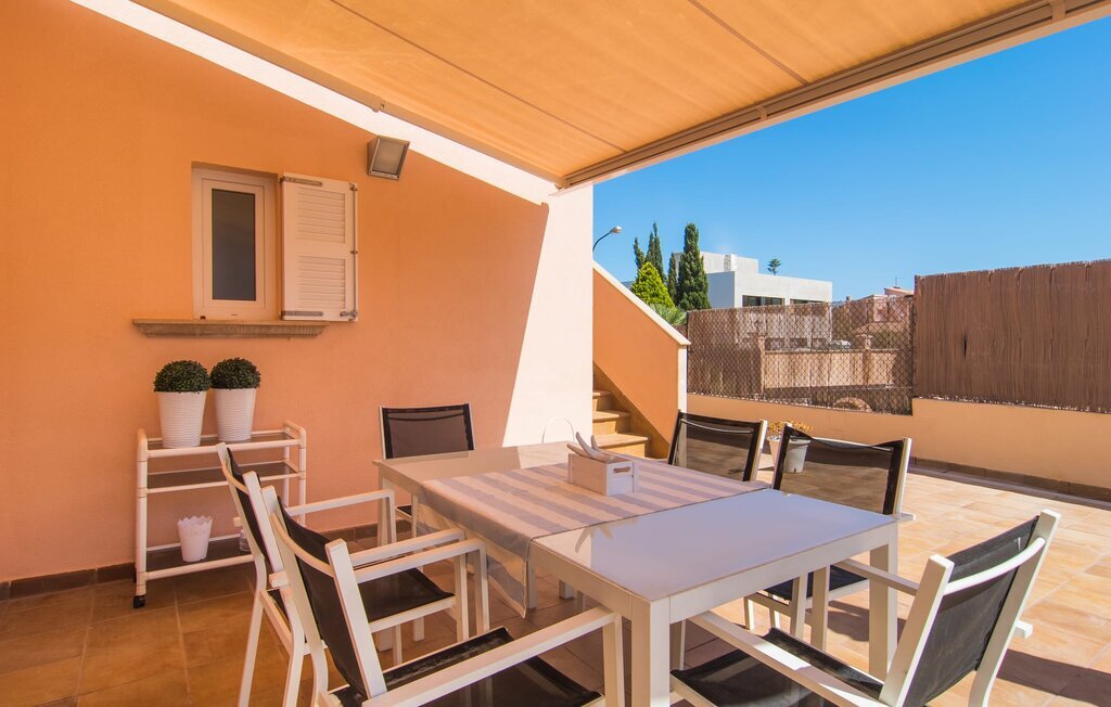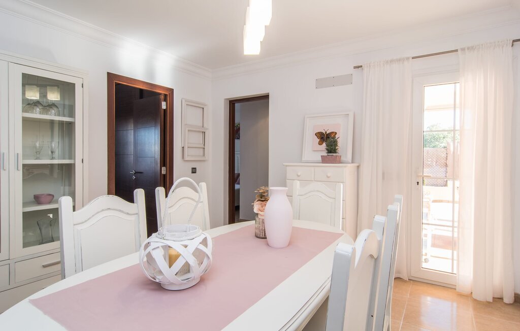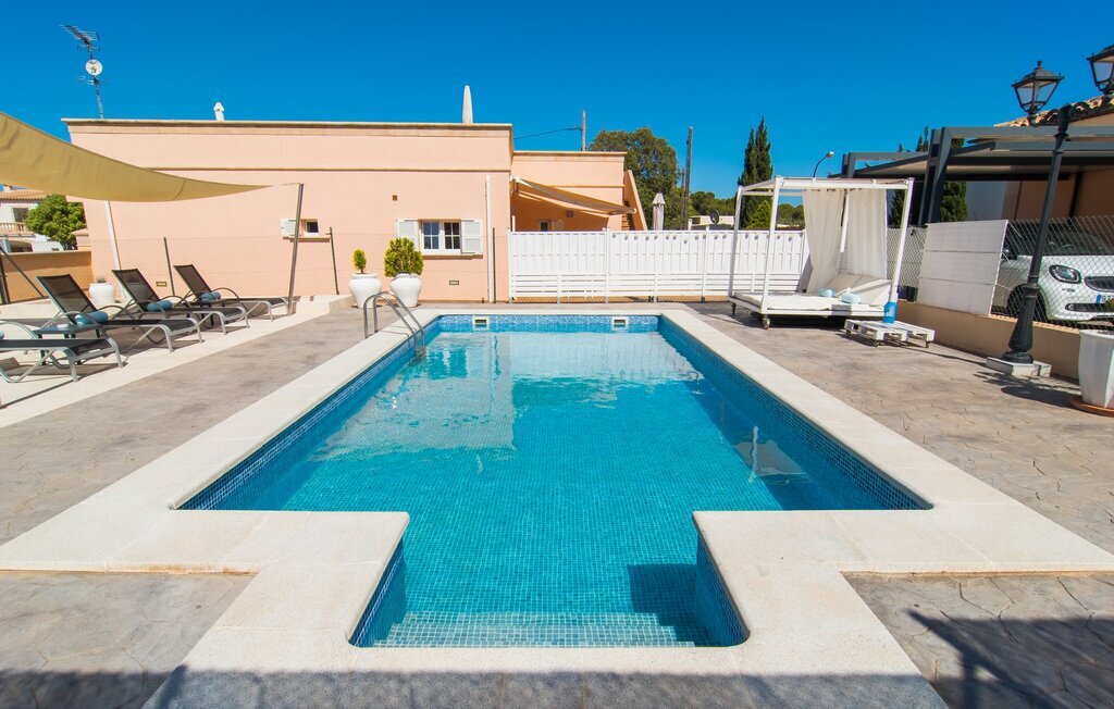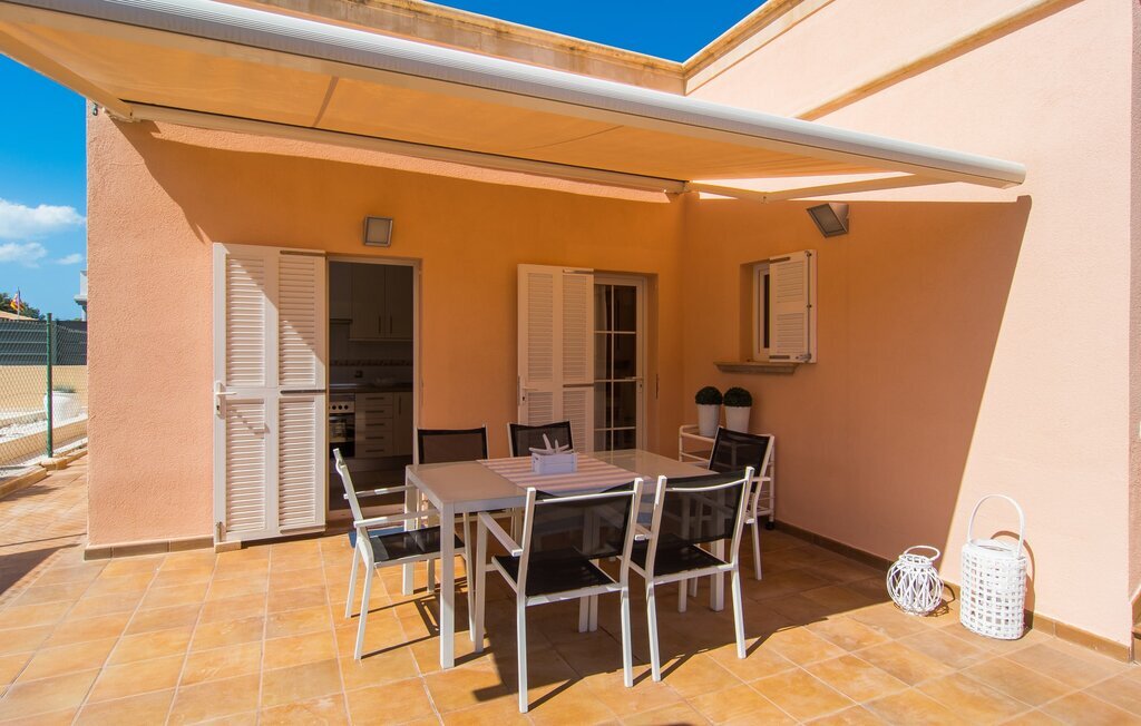 Le rose tendre de la magnifique villa Elionor s'accorde parfaitement avec l'est ensoleillé de Majorque. Cette couleur conviviale et rayonnante est très accueillante. N'hésitez pas à répondre à cette invitation à la Villa Elionor. Un logement parfait pour jusqu'à six personnes qui aiment passer du temps au bord de la mer. Les animaux de compagnie ne sont pas autorisés. La propriété est exclusivement destinée à ceux qui recherchent la tranquillité. L'intérieur de la maison se caractérise par une modernité confortable et des touches de couleurs gaies. La maison lumineuse dispose d'un grand espace cuisine avec une kitchenette de couleur crème. Même en vacances, vous trouverez le confort auquel vous êtes habitué. L'espace repas à l'extérieur de la cuisine séduit par ses murs vert pomme très tendance. Les tableaux pop art noir et blanc de style bande dessinée se marient habilement avec le vert vif. Le grand espace de vie avec des fenêtres allant du sol au plafond séduit par un contraste de couleurs bleu et blanc à l'ambiance maritime. Les chambres à coucher aménagées individuellement (avec lit double ou deux lits simples) offrent suffisamment d'espace de rangement pour votre garde-robe de vacances, que vous ayez apporté vos vêtements ou que vous ayez déniché de superbes articles sur l'un des nombreux marchés des villes environnantes. Les trois chambres à coucher disposent de deux salles de bains très chics de style italien. La chambre principale dispose de sa propre salle de bains. L'une des salles de bains est équipée d'une douche spacieuse de plain-pied, la seconde d'une baignoire.