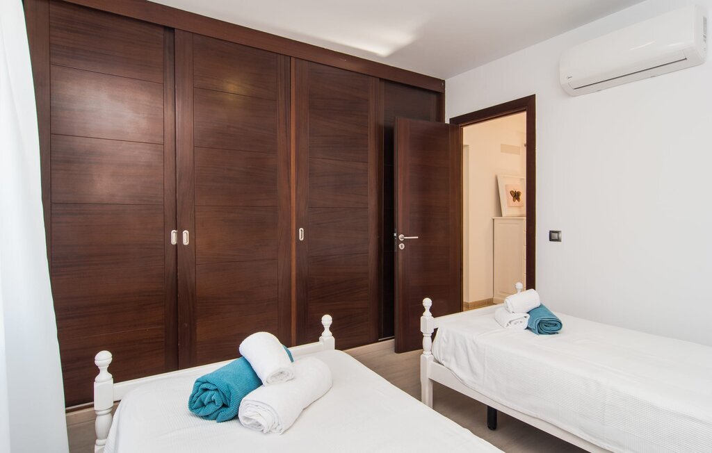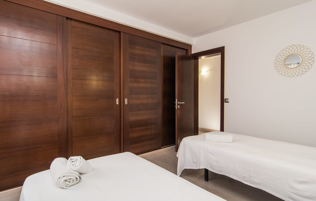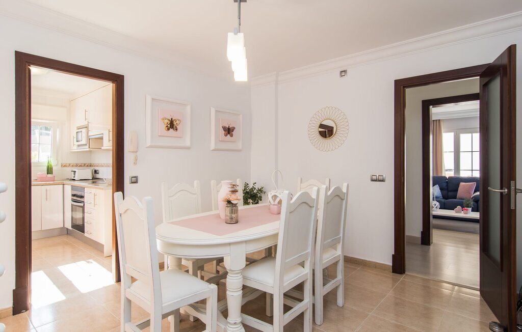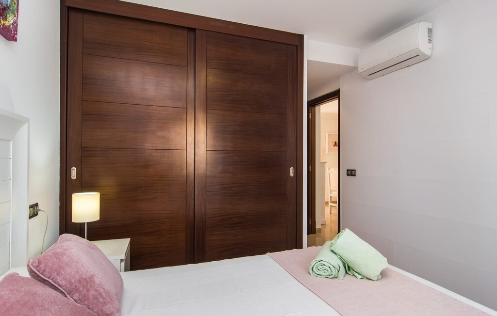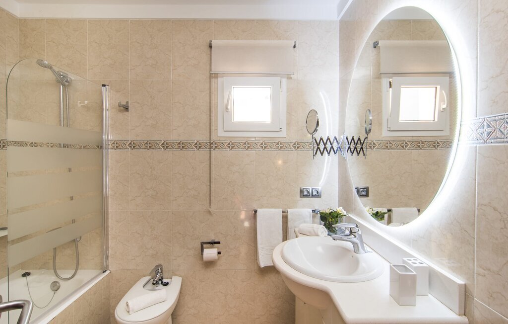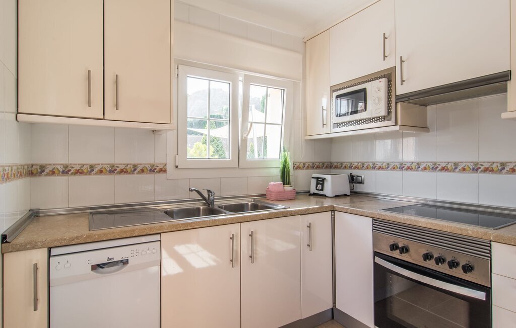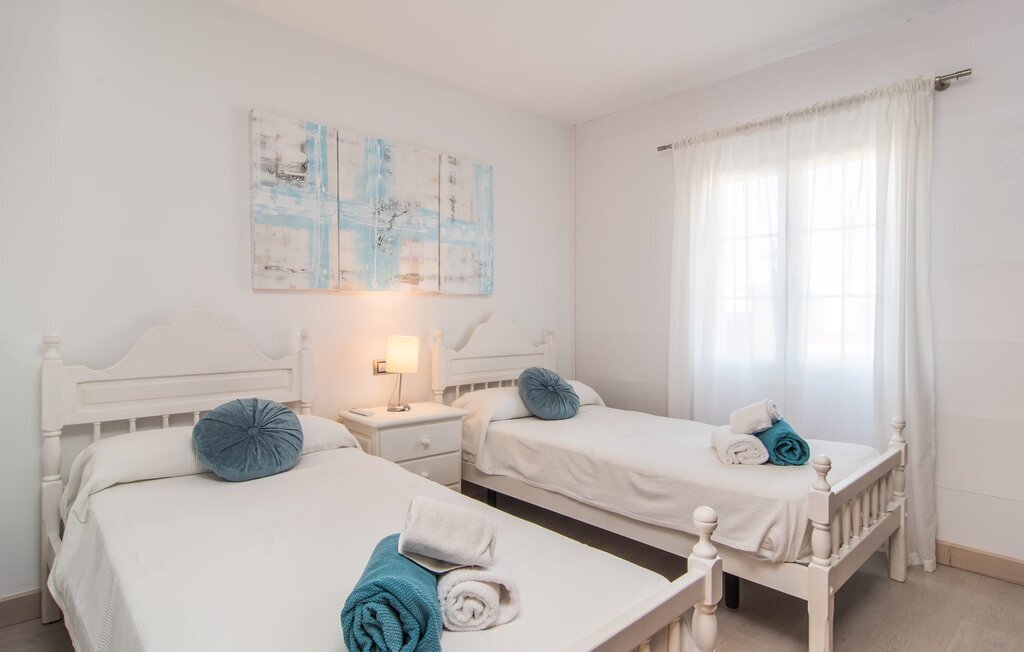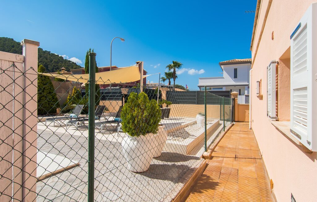 Le rose tendre de la magnifique villa Elionor s'accorde parfaitement avec l'est ensoleillé de Majorque. Cette couleur conviviale et rayonnante est très accueillante. N'hésitez pas à répondre à cette invitation à la Villa Elionor. Un logement parfait pour jusqu'à six personnes qui aiment passer du temps au bord de la mer. Les animaux de compagnie ne sont pas autorisés. La propriété est exclusivement destinée à ceux qui recherchent la tranquillité. L'intérieur de la maison se caractérise par une modernité confortable et des touches de couleurs gaies. La maison lumineuse dispose d'un grand espace cuisine avec une kitchenette de couleur crème. Même en vacances, vous trouverez le confort auquel vous êtes habitué. L'espace repas à l'extérieur de la cuisine séduit par ses murs vert pomme très tendance. Les tableaux pop art noir et blanc de style bande dessinée se marient habilement avec le vert vif. Le grand espace de vie avec des fenêtres allant du sol au plafond séduit par un contraste de couleurs bleu et blanc à l'ambiance maritime. Les chambres à coucher aménagées individuellement (avec lit double ou deux lits simples) offrent suffisamment d'espace de rangement pour votre garde-robe de vacances, que vous ayez apporté vos vêtements ou que vous ayez déniché de superbes articles sur l'un des nombreux marchés des villes environnantes. Les trois chambres à coucher disposent de deux salles de bains très chics de style italien. La chambre principale dispose de sa propre salle de bains. L'une des salles de bains est équipée d'une douche spacieuse de plain-pied, la seconde d'une baignoire.