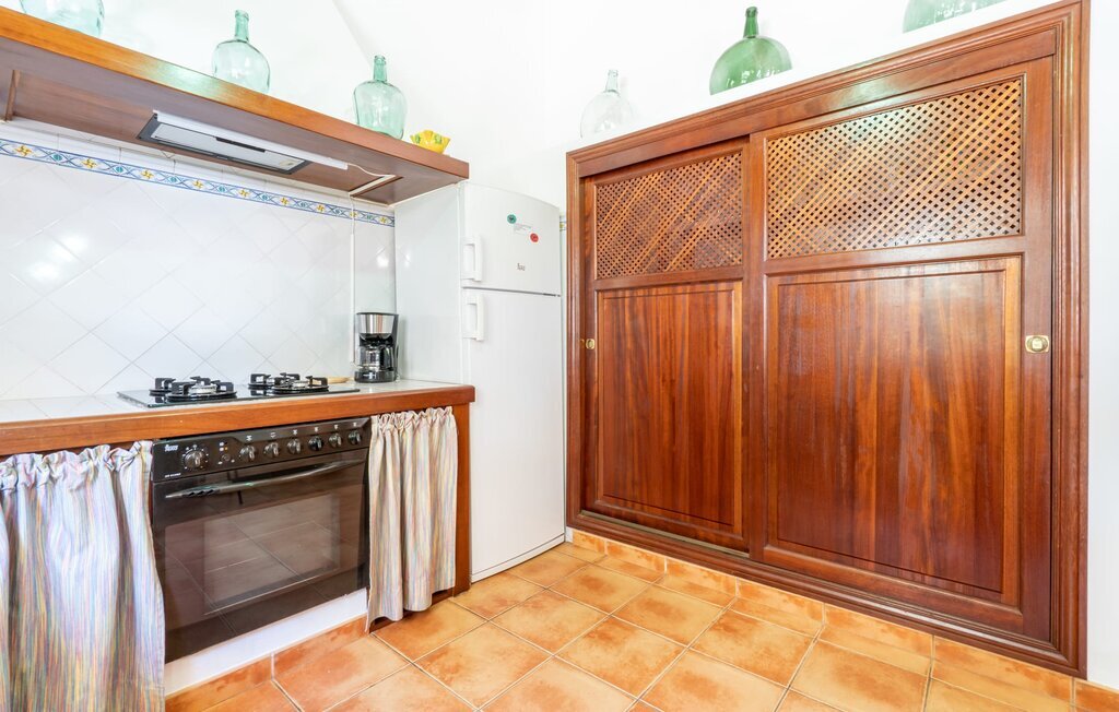 L'atmosphère soignée se poursuit également à l'intérieur de la villa. Il y a un salon/salle à manger combiné qui, d'une part, offre un point de mire original avec son mur rustique en pierre naturelle et qui, d'autre part, dégage une atmosphère exceptionnelle et un sentiment de confort grâce à des matériaux et des combinaisons de couleurs harmonieusement assortis. La cuisine, elle-même intégrée dans une pièce utilisée comme grand salon, est entièrement équipée. À proximité se trouve un espace de stockage avec suffisamment de place. Un petit comptoir aménagé avec goût sépare facilement cet espace de l'autre partie de la pièce qui, avec sa cheminée et ses chaises à bascule, a un aspect presque rustique et sera certainement un lieu particulièrement apprécié lors des soirées plus fraîches. D'ici, un escalier mène à l'étage supérieur. Les trois chambres à coucher sont agréables et lumineuses, l'une d'entre elles ayant sa propre salle de bain. Un design attrayant et unique se retrouve également dans les salles de bains. Celles-ci sont à la fois confortables et très fonctionnelles. Il y a même une baignoire avec jacuzzi.