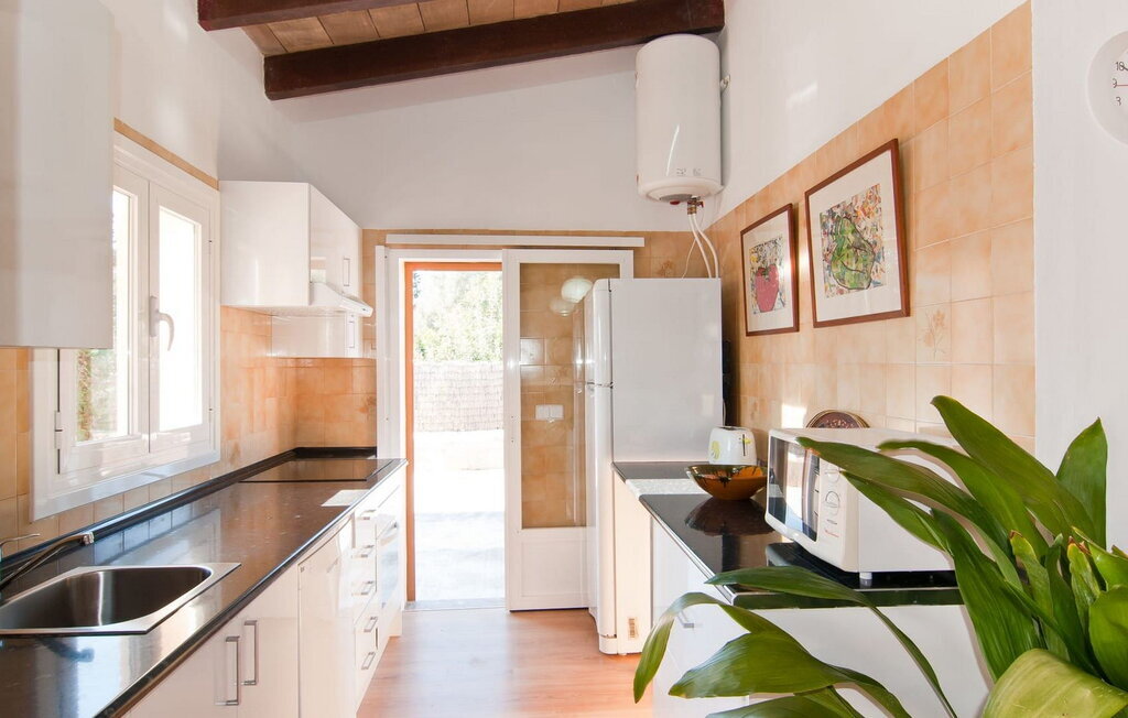 Un intérieur aménagé avec amour laisse entrer beaucoup de lumière et offre un accueil chaleureux. L'intérieur est à la fois gai et sobre, avec beaucoup de blanc, de charmants plafonds avec poutres en bois et des chambres aux sols de couleurs harmonieuses, de sorte que vous pouvez immédiatement vous sentir comme chez vous. La villa classique Can Amer, avec son agencement spacieux et son aménagement joyeux, peut non seulement accueillir jusqu'à 12 personnes (lits simples et doubles dans six chambres à coucher), mais elle offre également beaucoup d'espace pour profiter tout simplement de vacances totalement indépendantes grâce à ses deux salons et ses salles à manger ouvertes avec cuisine attenante. Les familles avec enfants apprécieront particulièrement cette option (du moins de temps en temps). Les deux salles de séjour disposent de coins salon confortables, de cheminées ouvertes et de télévisions, ainsi que d'une connexion Internet rapide et d'un lecteur CD et DVD. Les deux cuisines sont équipées de leur propre lave-vaisselle et de leur propre machine à laver. Toutes les chambres à coucher sont merveilleusement spacieuses et lumineuses.